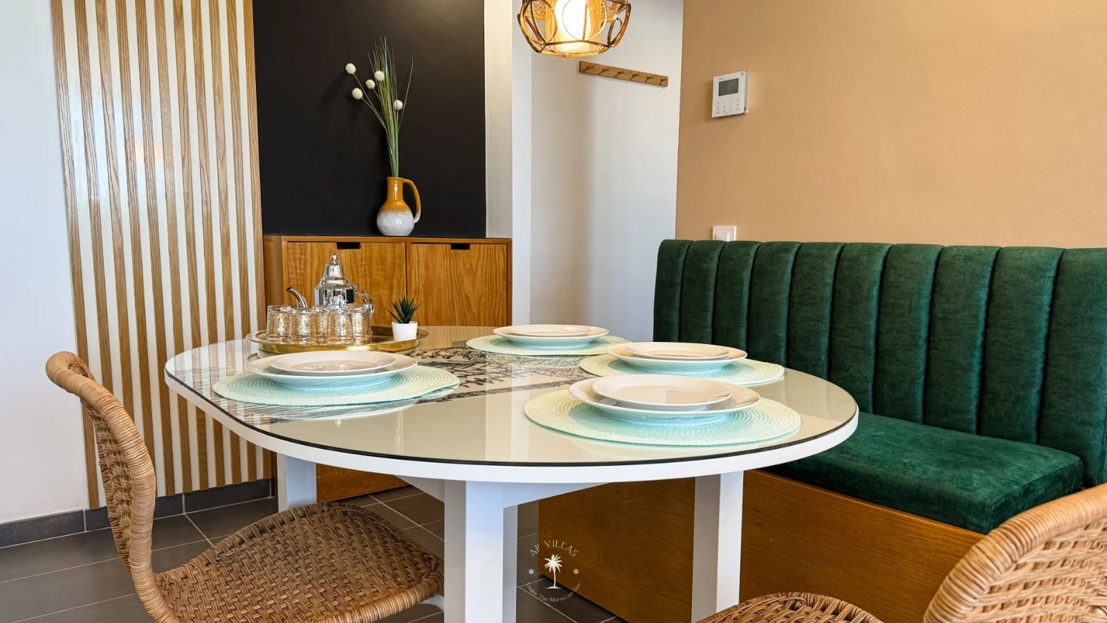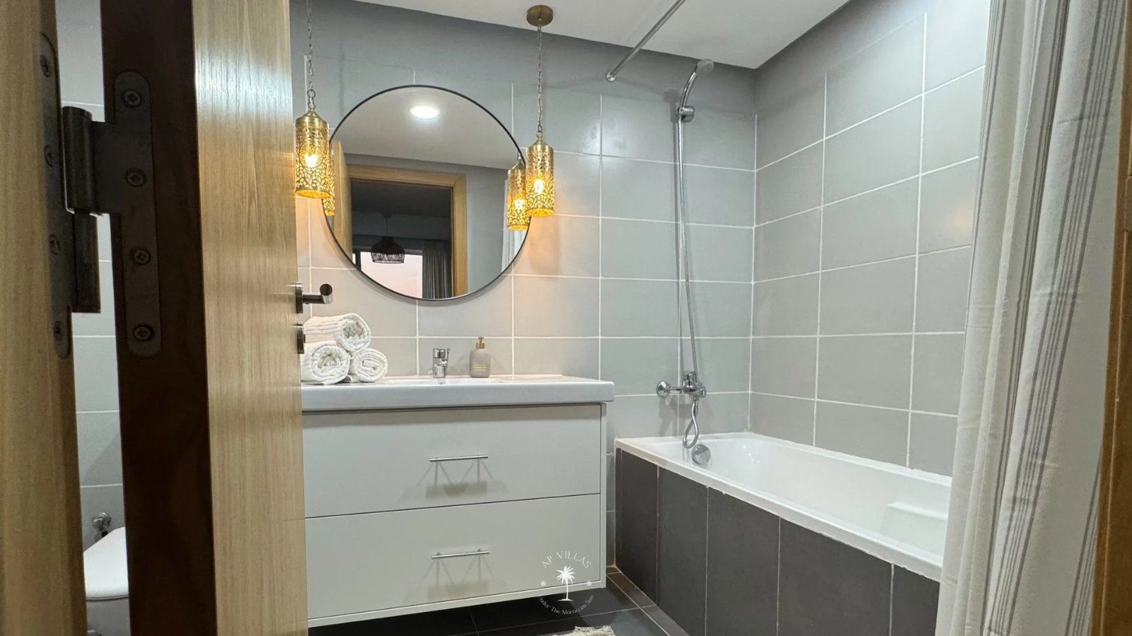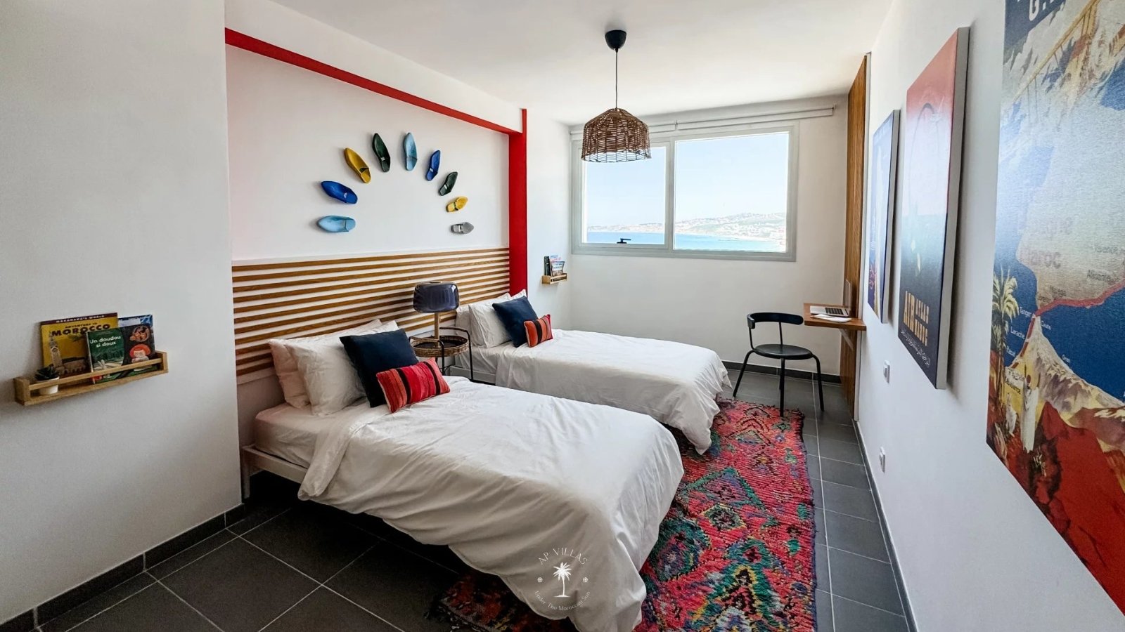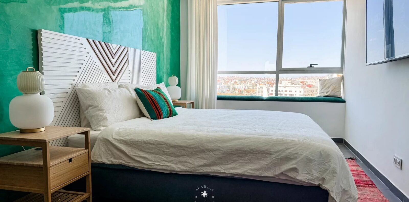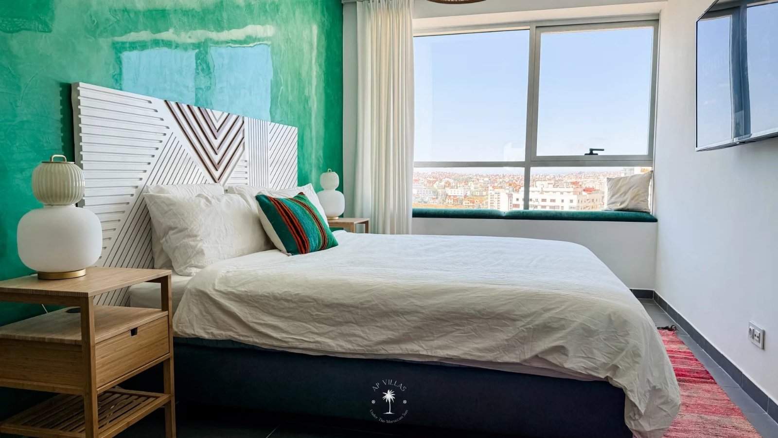 Perched on the top floor of the prestigious Hilton City Center residences, Apartment Vivian offers panoramic views over the Mediterranean and direct access to Tangier’s vibrant city life. Just three minutes from the beach and train station, and connected to City Center Mall, restaurants, and entertainment, the apartment combines comfort and convenience in an exceptional setting.
