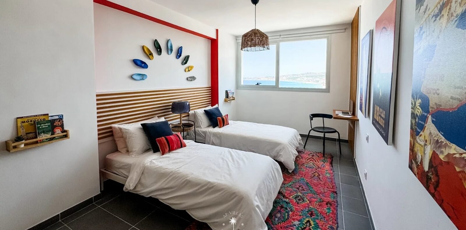 Rarely configured as a three-bedroom residence, it features four beds with an optional child’s bed, multiple workspaces with high-speed fiber internet, and a wide range of premium amenities including washer and dryer, beach equipment, yoga accessories, and multilingual books.