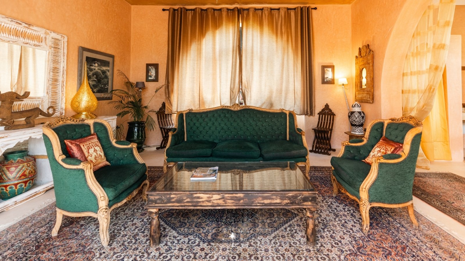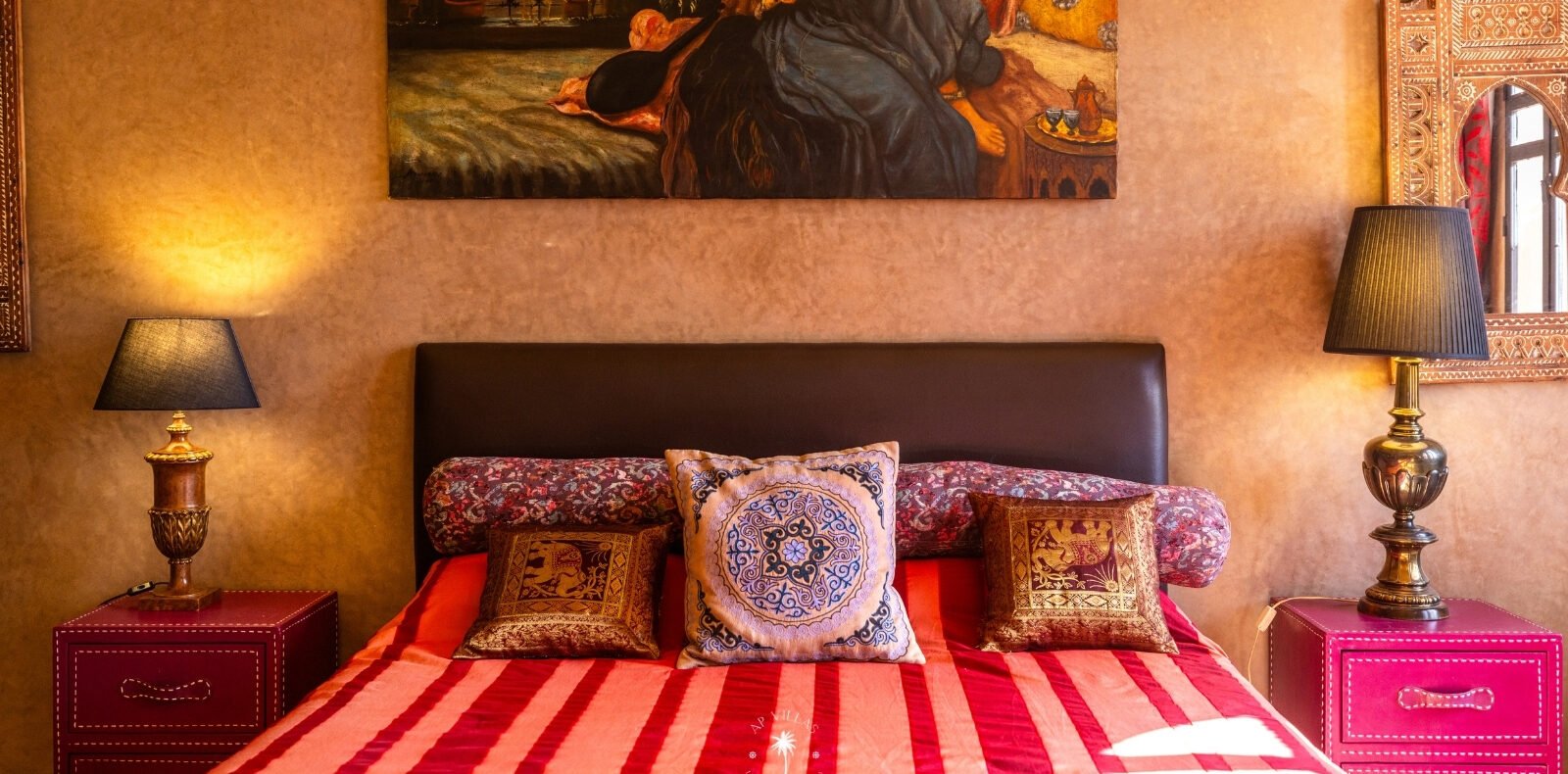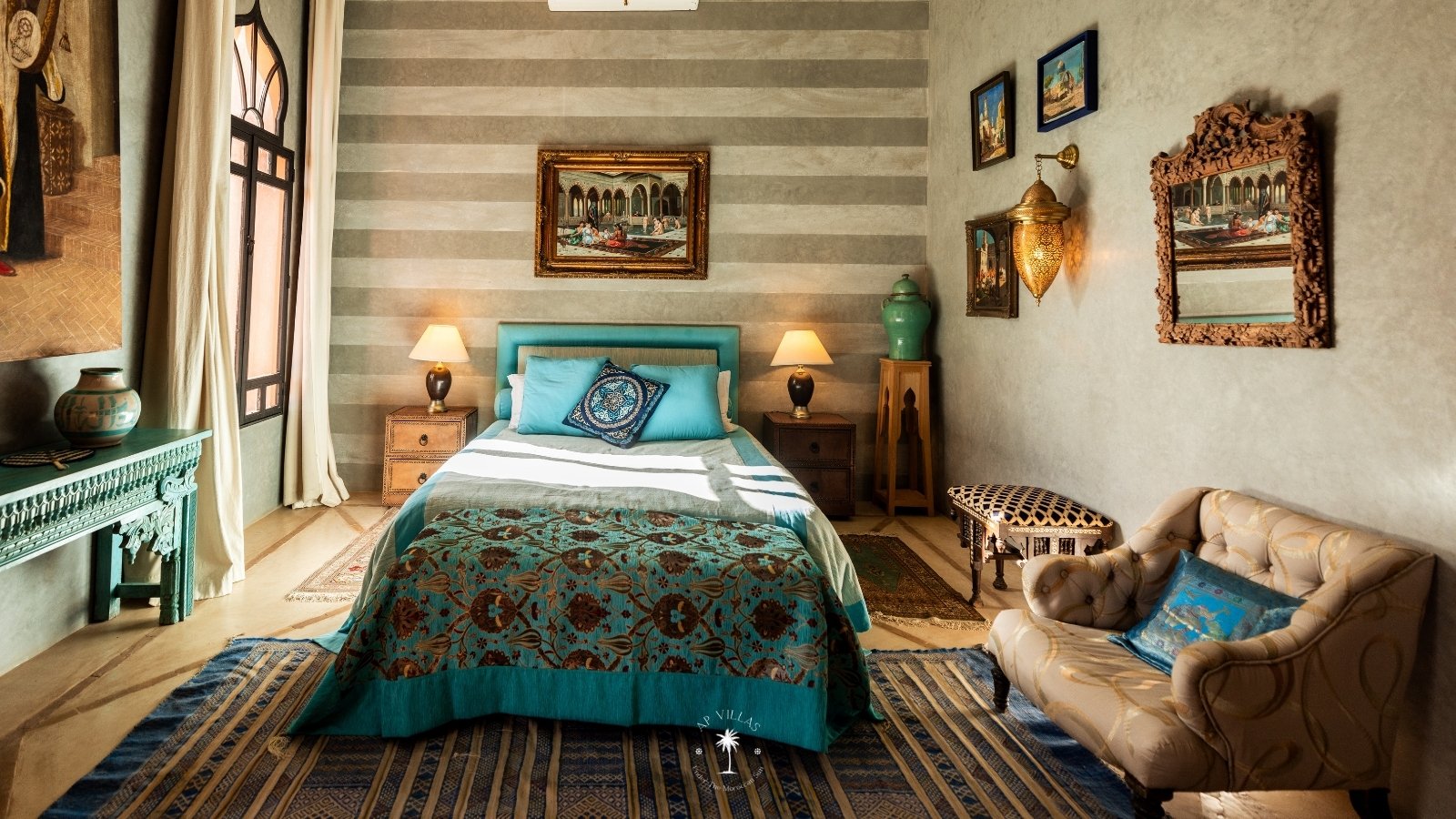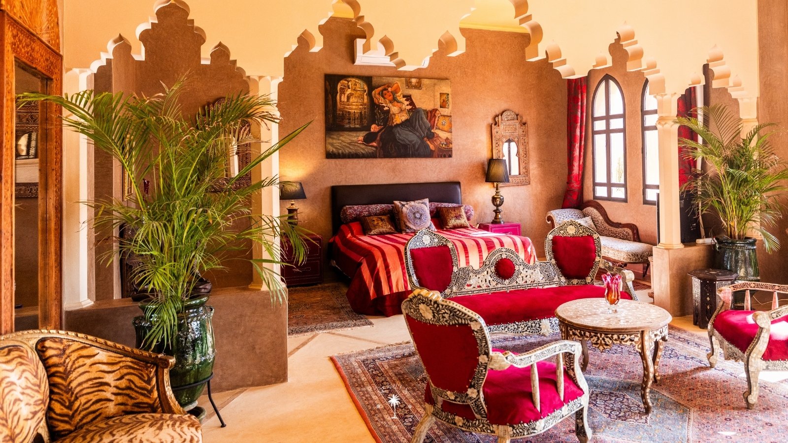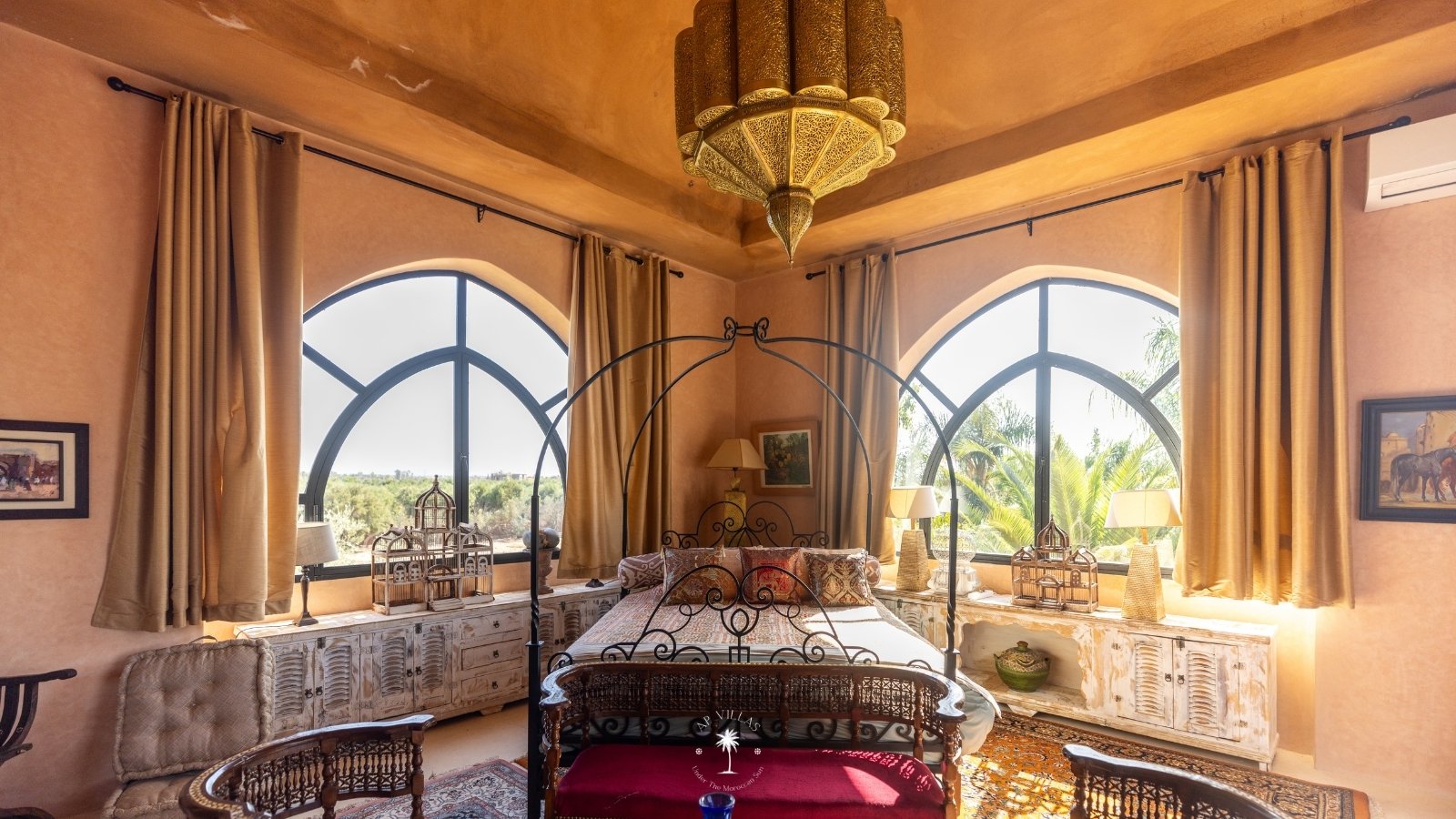 Ce magnifique palais s'étend sur deux niveaux et dispose de 9 suites spacieuses, chacune conçue pour offrir une atmosphère unique pour votre confort. Au premier étage, deux chambres principales dégagent une élégance et une sophistication remarquables.