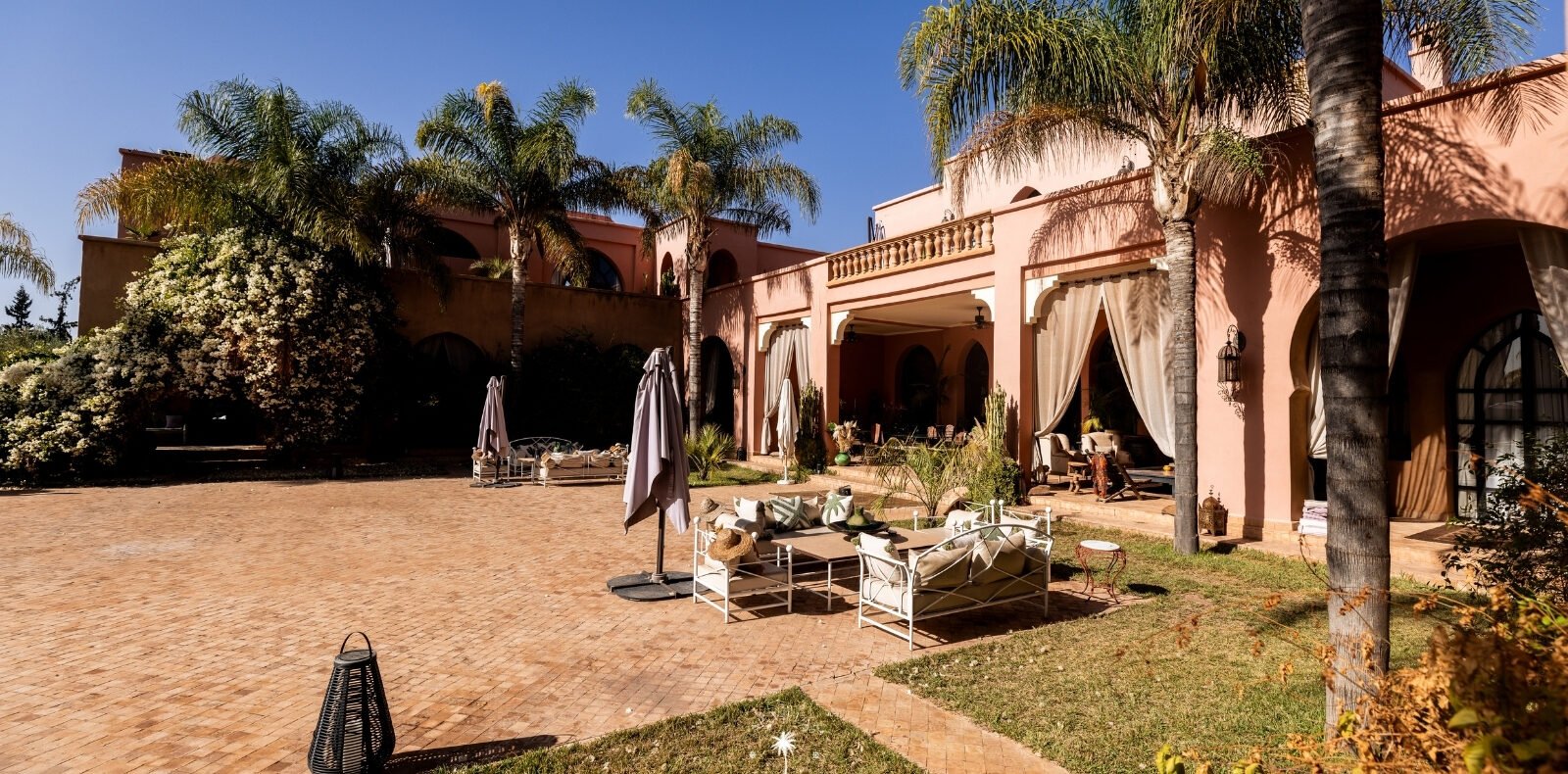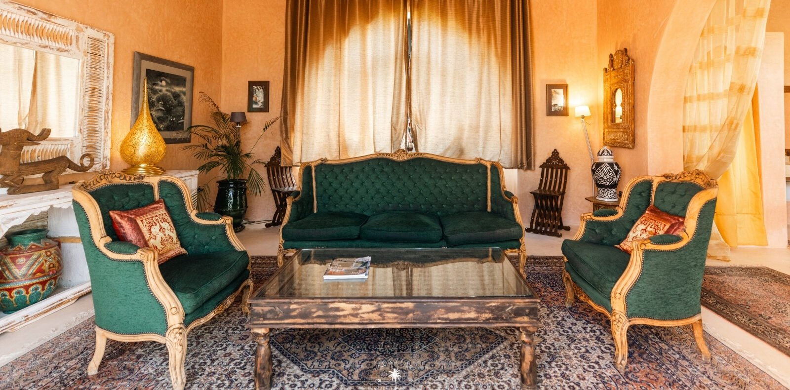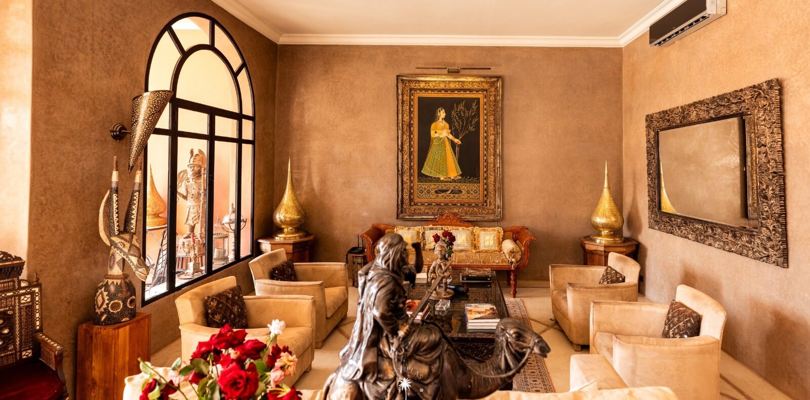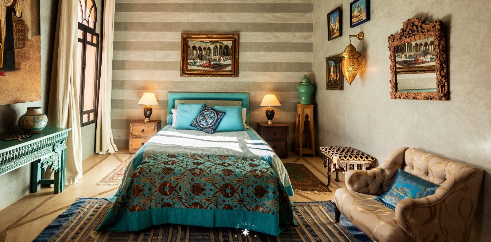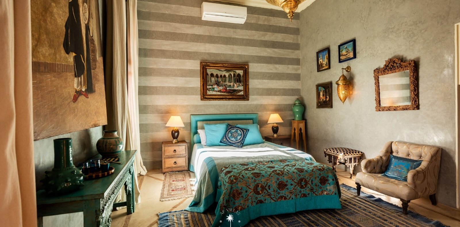 Ce magnifique palais s'étend sur deux niveaux et dispose de 9 suites spacieuses, chacune conçue pour offrir une atmosphère unique pour votre confort. Au premier étage, deux chambres principales dégagent une élégance et une sophistication remarquables.