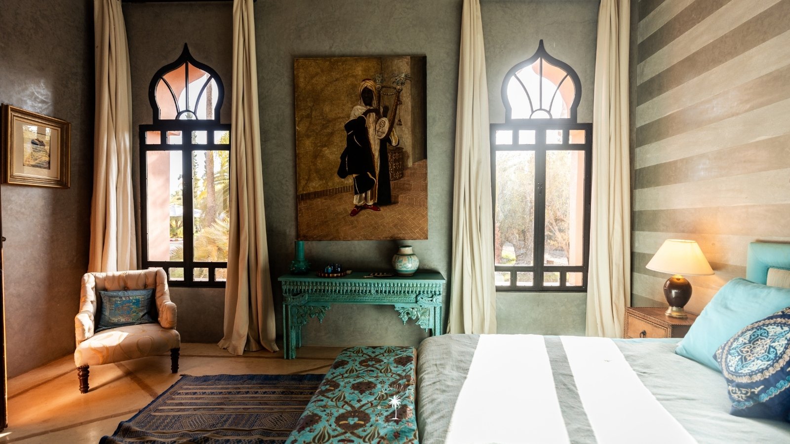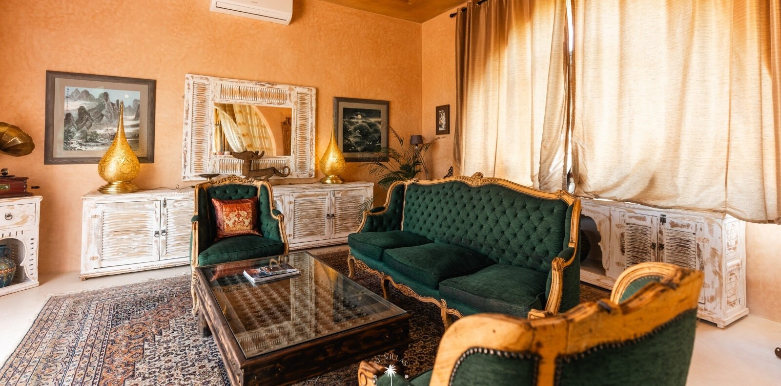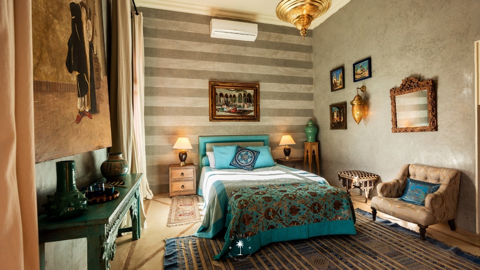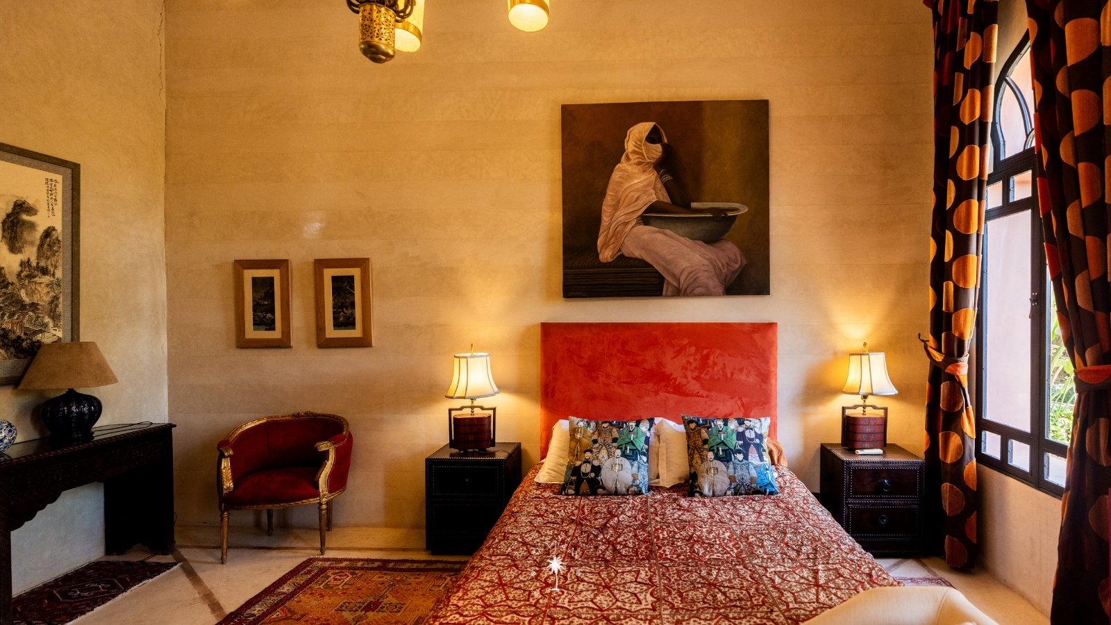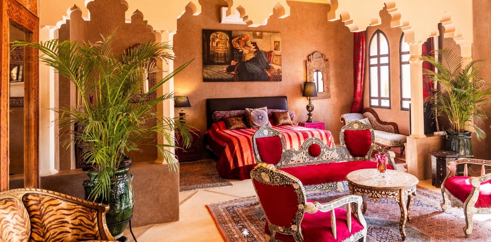 Ce magnifique palais s'étend sur deux niveaux et dispose de 9 suites spacieuses, chacune conçue pour offrir une atmosphère unique pour votre confort. Au premier étage, deux chambres principales dégagent une élégance et une sophistication remarquables.