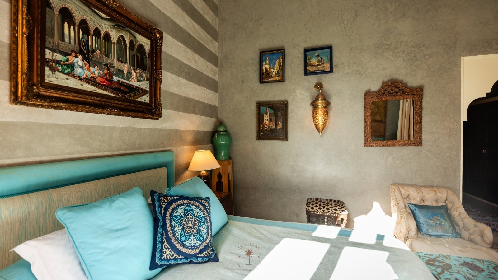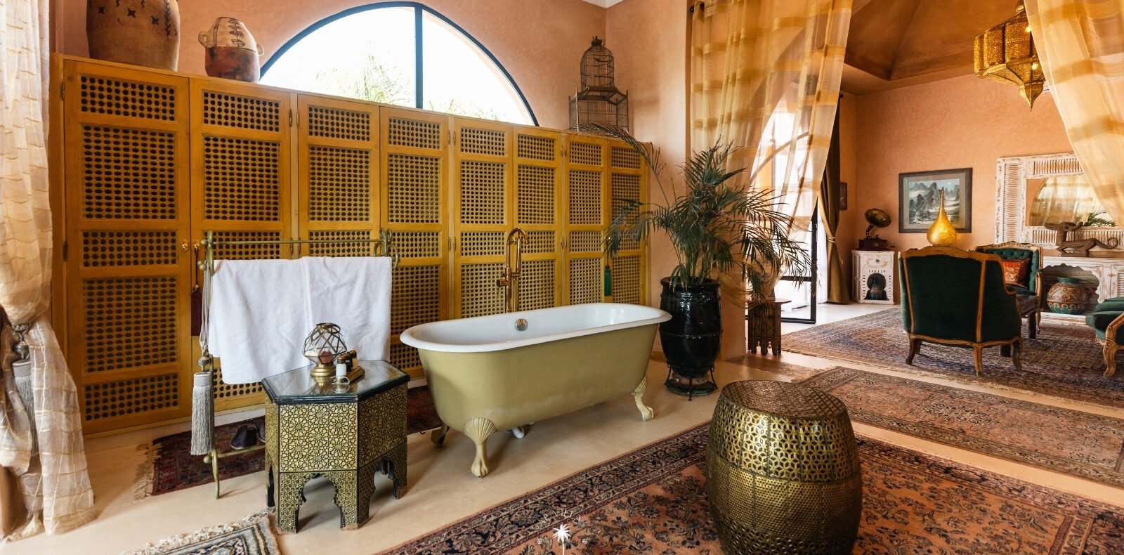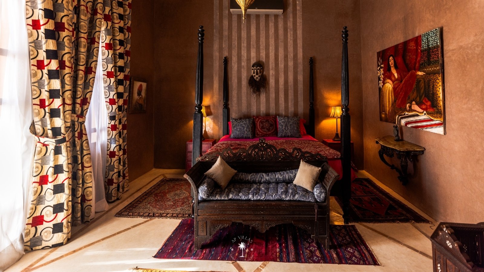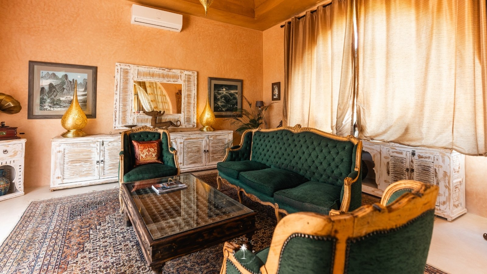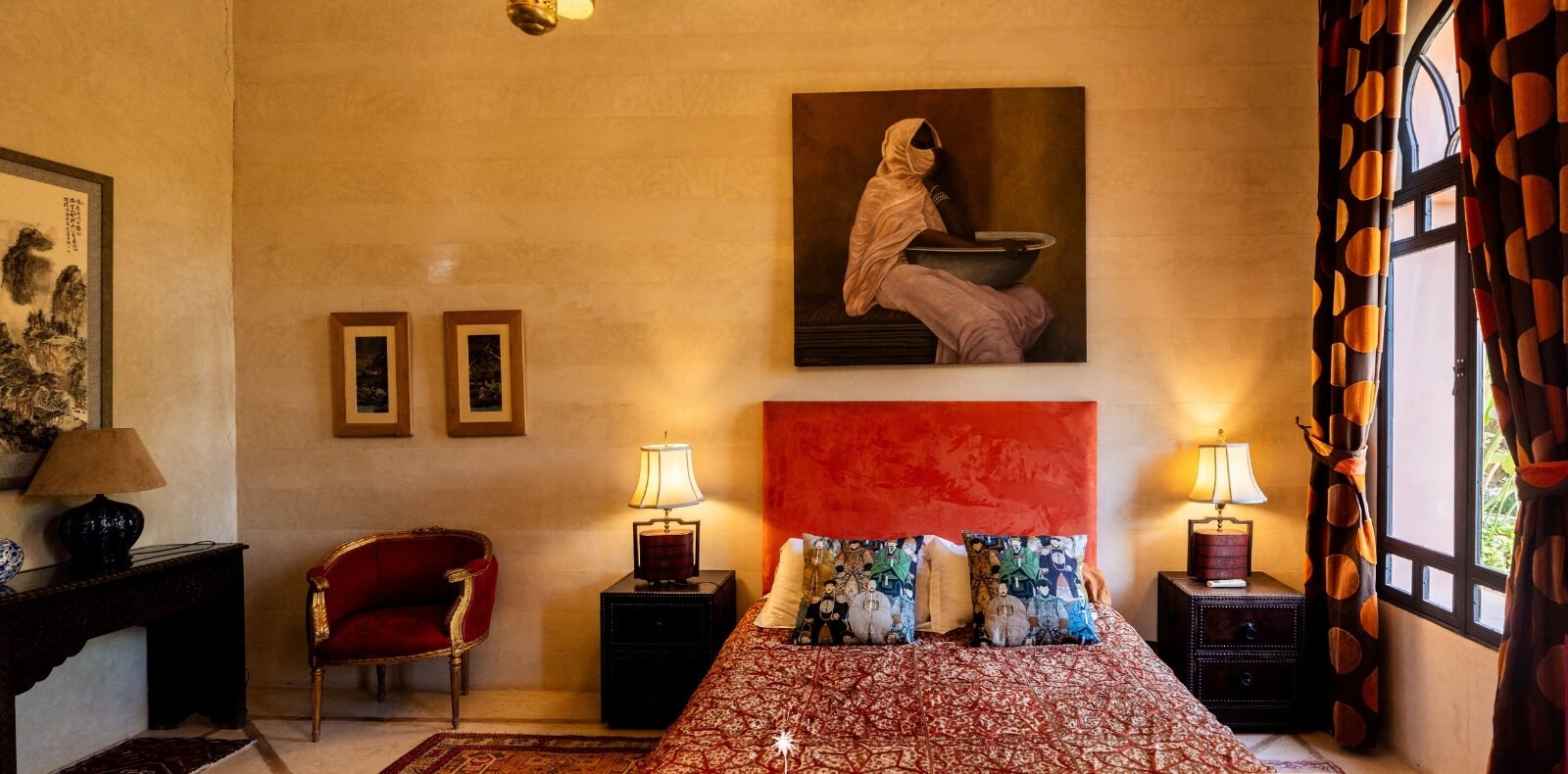 Ce magnifique palais s'étend sur deux niveaux et dispose de 9 suites spacieuses, chacune conçue pour offrir une atmosphère unique pour votre confort. Au premier étage, deux chambres principales dégagent une élégance et une sophistication remarquables.