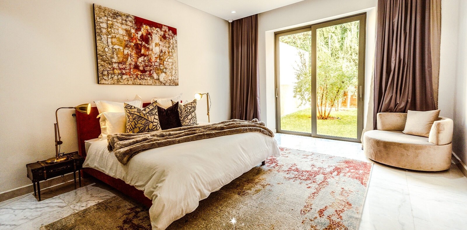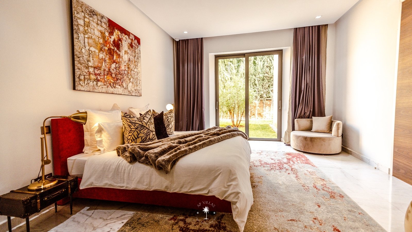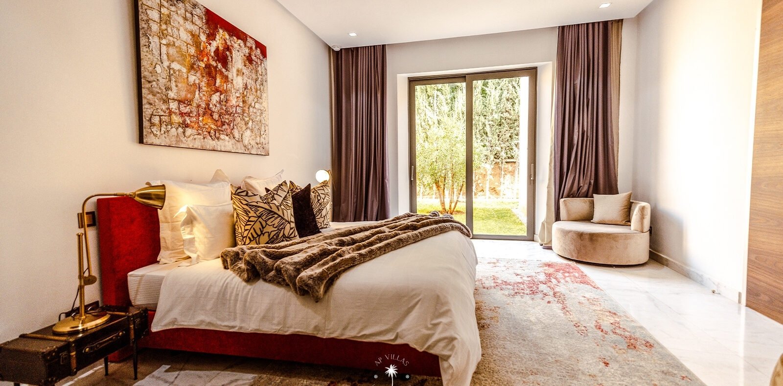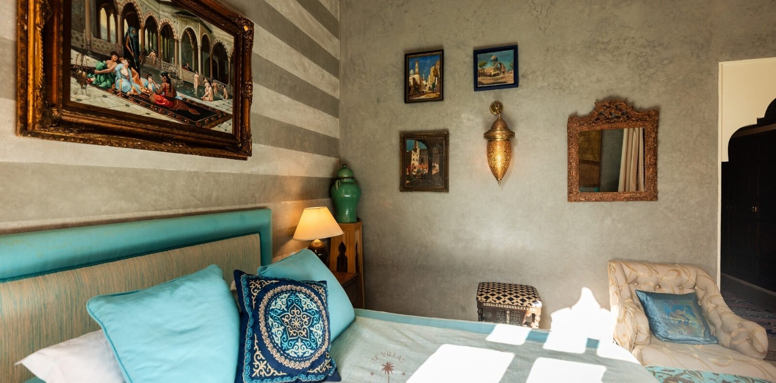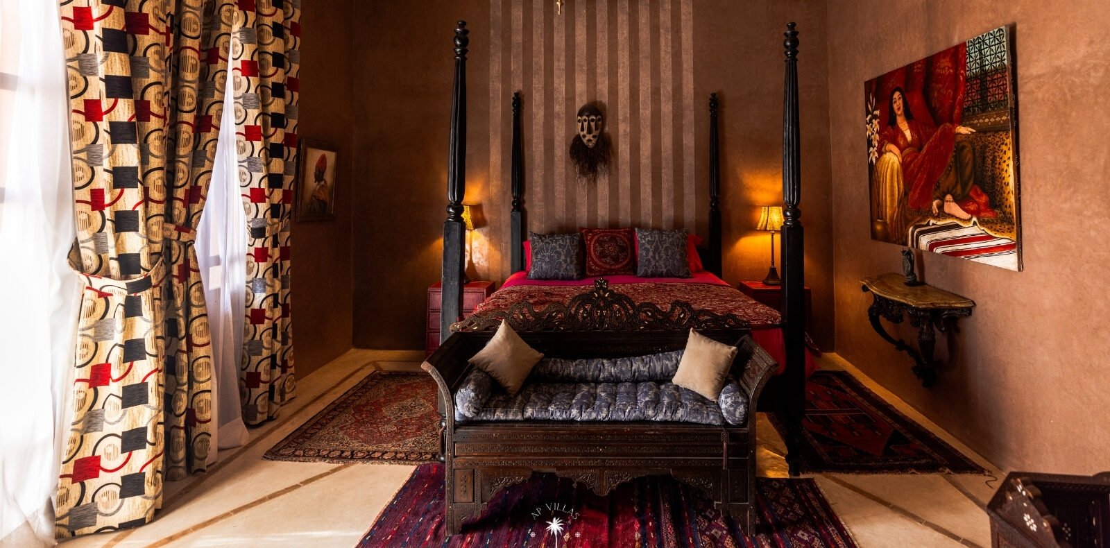 Ce magnifique palais s'étend sur deux niveaux et dispose de 9 suites spacieuses, chacune conçue pour offrir une atmosphère unique pour votre confort. Au premier étage, deux chambres principales dégagent une élégance et une sophistication remarquables.