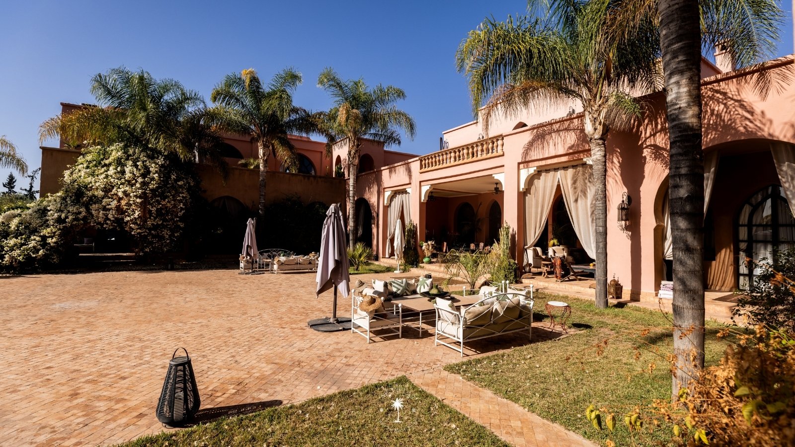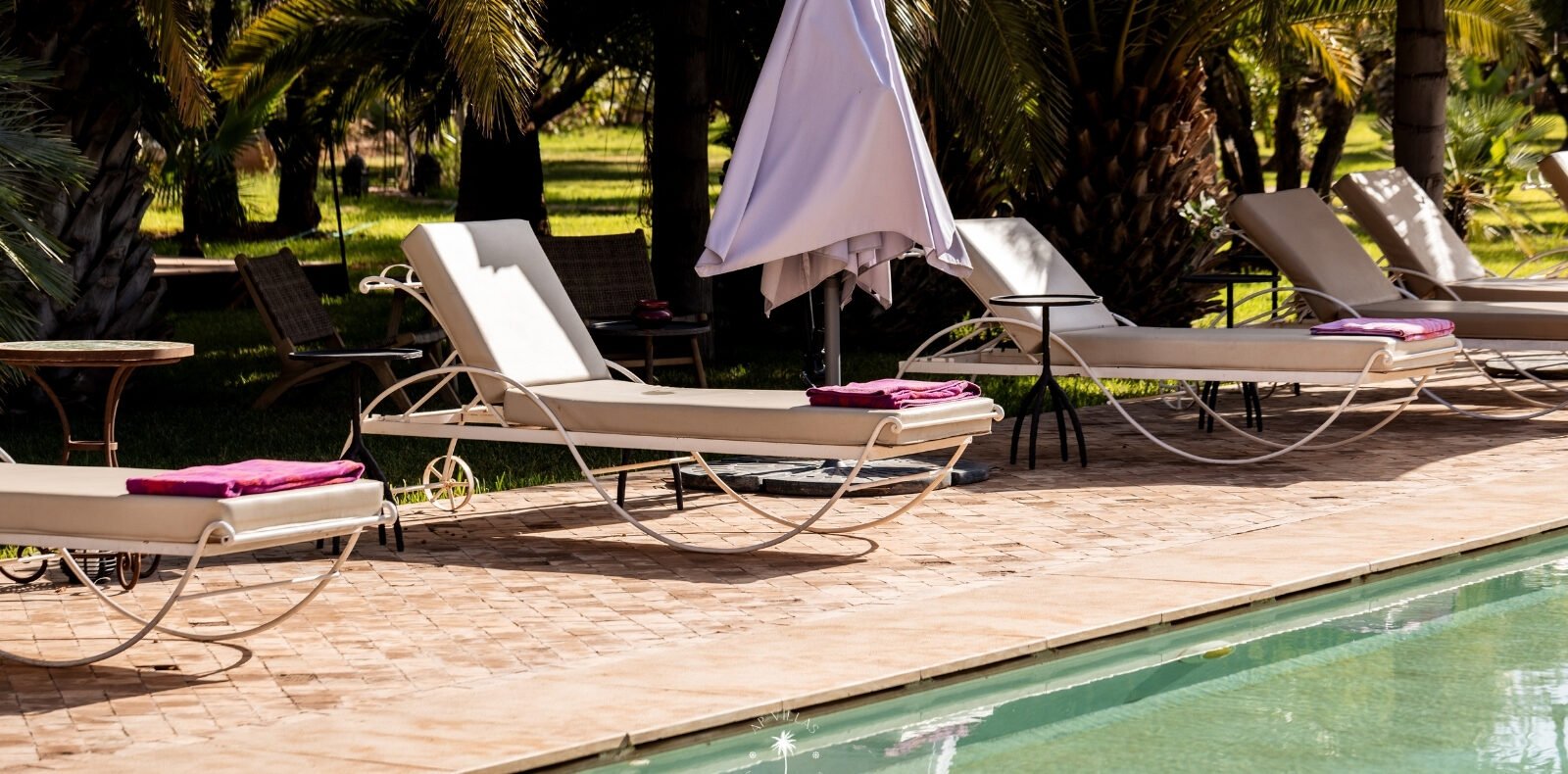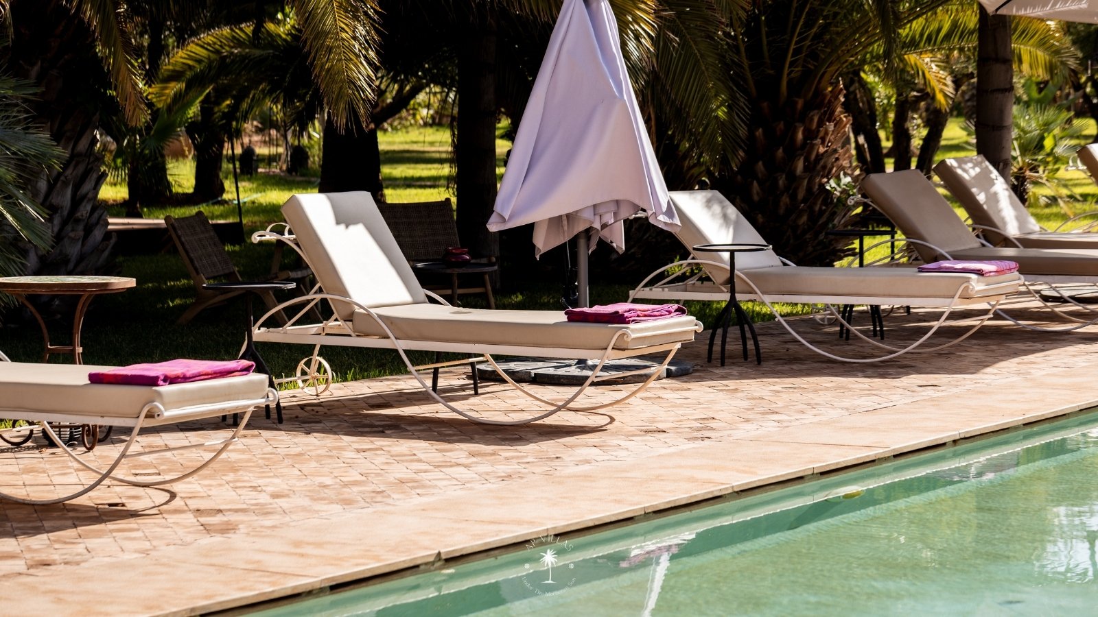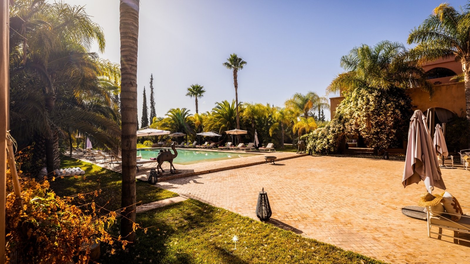 Sortez pour découvrir une piscine spacieuse de 180 m², idéale pour se détendre sous le soleil de Marrakech.