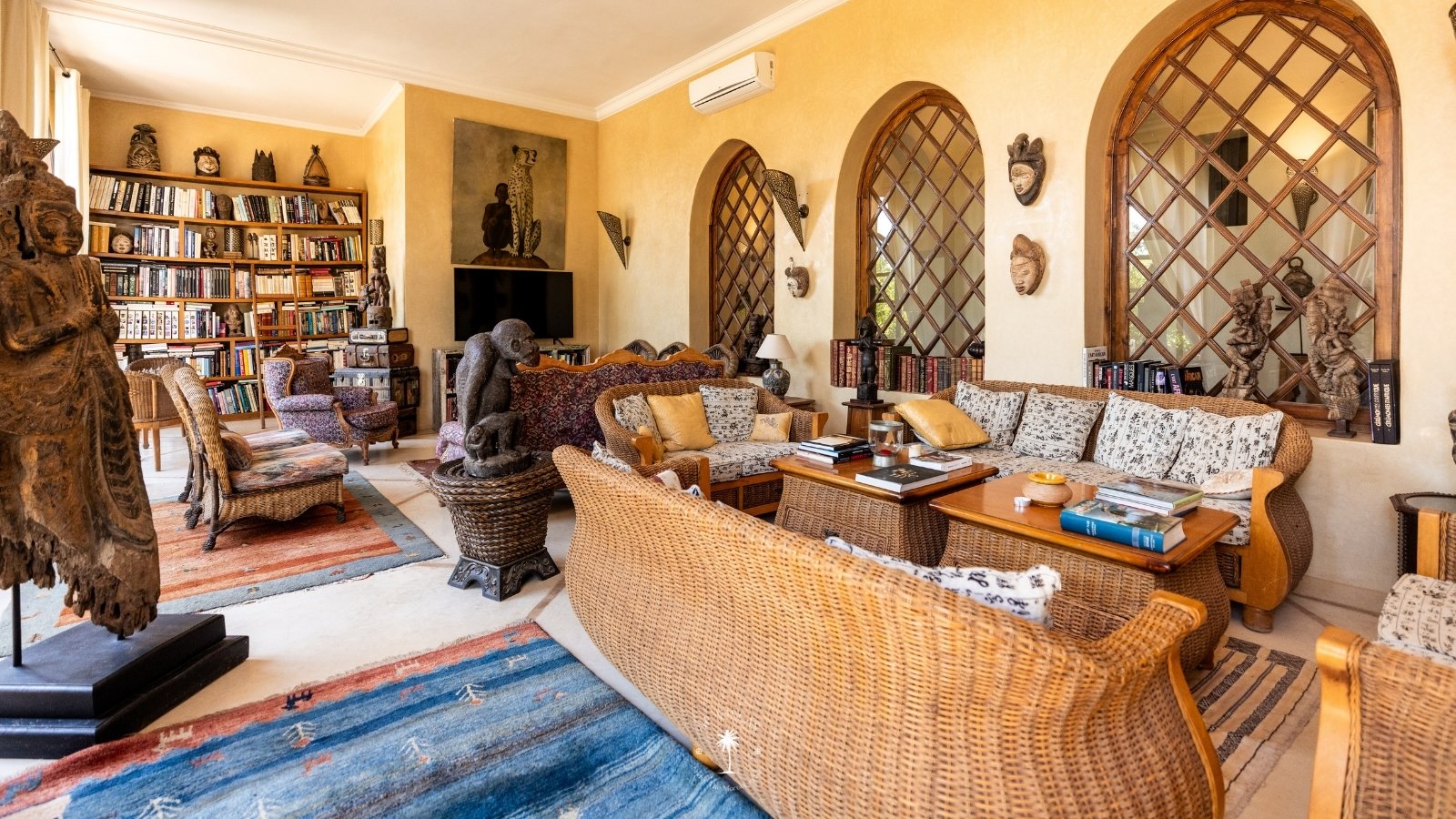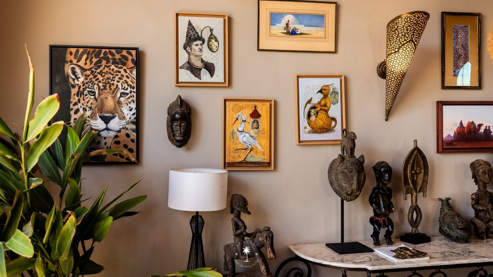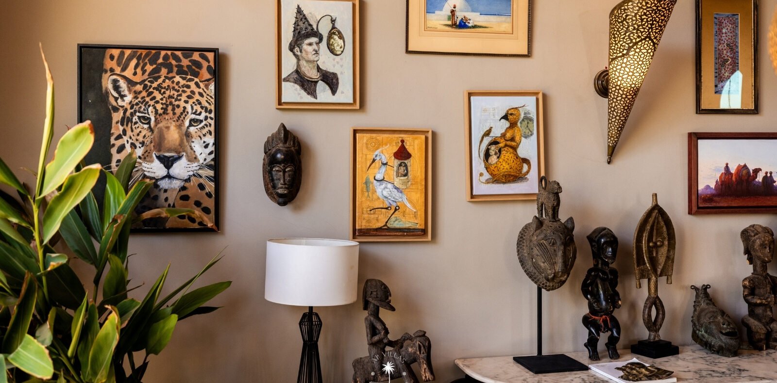 La propriété présente une collection remarquable d'art tribal, car le propriétaire est un passionné averti. Des pièces de qualité muséale ornent l'espace, créant une ambiance captivante et unique.