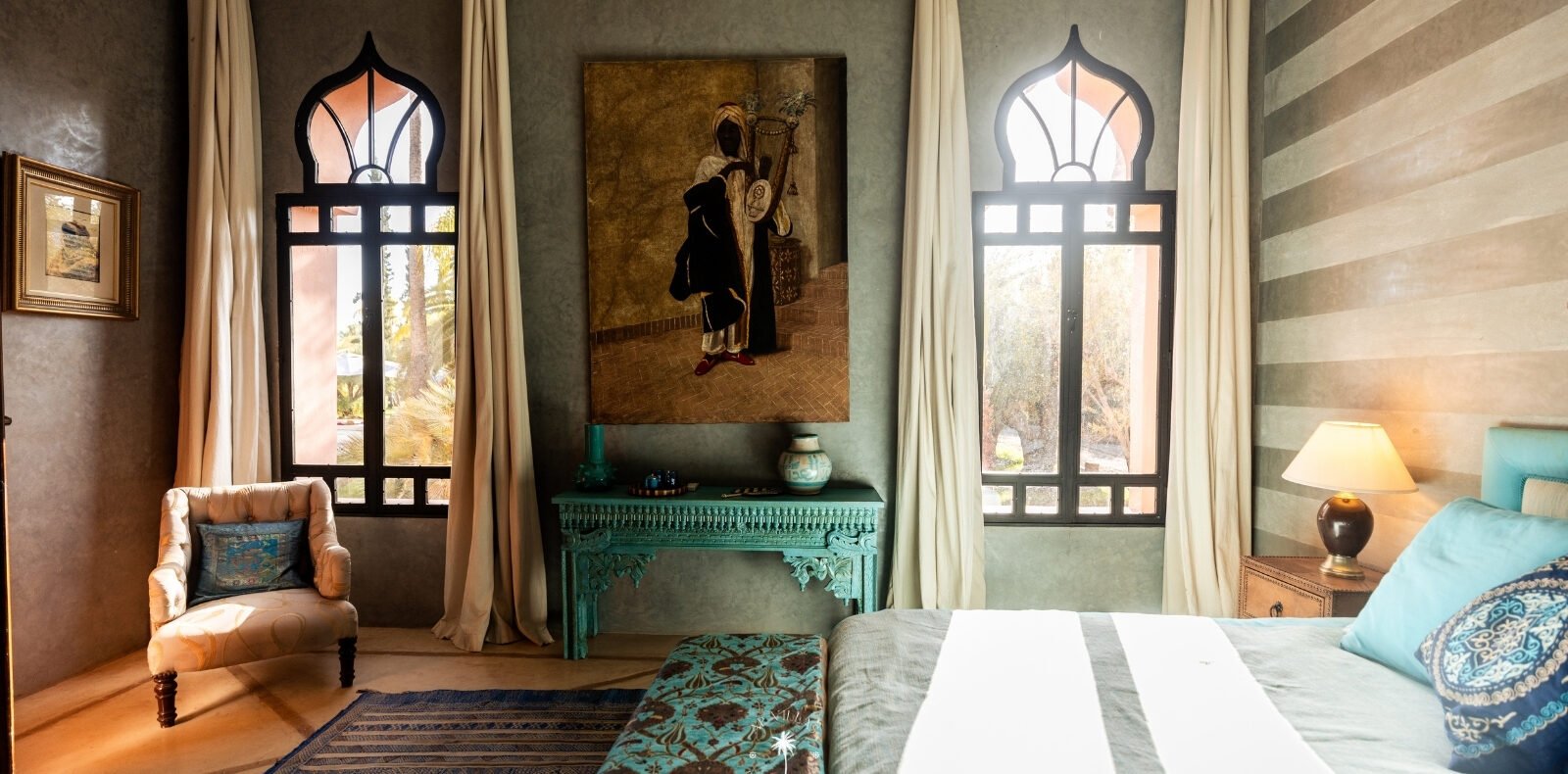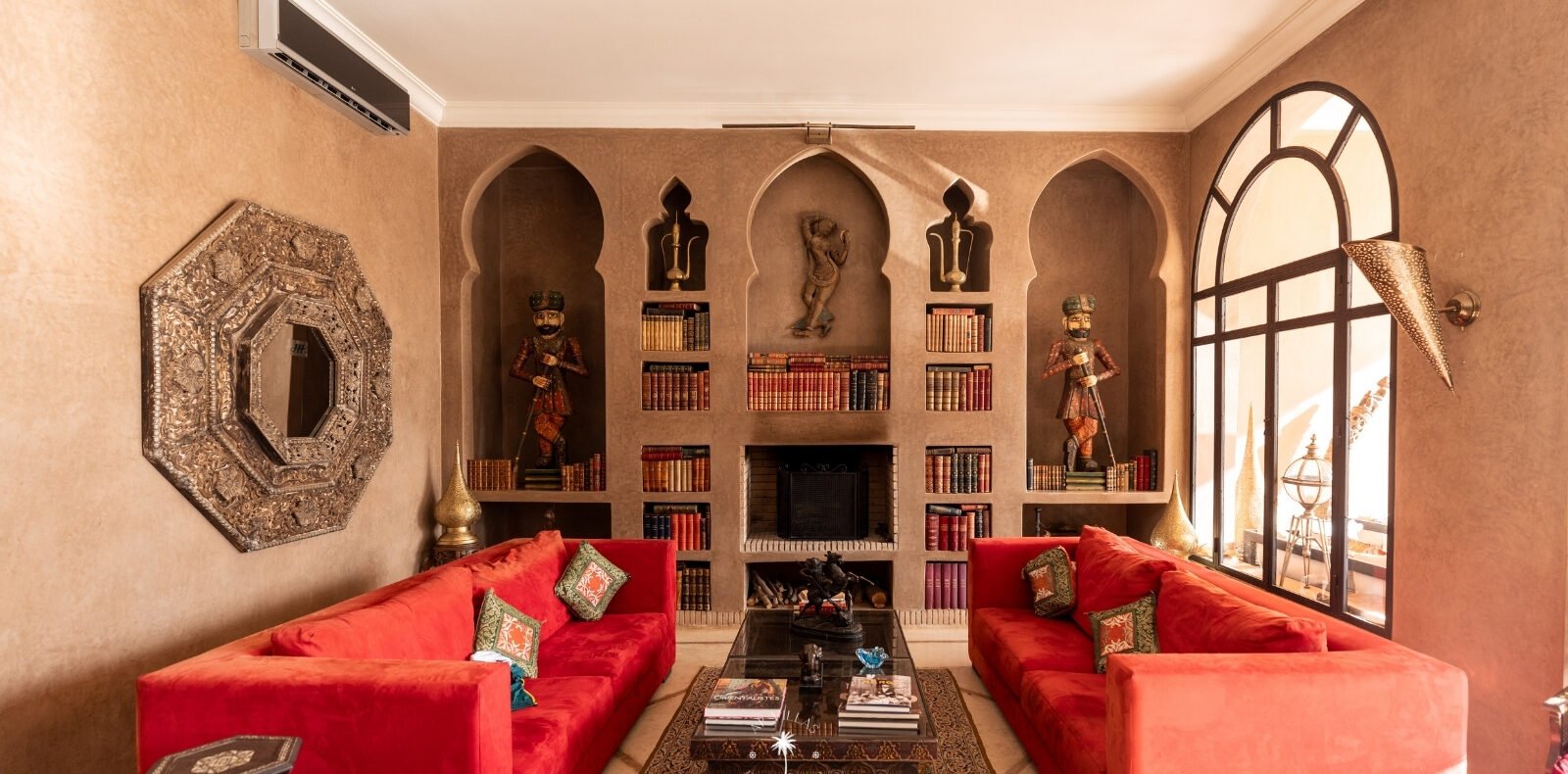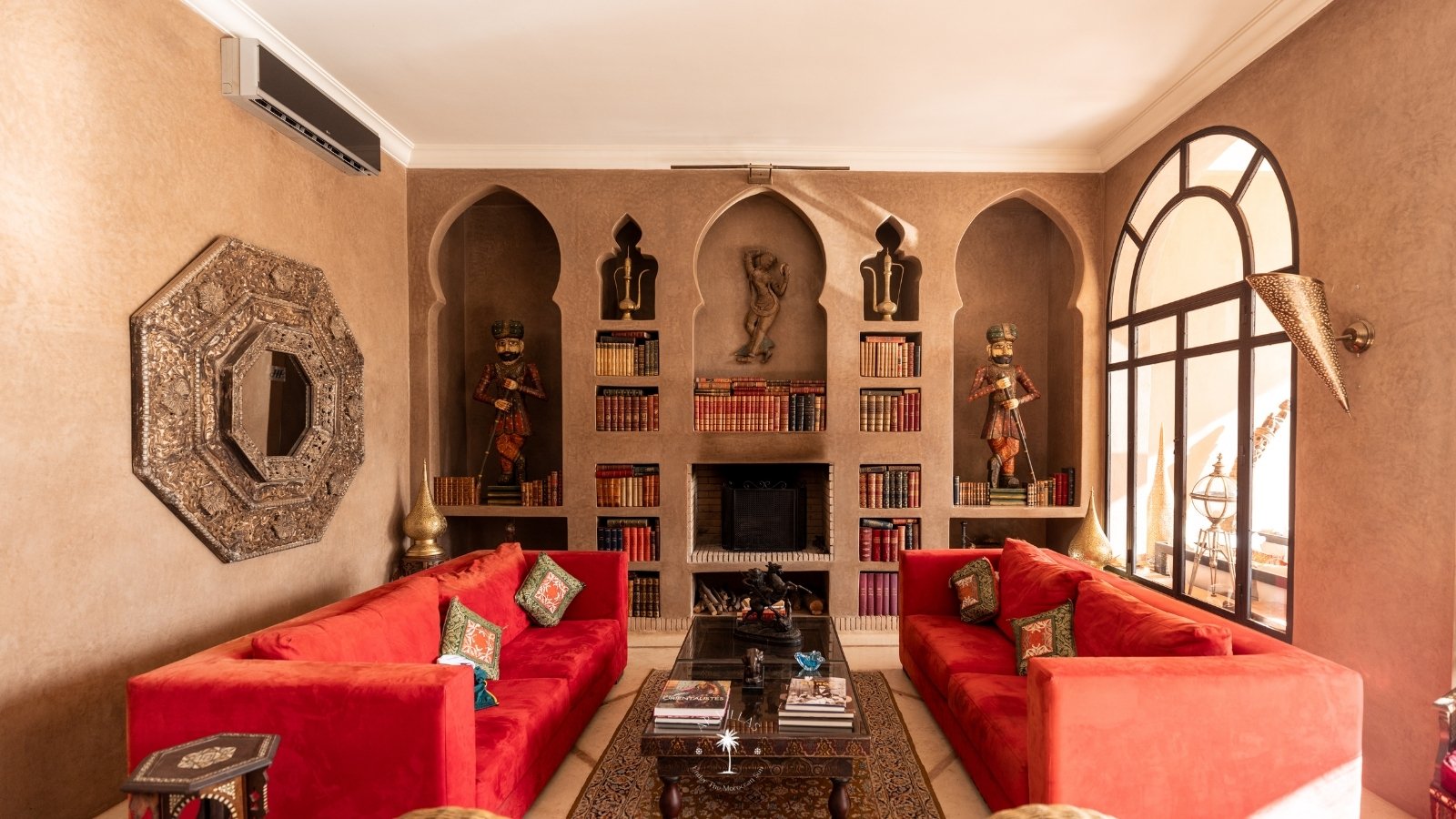 The grandeur continues indoors, where you’ll find several exquisitely appointed lounges, two dining rooms, one for intimate indoor meals and another al fresco to savor Marrakech’s enchanting climate. The study, equipped with a large table and bar, offers a luxurious space for work or relaxation, complemented by a cozy lounge with a library and satellite TV.