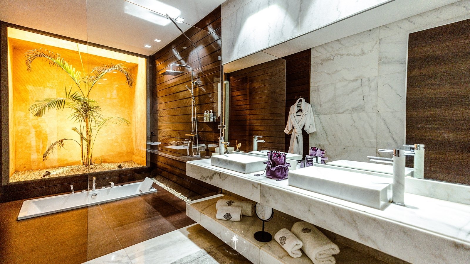 Pour votre détente, la villa dispose d'un hammam beldi en marbre et d'un spa, proposant une gamme de soins et de massages.