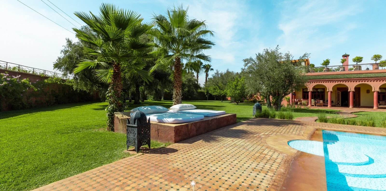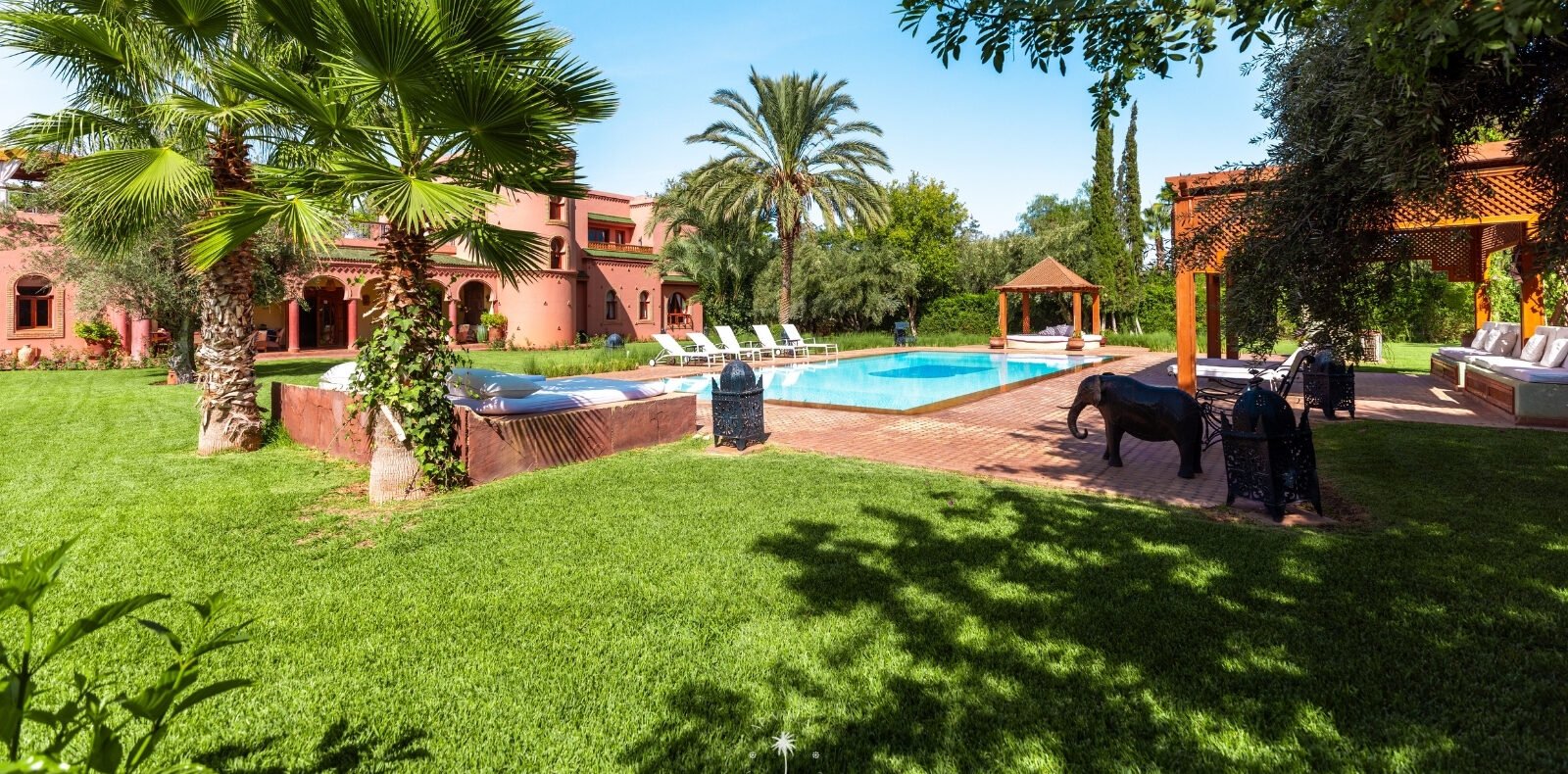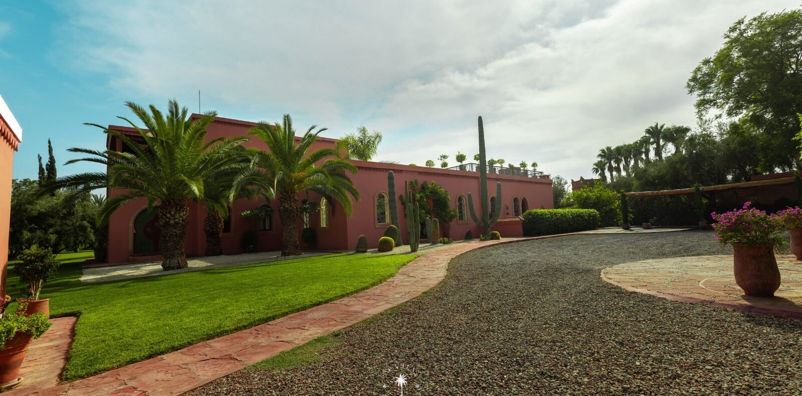 La Villa Amina se trouve à seulement 20 minutes de la médina animée de Marrakech, tout en offrant une escapade sereine au cœur d'un vaste jardin luxuriant orné de milliers de roses, de bougainvilliers, de plumbagos, d'oliviers, de grenadiers et de bananiers, ainsi que de pelouses douces idéales pour que les enfants s'amusent. Le jardin abrite également Leila et Charlie, un couple de tortues qui veillent sur les oiseaux exotiques et les papillons qui fréquentent cet espace adoré. Conçue avec affection par ses propriétaires anglais, la villa présente des éléments exotiques et dramatiques, créant un refuge somptueux loin de l'agitation du Maroc.