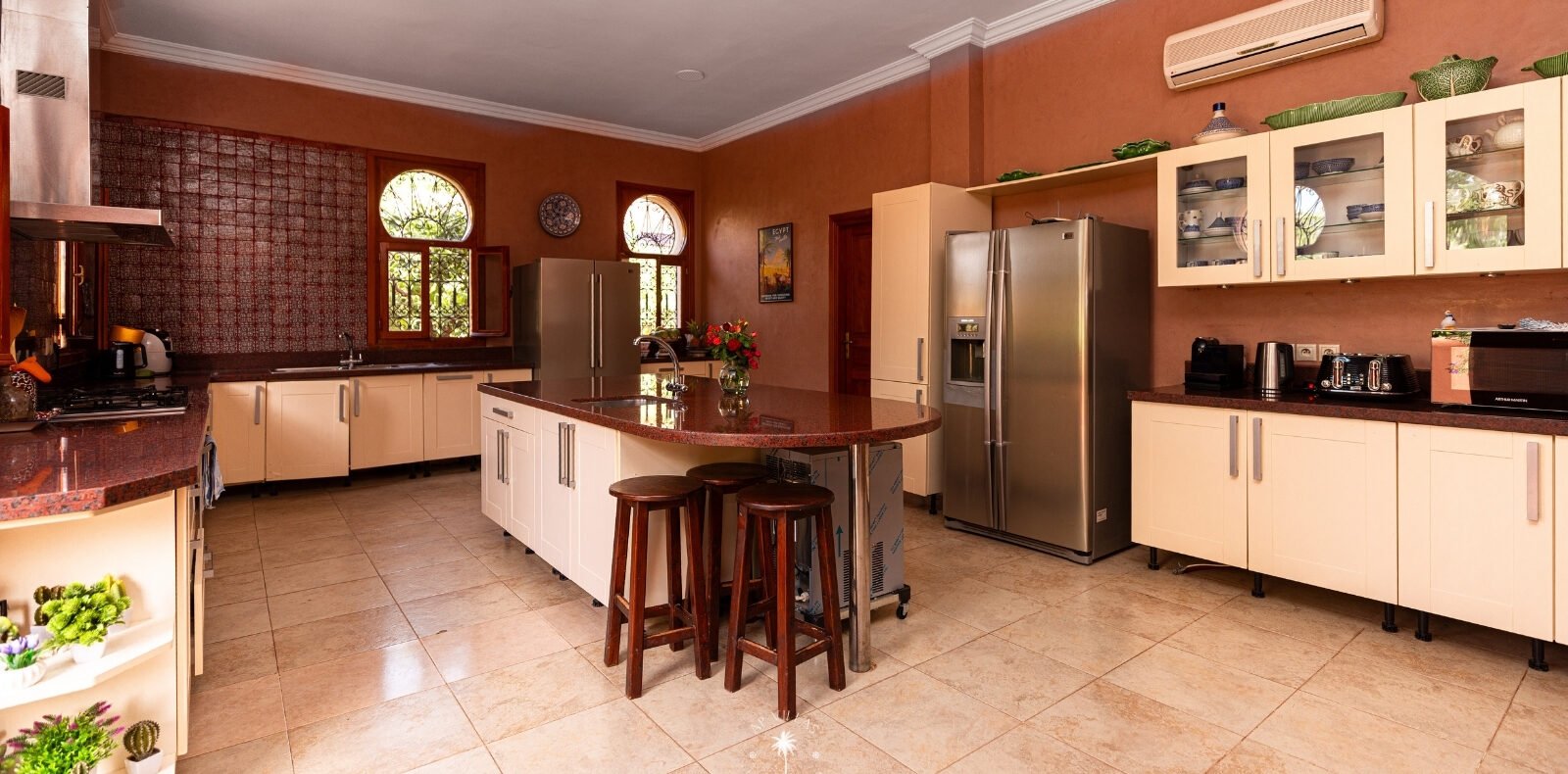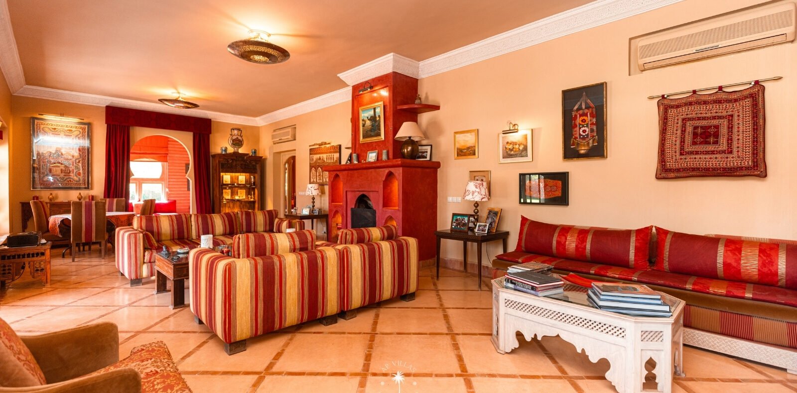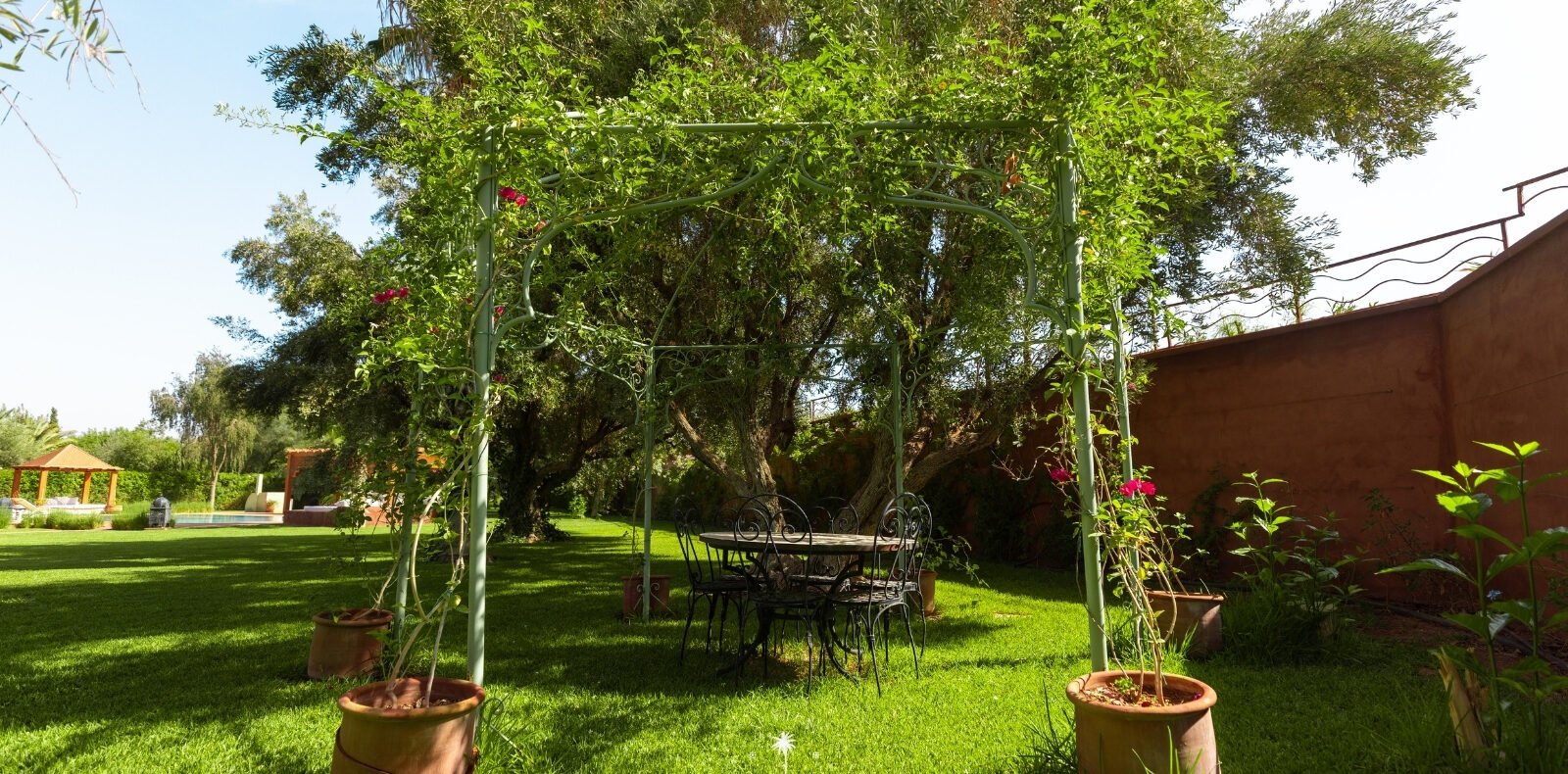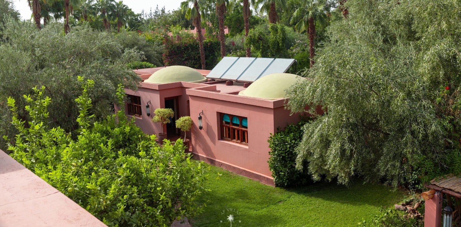 La Villa Amina se trouve à seulement 20 minutes de la médina animée de Marrakech, tout en offrant une escapade sereine au cœur d'un vaste jardin luxuriant orné de milliers de roses, de bougainvilliers, de plumbagos, d'oliviers, de grenadiers et de bananiers, ainsi que de pelouses douces idéales pour que les enfants s'amusent. Le jardin abrite également Leila et Charlie, un couple de tortues qui veillent sur les oiseaux exotiques et les papillons qui fréquentent cet espace adoré. Conçue avec affection par ses propriétaires anglais, la villa présente des éléments exotiques et dramatiques, créant un refuge somptueux loin de l'agitation du Maroc.
