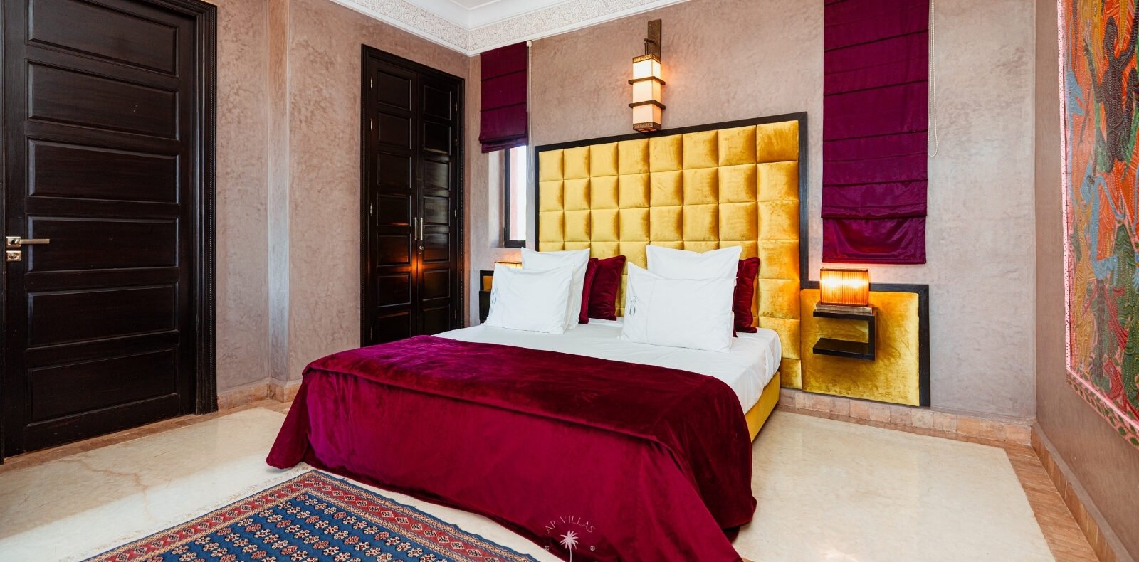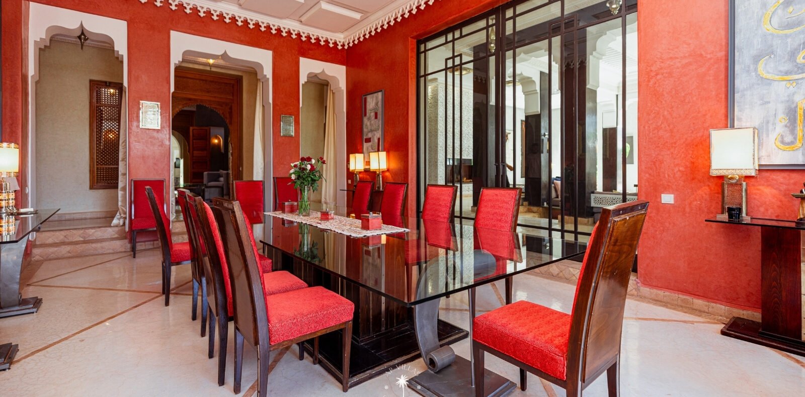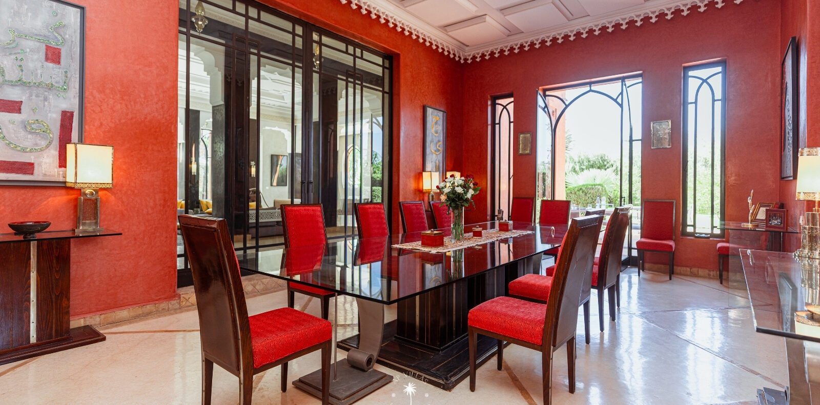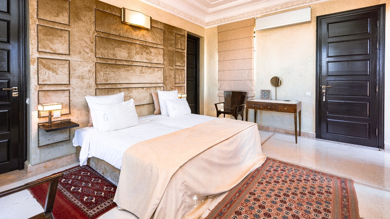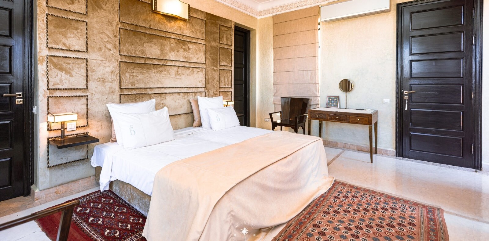 La Villa Mahal comprend cinq suites avec salles de bains privatives, deux salons accueillants, une salle à manger, une piscine, un hammam et une salle de sport. Inspirée par des souvenirs d’enfance magiques, la villa mêle tradition perse, modernité occidentale et charme marocain—une escapade idyllique hors du temps.