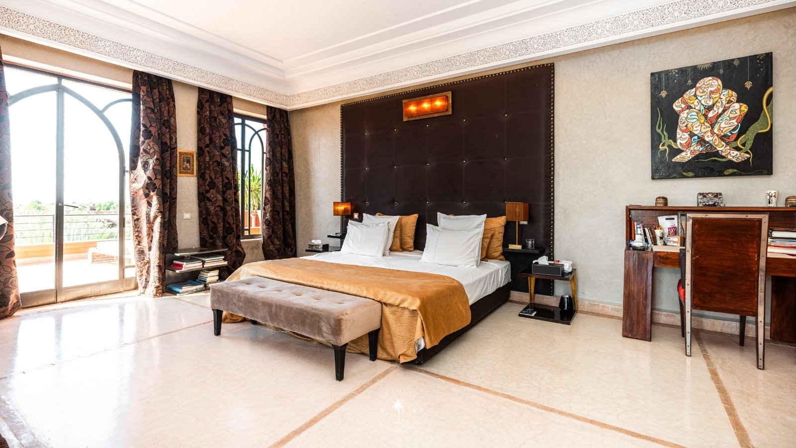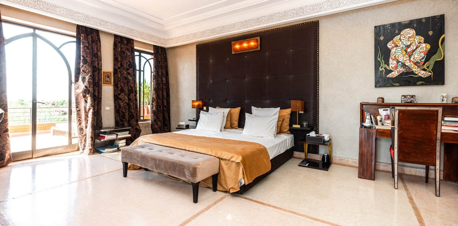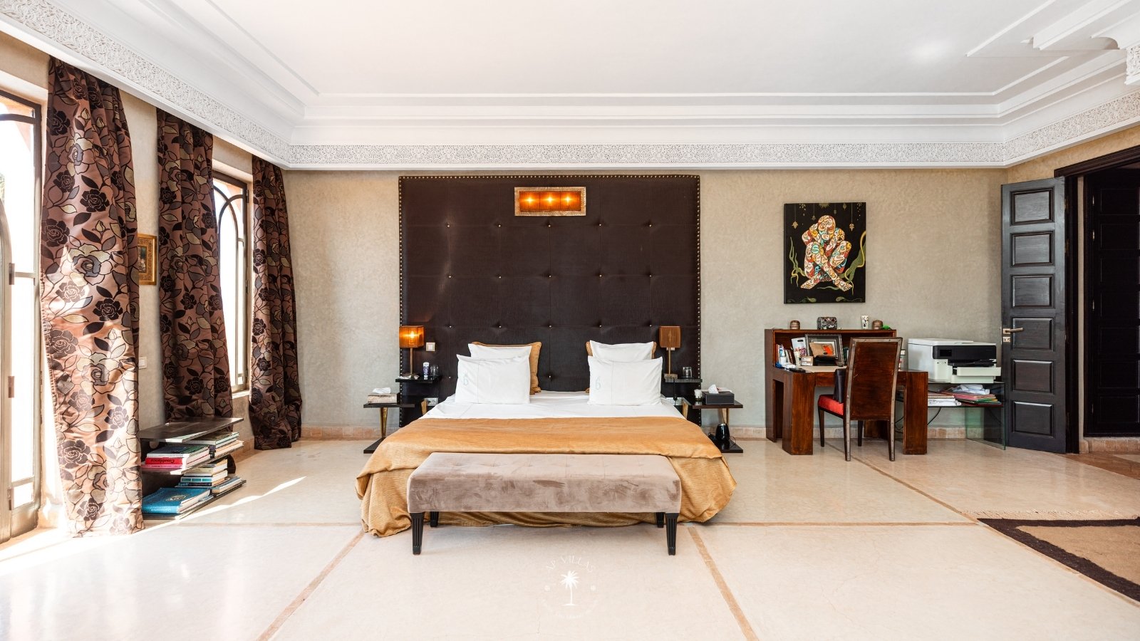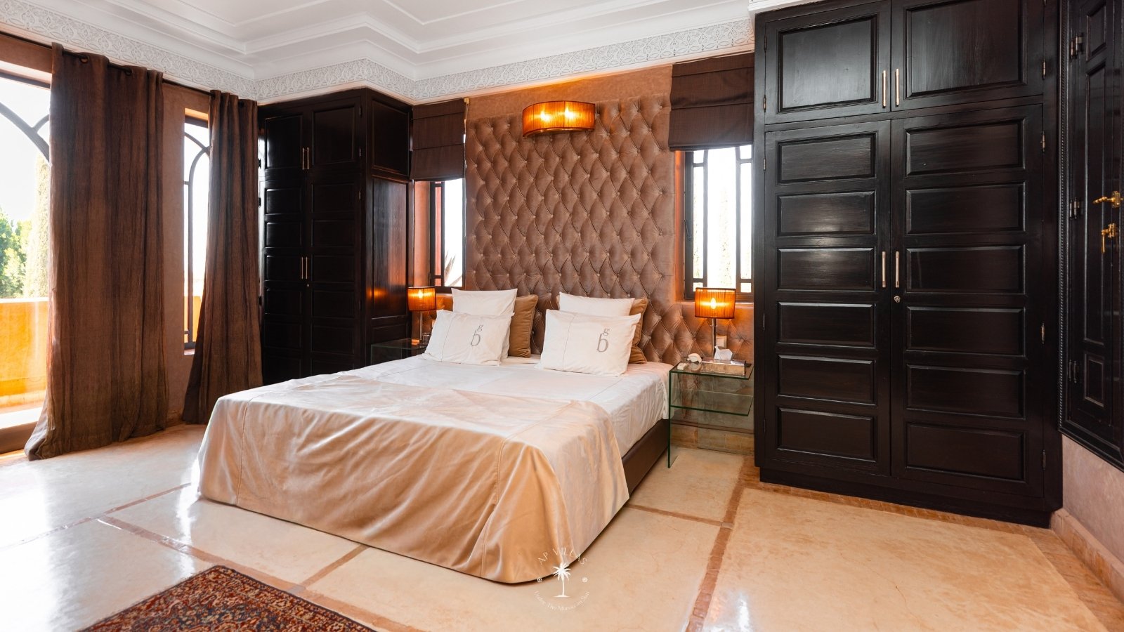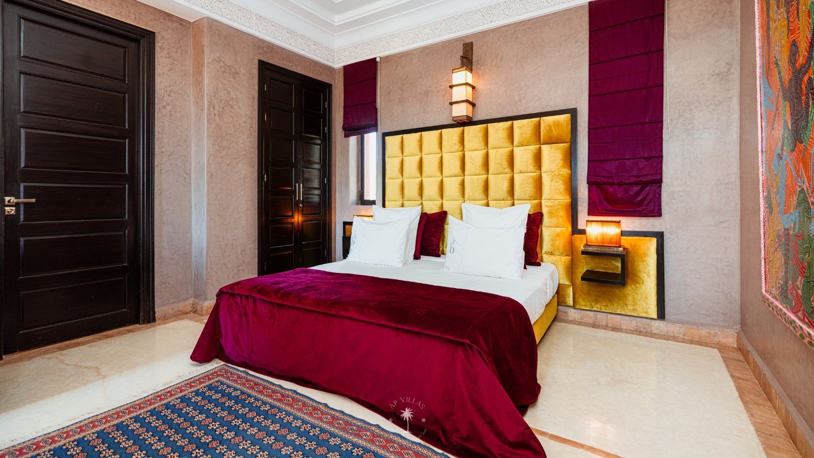 La Villa Mahal comprend cinq suites avec salles de bains privatives, deux salons accueillants, une salle à manger, une piscine, un hammam et une salle de sport. Inspirée par des souvenirs d’enfance magiques, la villa mêle tradition perse, modernité occidentale et charme marocain—une escapade idyllique hors du temps.
