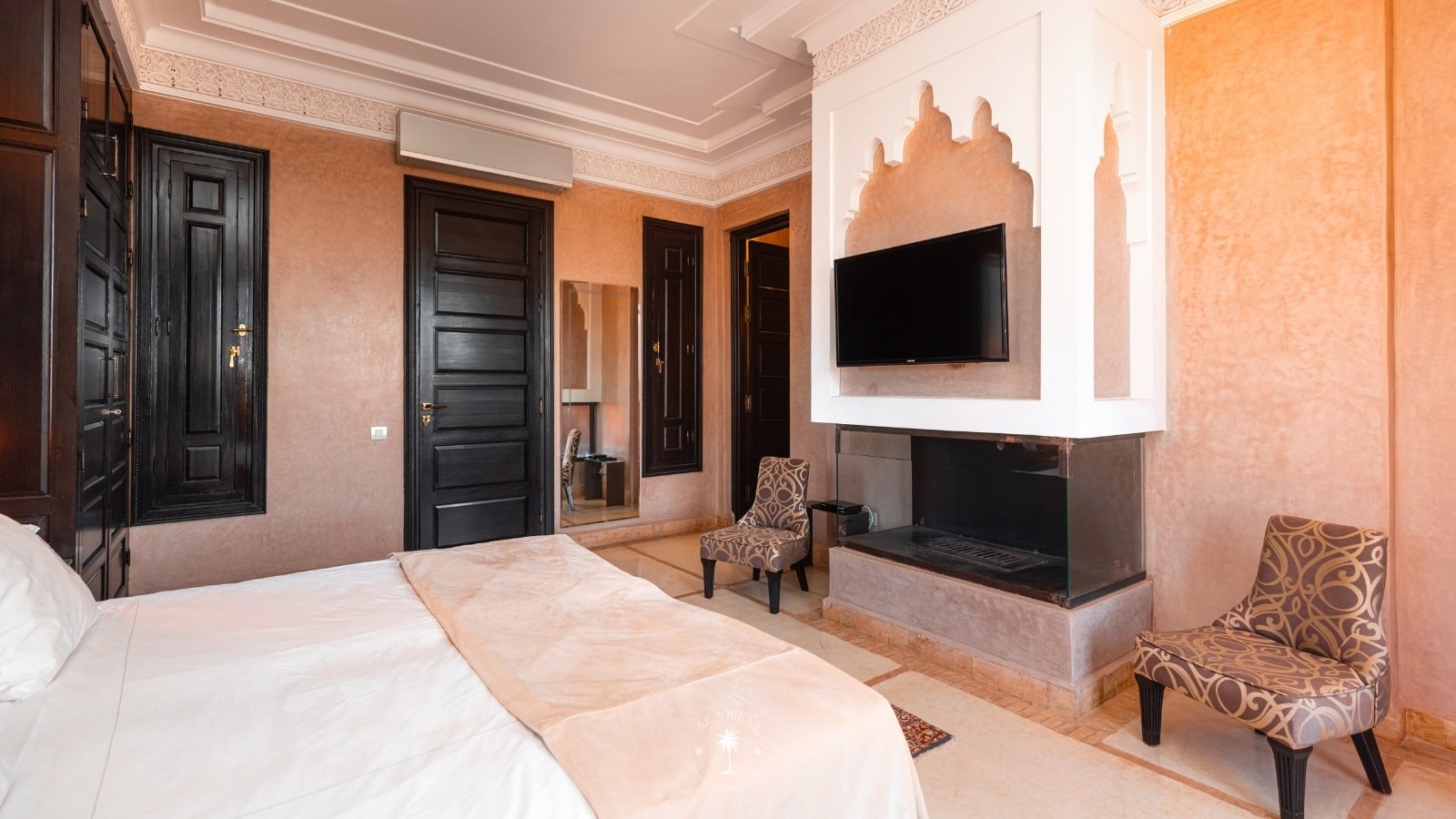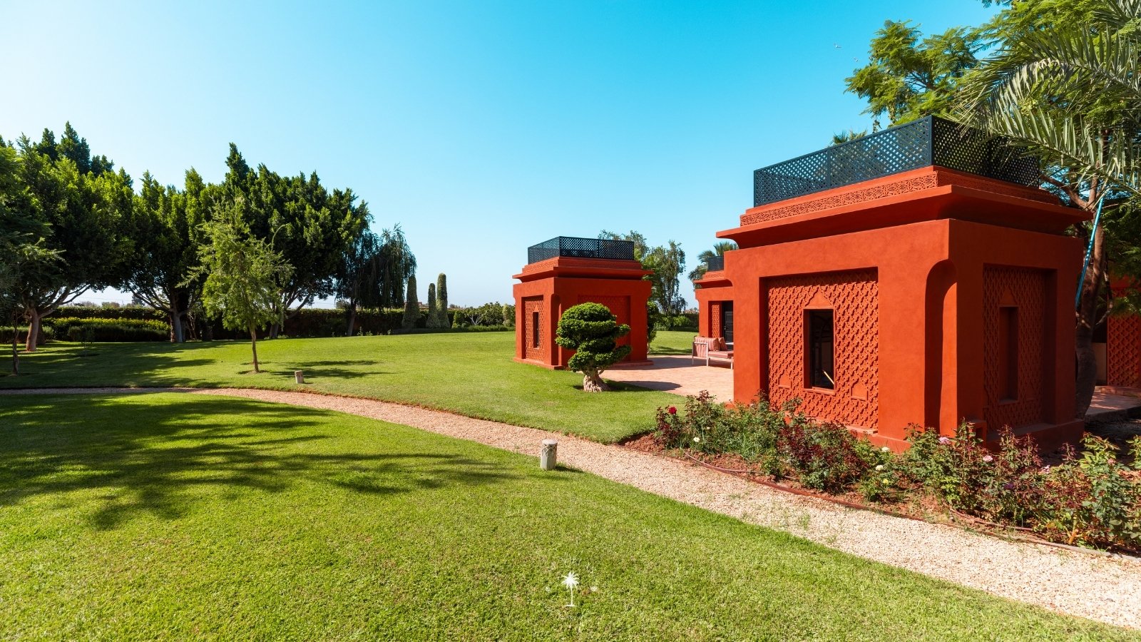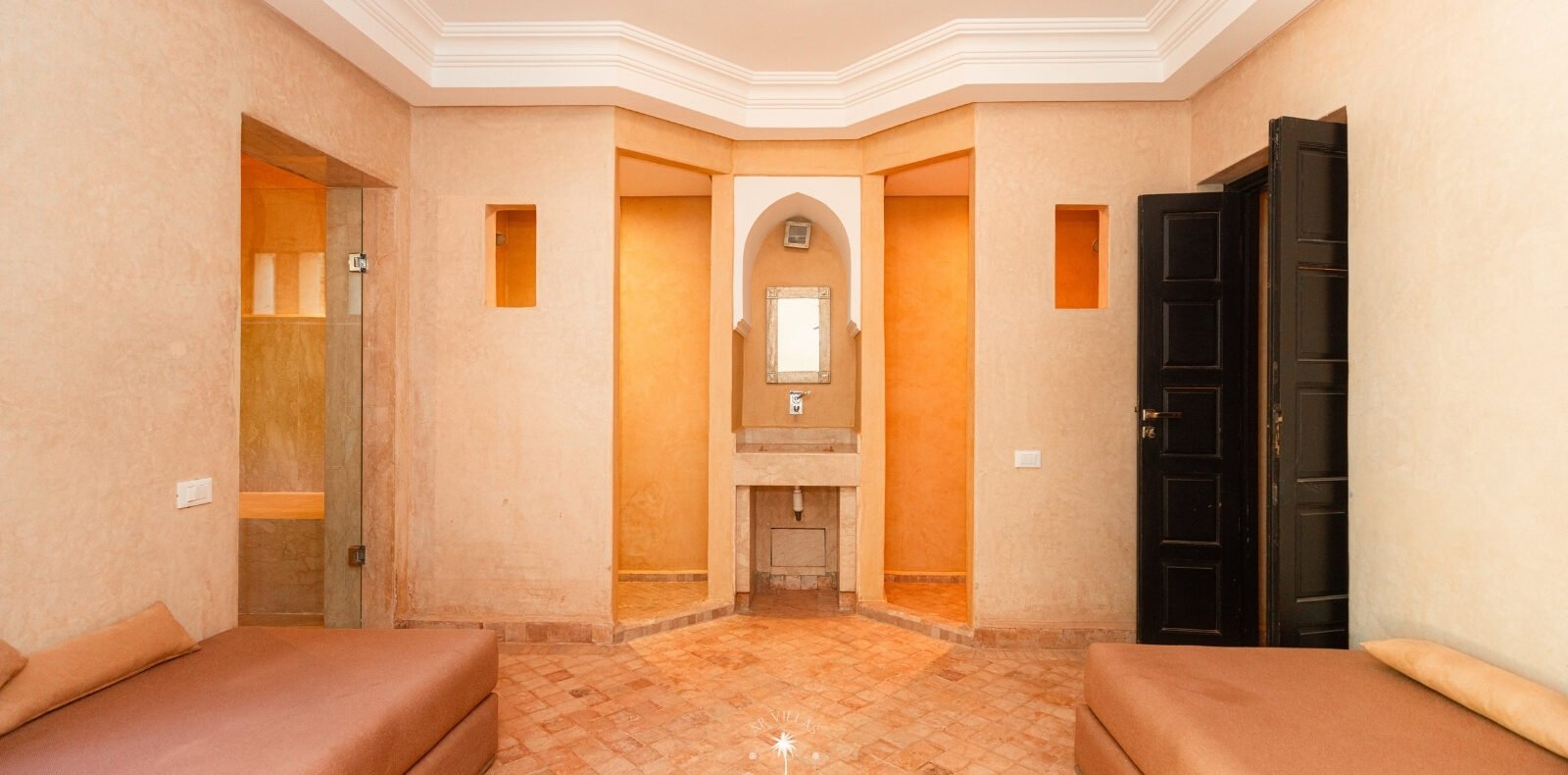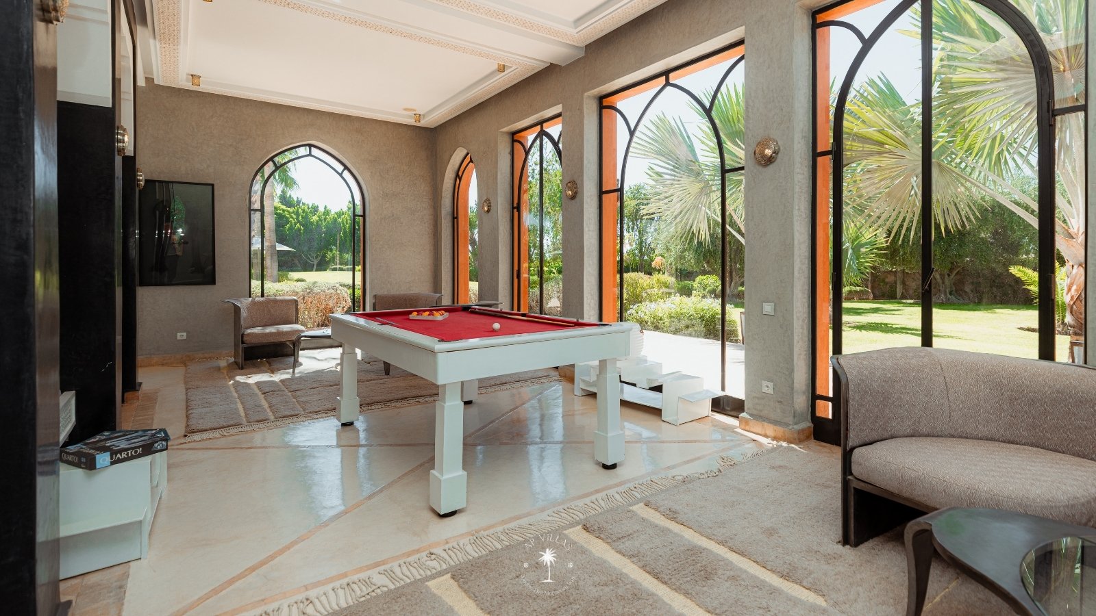 La Villa Mahal comprend cinq suites avec salles de bains privatives, deux salons accueillants, une salle à manger, une piscine, un hammam et une salle de sport. Inspirée par des souvenirs d’enfance magiques, la villa mêle tradition perse, modernité occidentale et charme marocain—une escapade idyllique hors du temps.