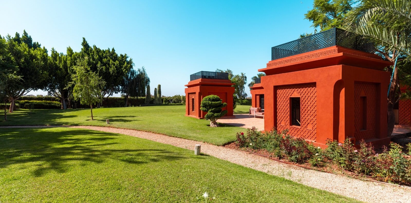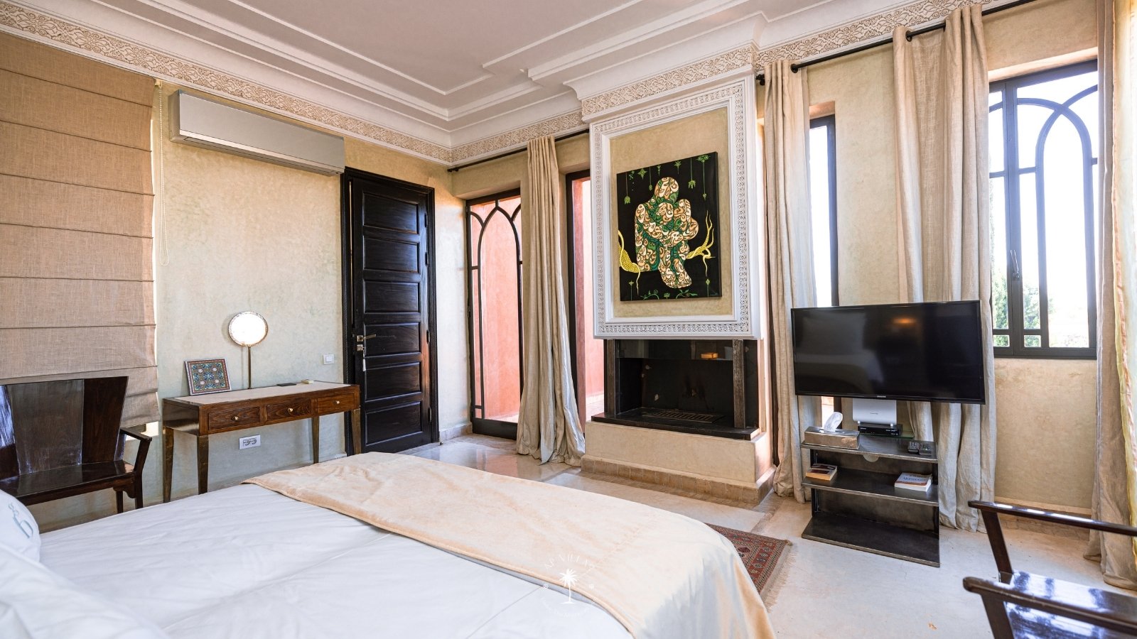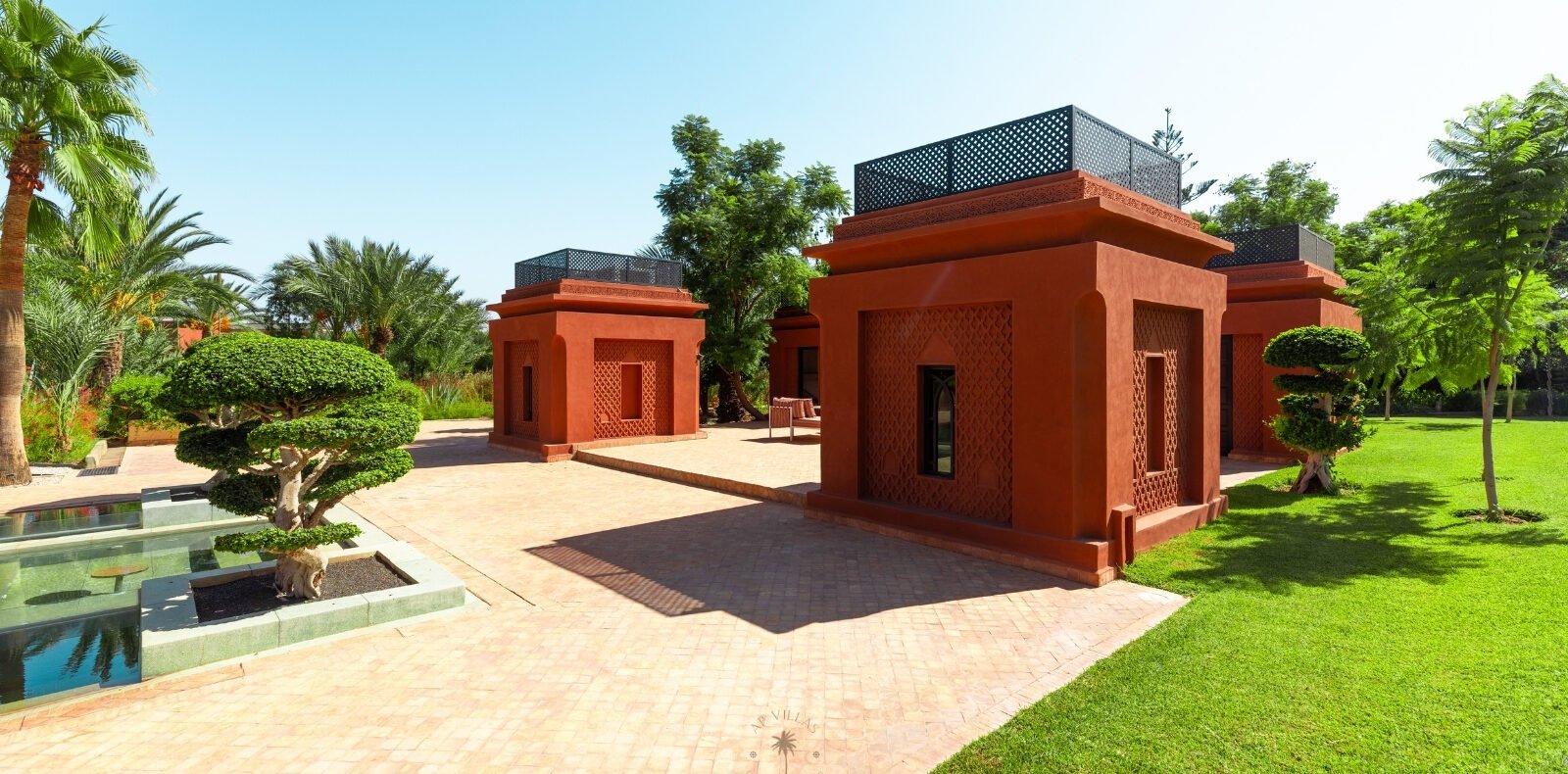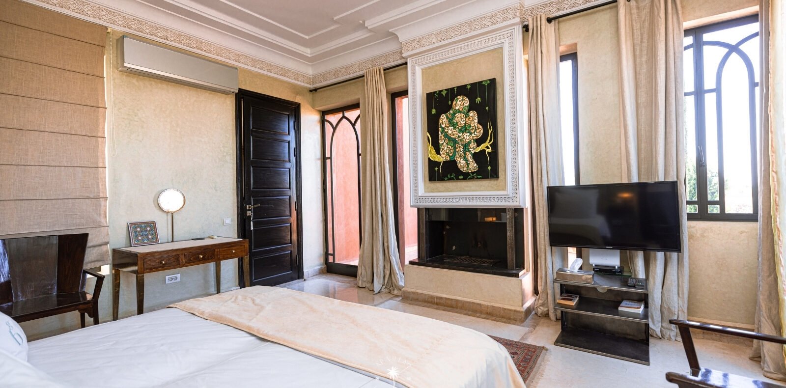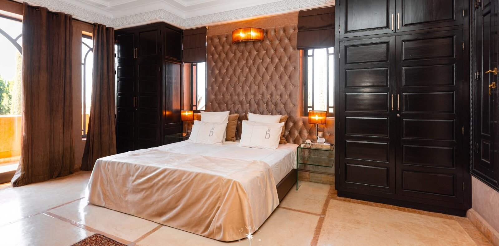 La Villa Mahal comprend cinq suites avec salles de bains privatives, deux salons accueillants, une salle à manger, une piscine, un hammam et une salle de sport. Inspirée par des souvenirs d’enfance magiques, la villa mêle tradition perse, modernité occidentale et charme marocain—une escapade idyllique hors du temps.