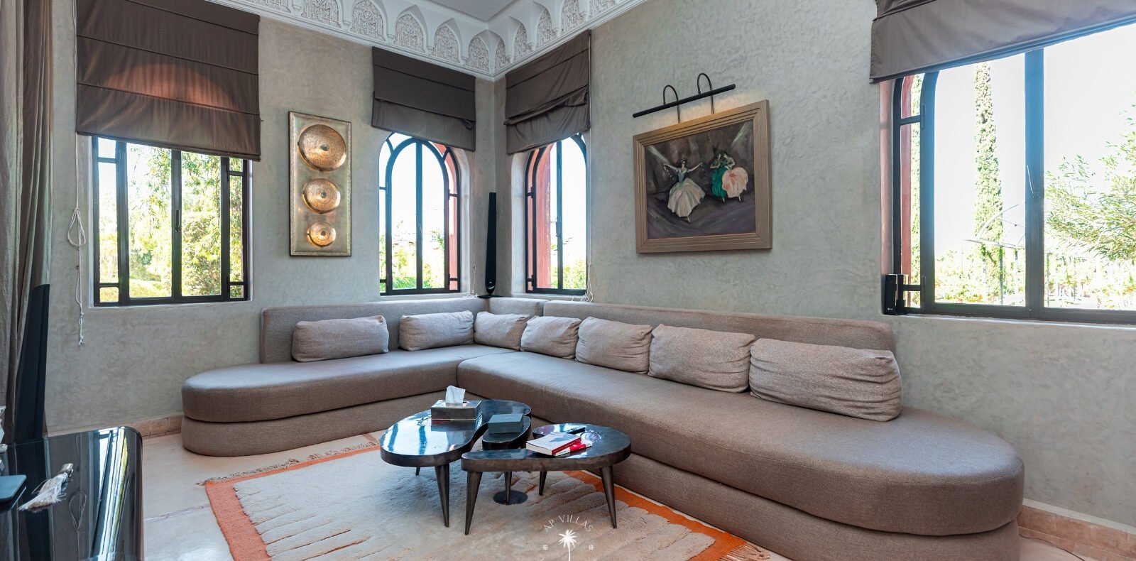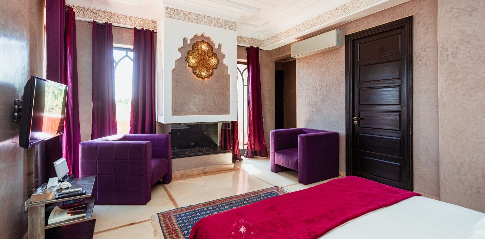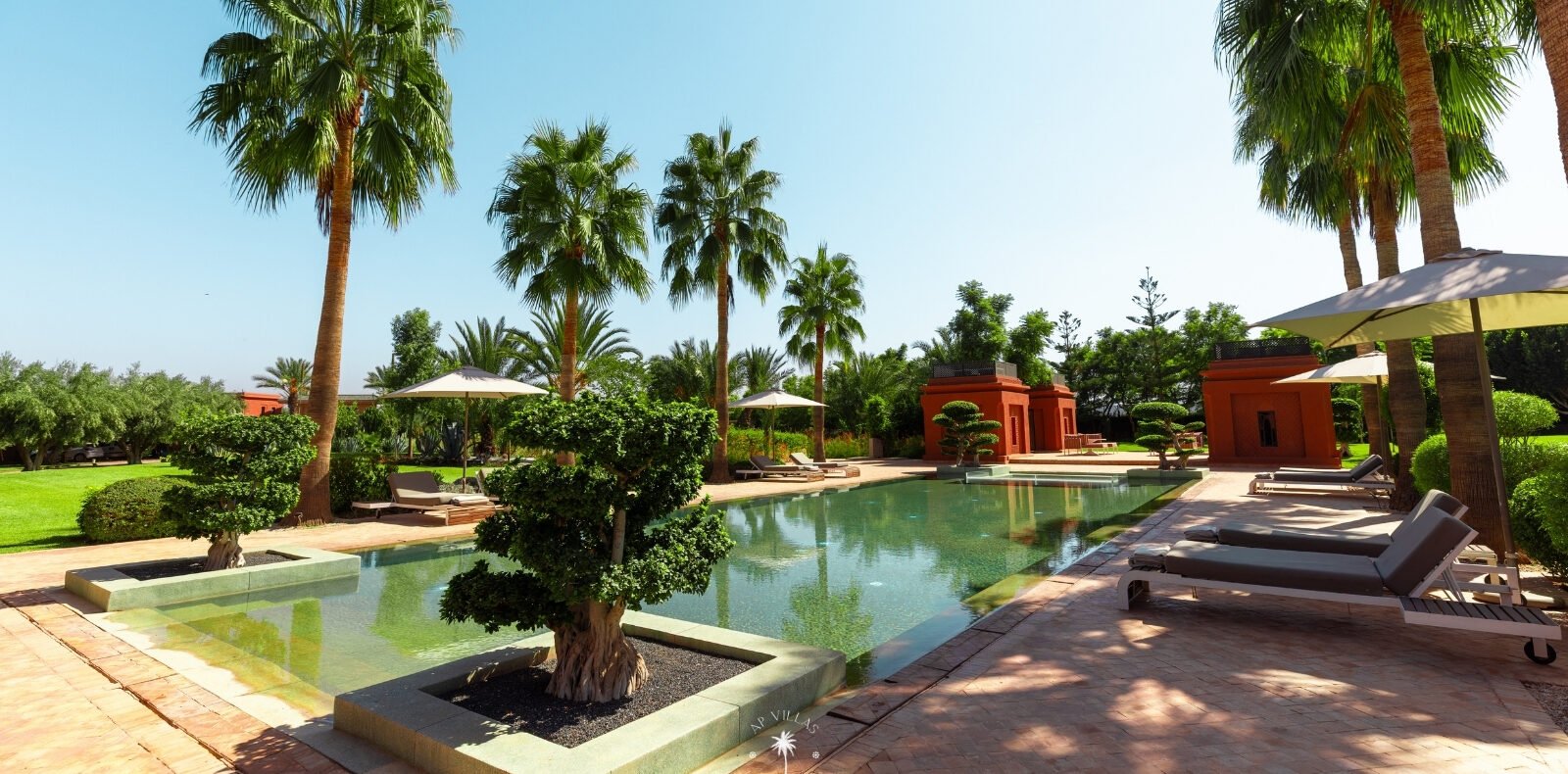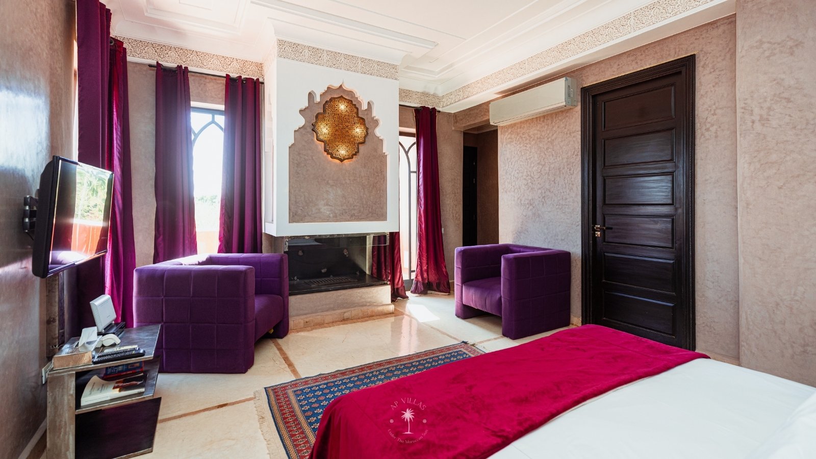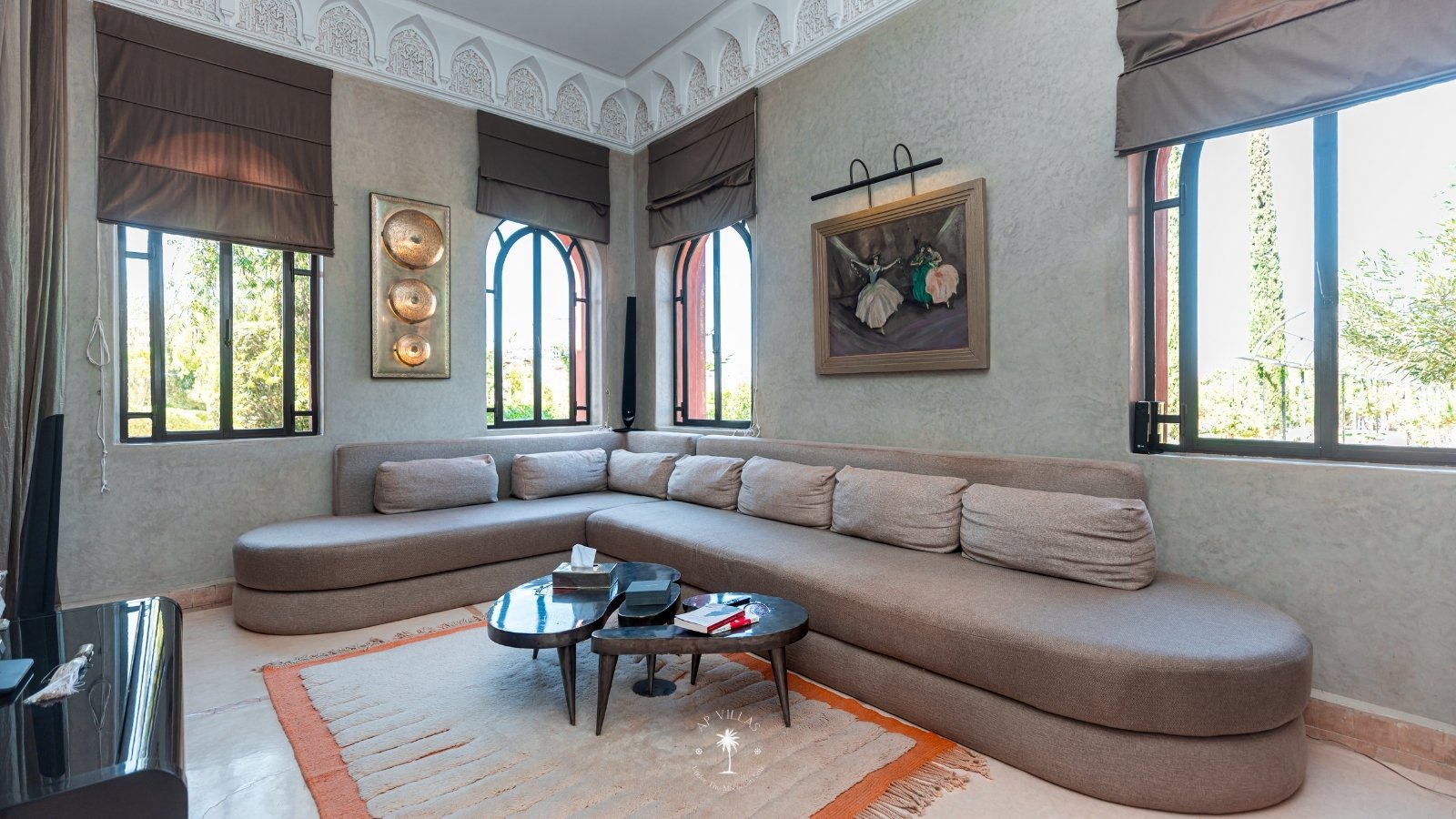 La Villa Mahal comprend cinq suites avec salles de bains privatives, deux salons accueillants, une salle à manger, une piscine, un hammam et une salle de sport. Inspirée par des souvenirs d’enfance magiques, la villa mêle tradition perse, modernité occidentale et charme marocain—une escapade idyllique hors du temps.