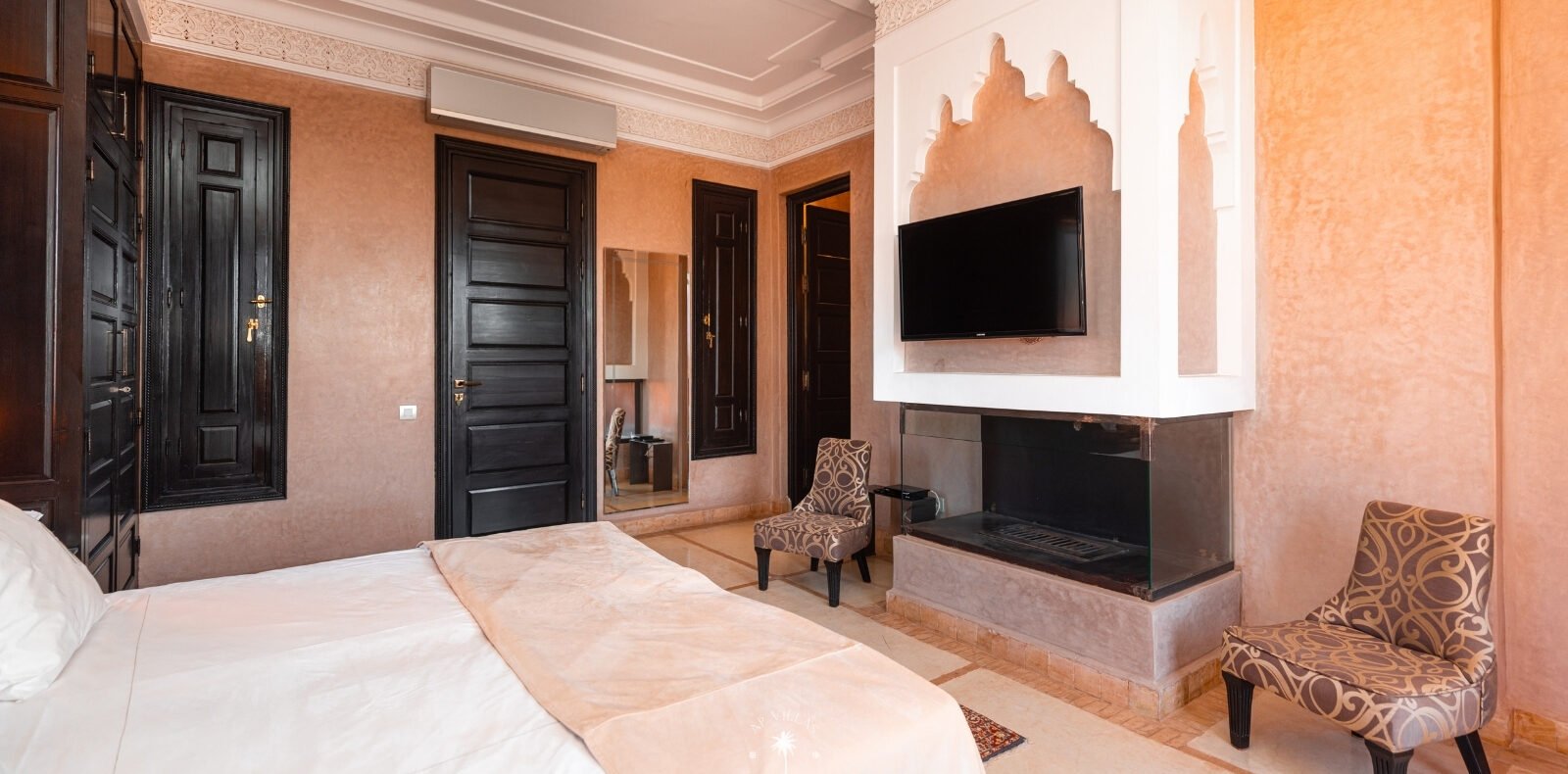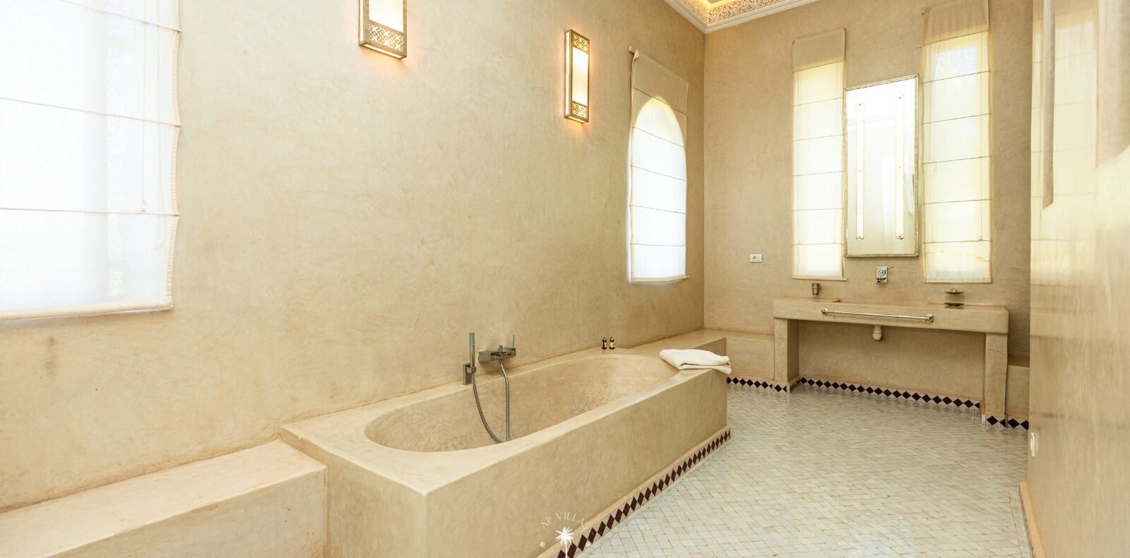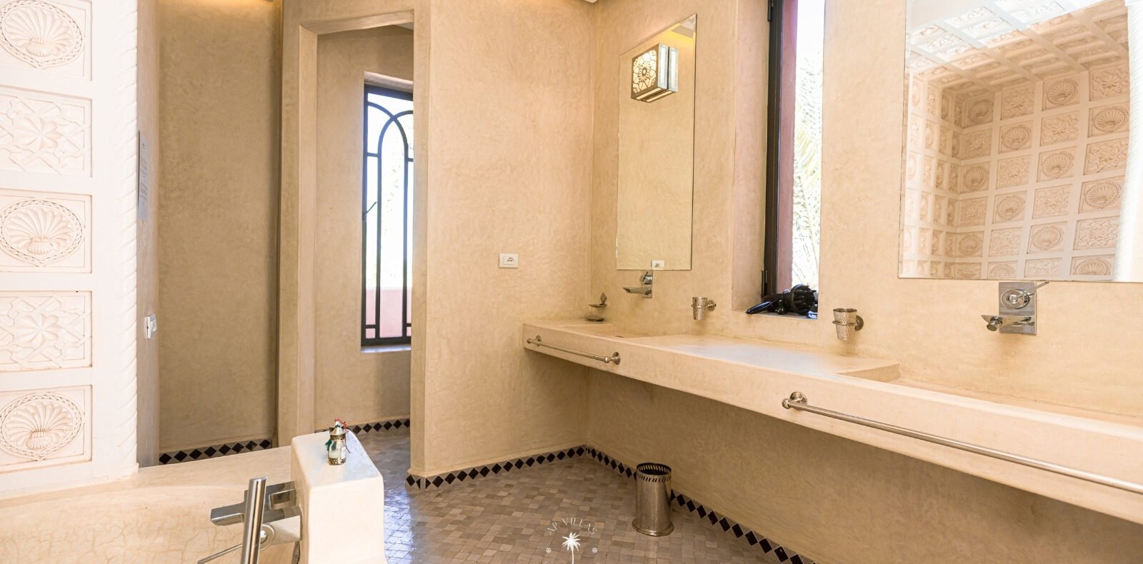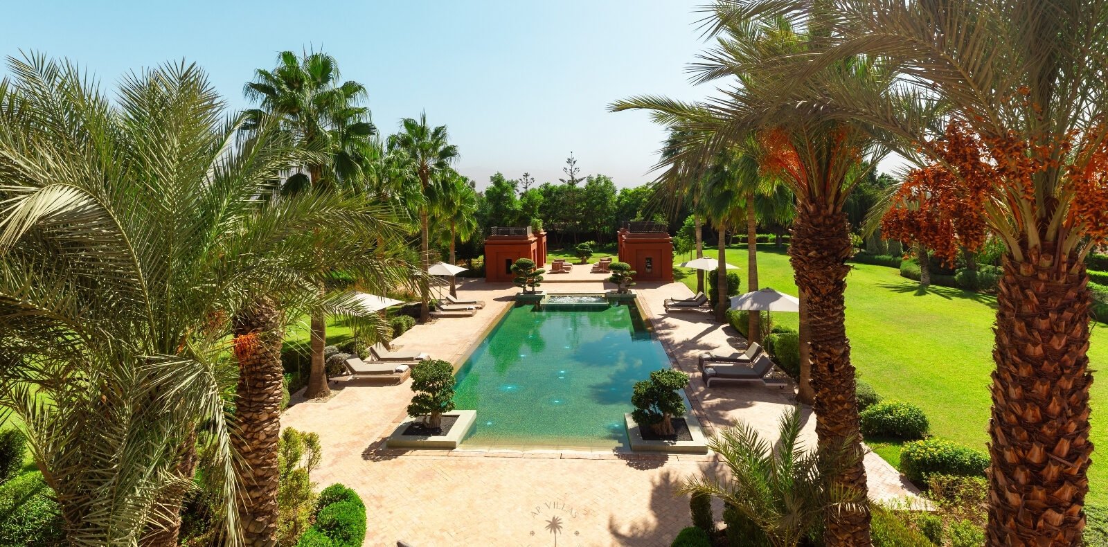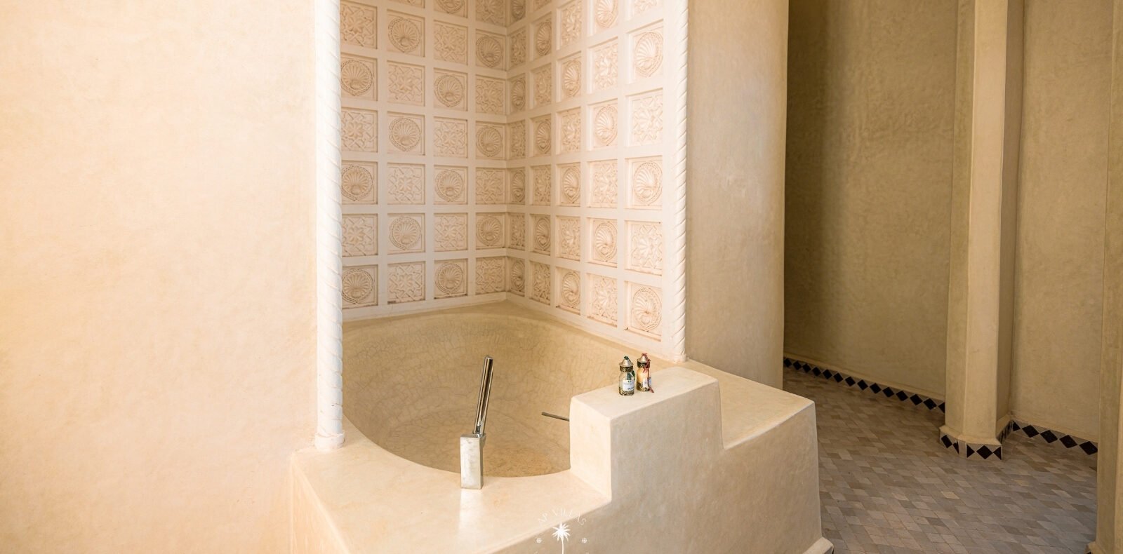 La Villa Mahal comprend cinq suites avec salles de bains privatives, deux salons accueillants, une salle à manger, une piscine, un hammam et une salle de sport. Inspirée par des souvenirs d’enfance magiques, la villa mêle tradition perse, modernité occidentale et charme marocain—une escapade idyllique hors du temps.