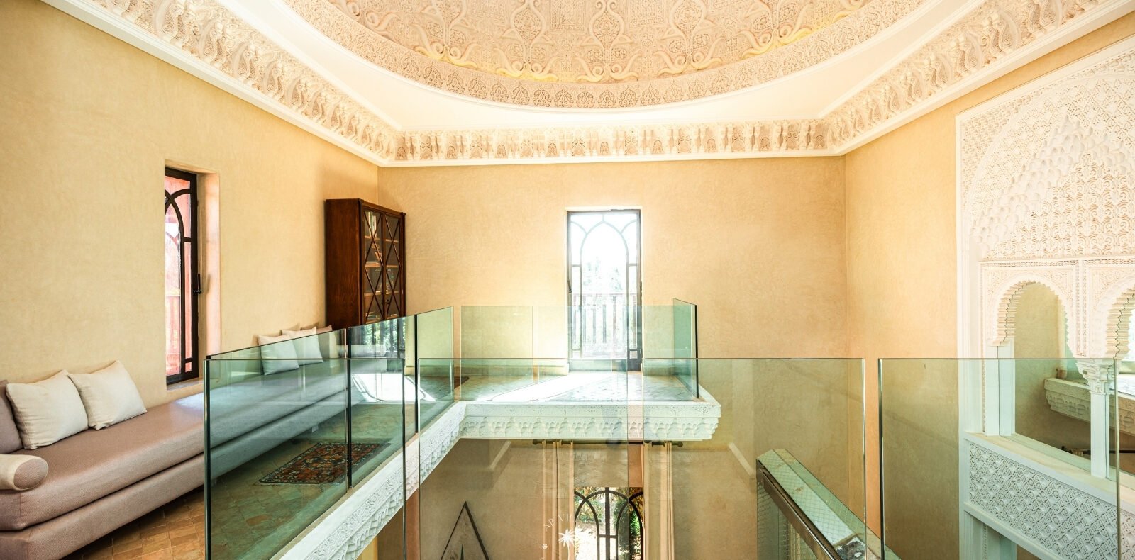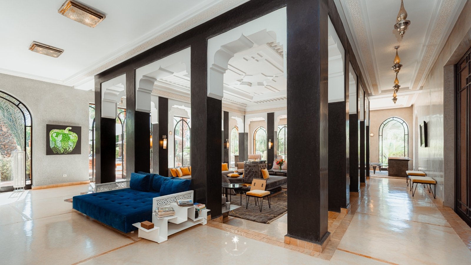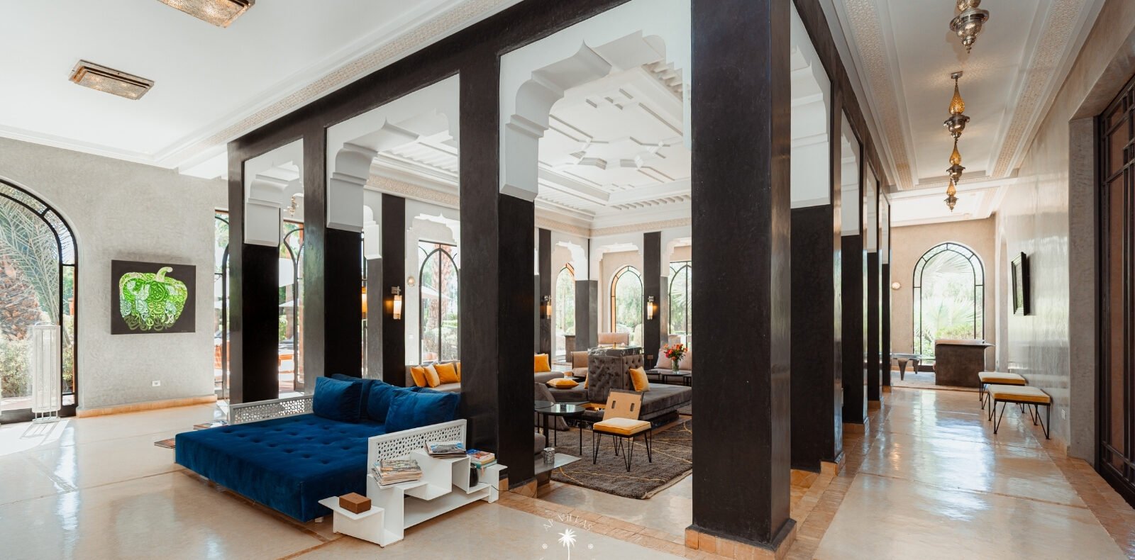 Surplombant les montagnes de l’Atlas et à quelques pas de la vibrante Marrakech, la Villa Mahal est un véritable joyau architectural sur la route de la vallée de l’Ourika. Nichée au cœur d’un parc luxuriant et parfumé, la villa est l’œuvre de l’architecte Gil Bakhtiar.
