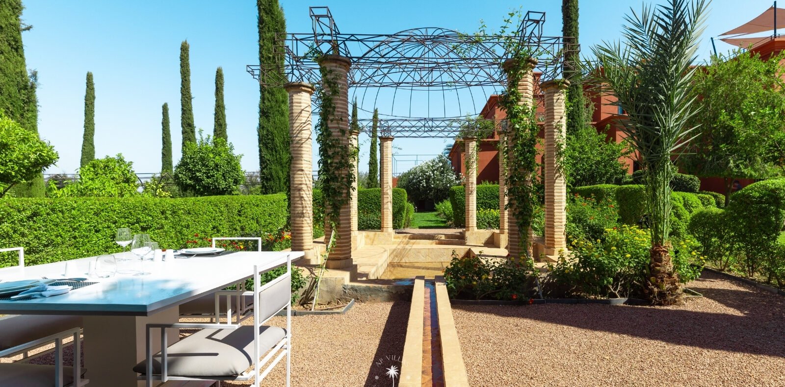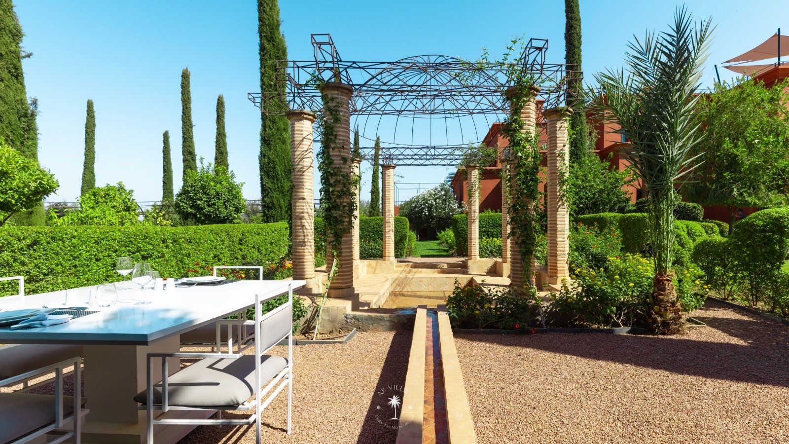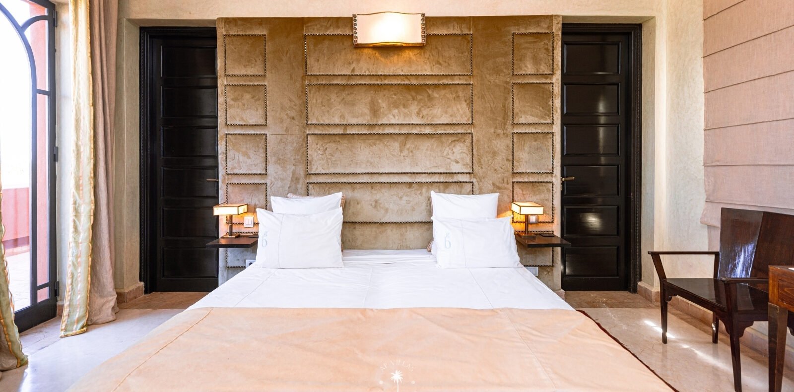 Surplombant les montagnes de l’Atlas et à quelques pas de la vibrante Marrakech, la Villa Mahal est un véritable joyau architectural sur la route de la vallée de l’Ourika. Nichée au cœur d’un parc luxuriant et parfumé, la villa est l’œuvre de l’architecte Gil Bakhtiar.