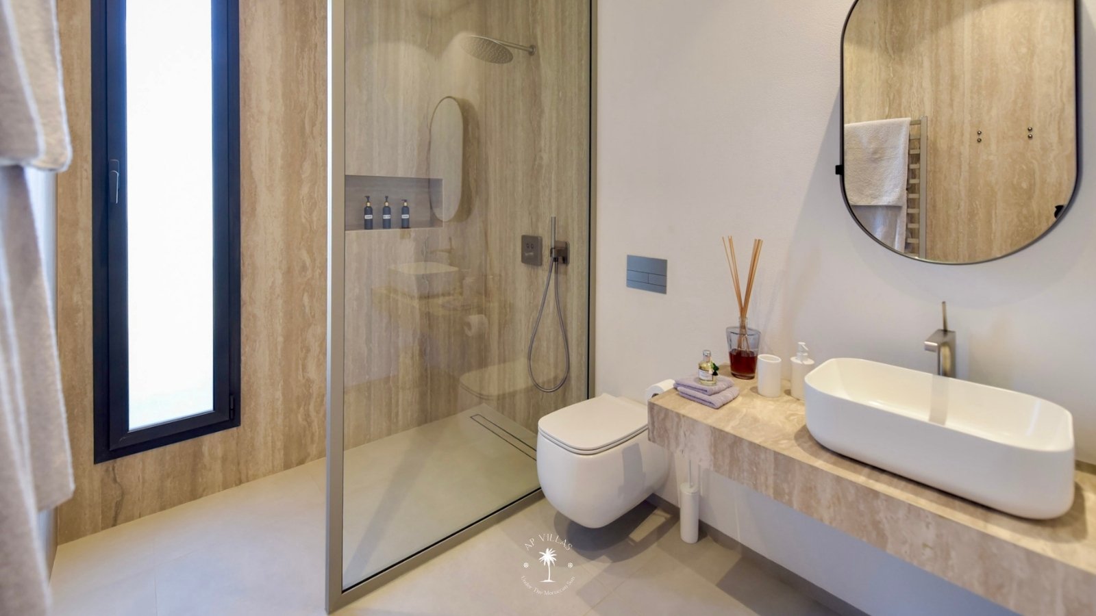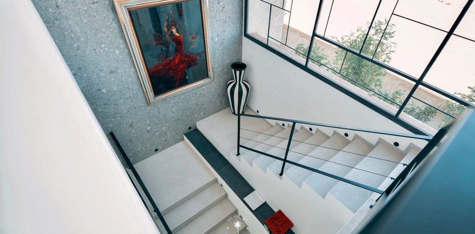 À l'étage supérieur, vous découvrirez quatre suites luxueuses, chacune soigneusement conçue pour un confort absolu et dotée de sa propre salle de bain privative, garantissant intimité et commodité à chaque invité.