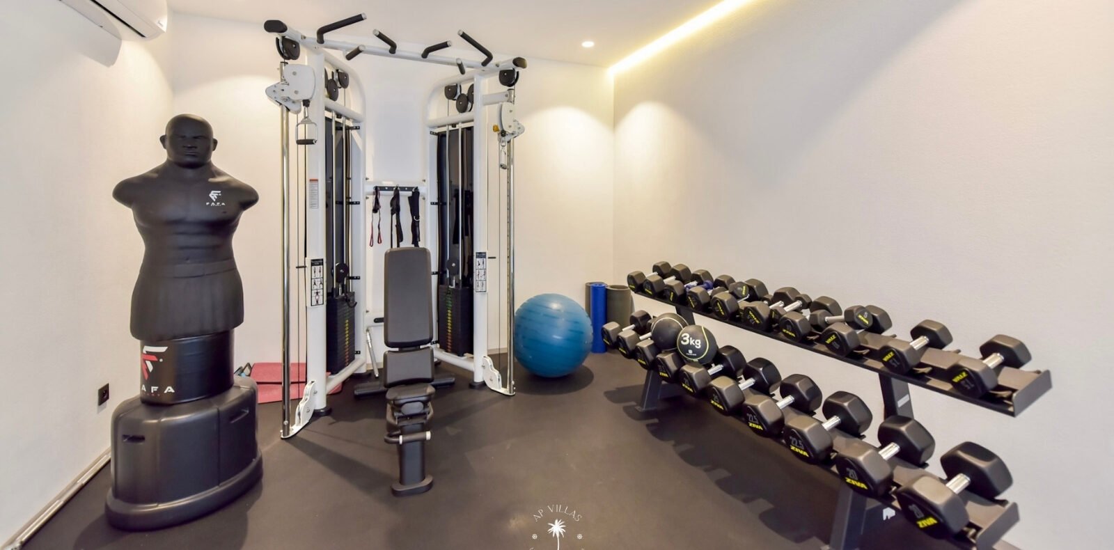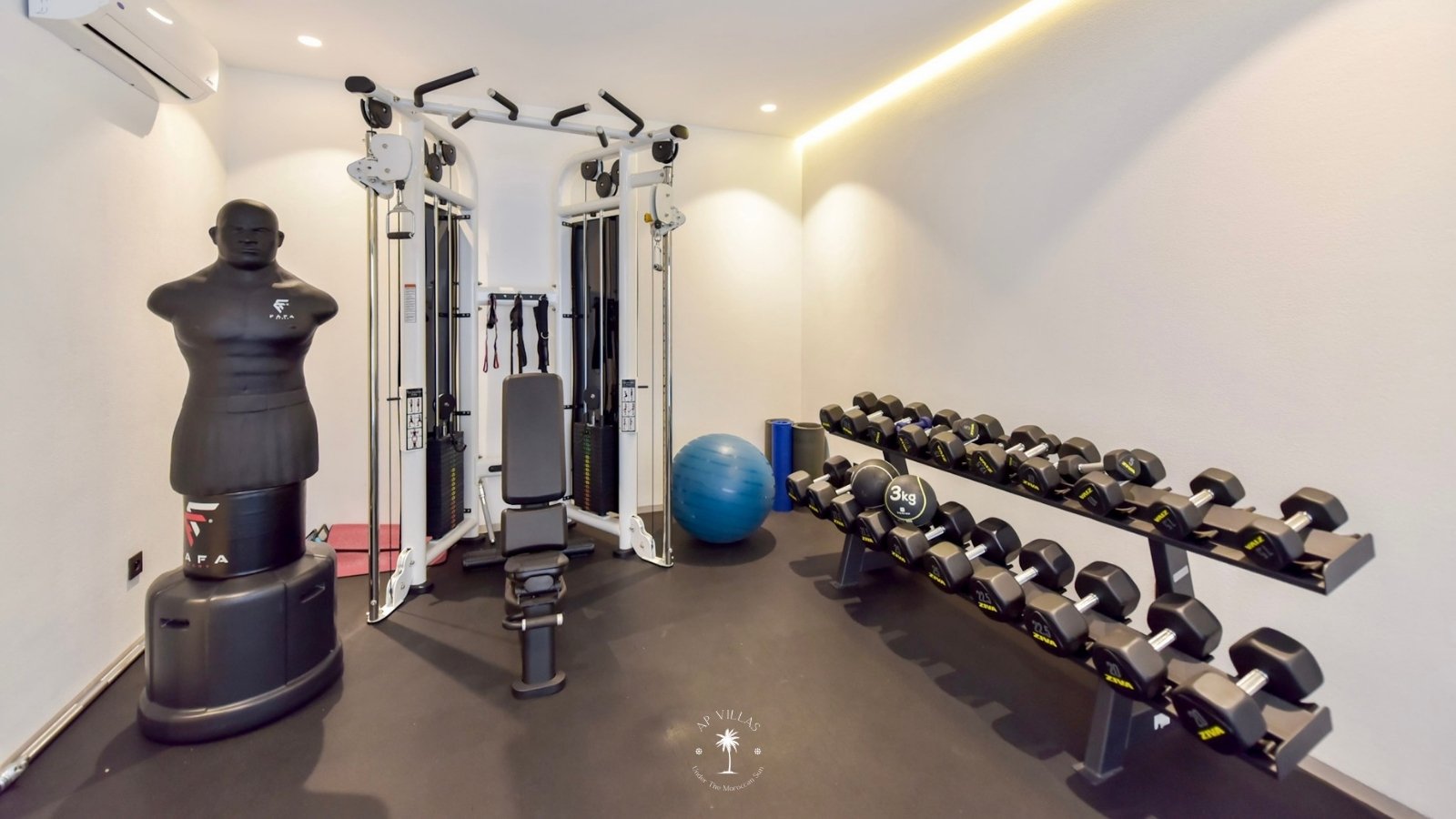 Pour les amateurs de sport, la salle de fitness est entièrement équipée avec une gamme complète d'appareils de musculation et de cardio-training, vous permettant de maintenir votre routine d'entraînement pendant votre séjour.