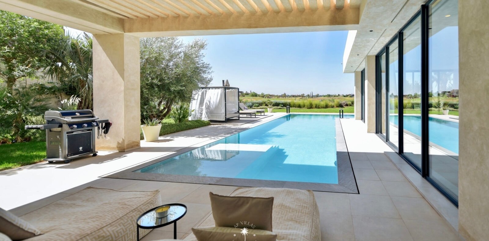 Bienvenue à la somptueuse Villa Marmara, idéalement située au cœur de l’un des parcours de golf les plus prestigieux de Marrakech. Cette résidence magnifiquement aménagée promet de répondre à toutes vos envies pour un séjour inoubliable.