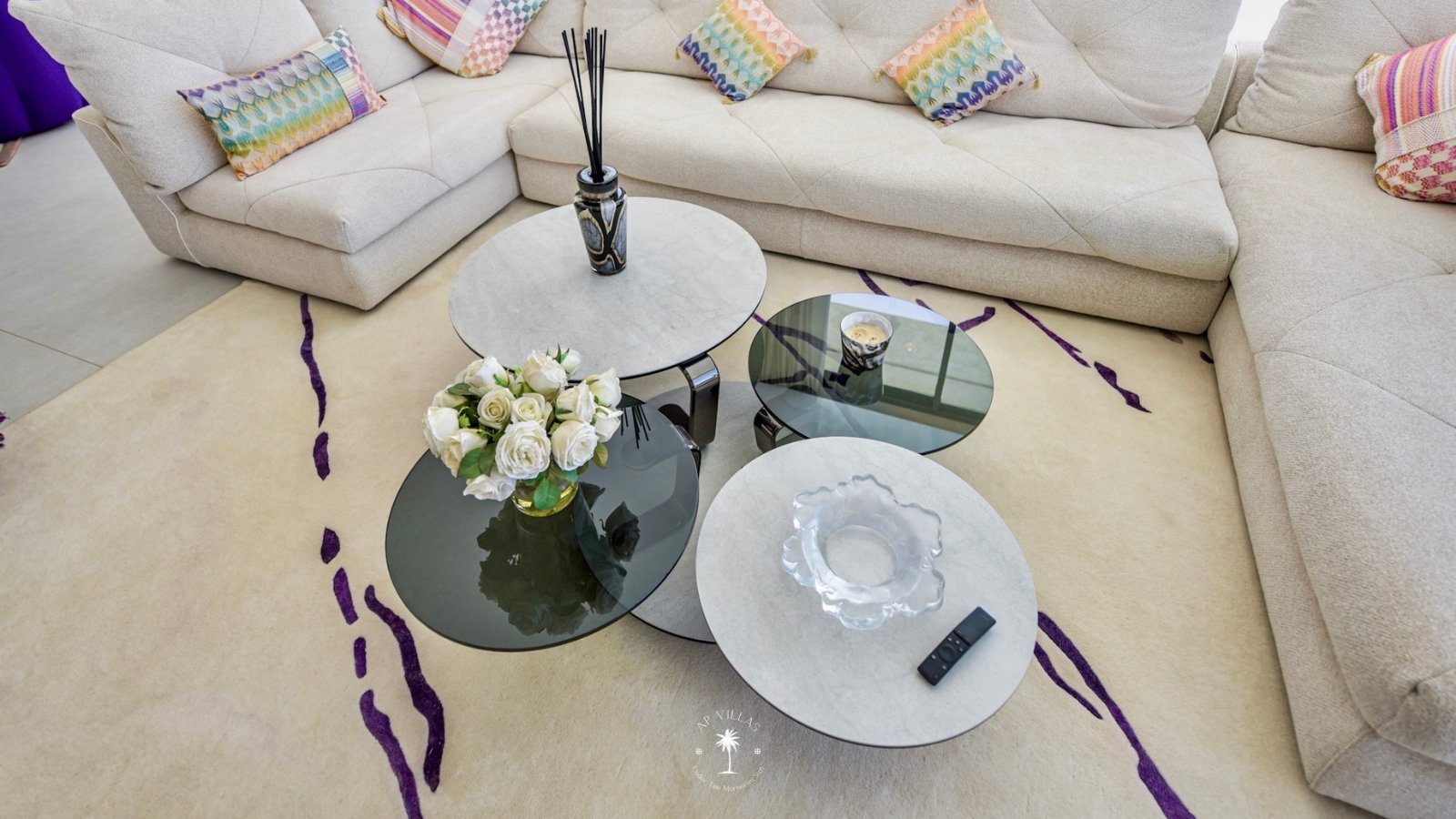 Le salon élégant du premier étage constitue un refuge chaleureux et accueillant, idéal pour se détendre en famille ou entre amis, avec ses canapés confortables et sa décoration raffinée. La salle à manger, qui offre une vue imprenable sur la piscine et le jardin, crée un cadre enchanteur pour savourer des repas tout en admirant le magnifique panorama extérieur.