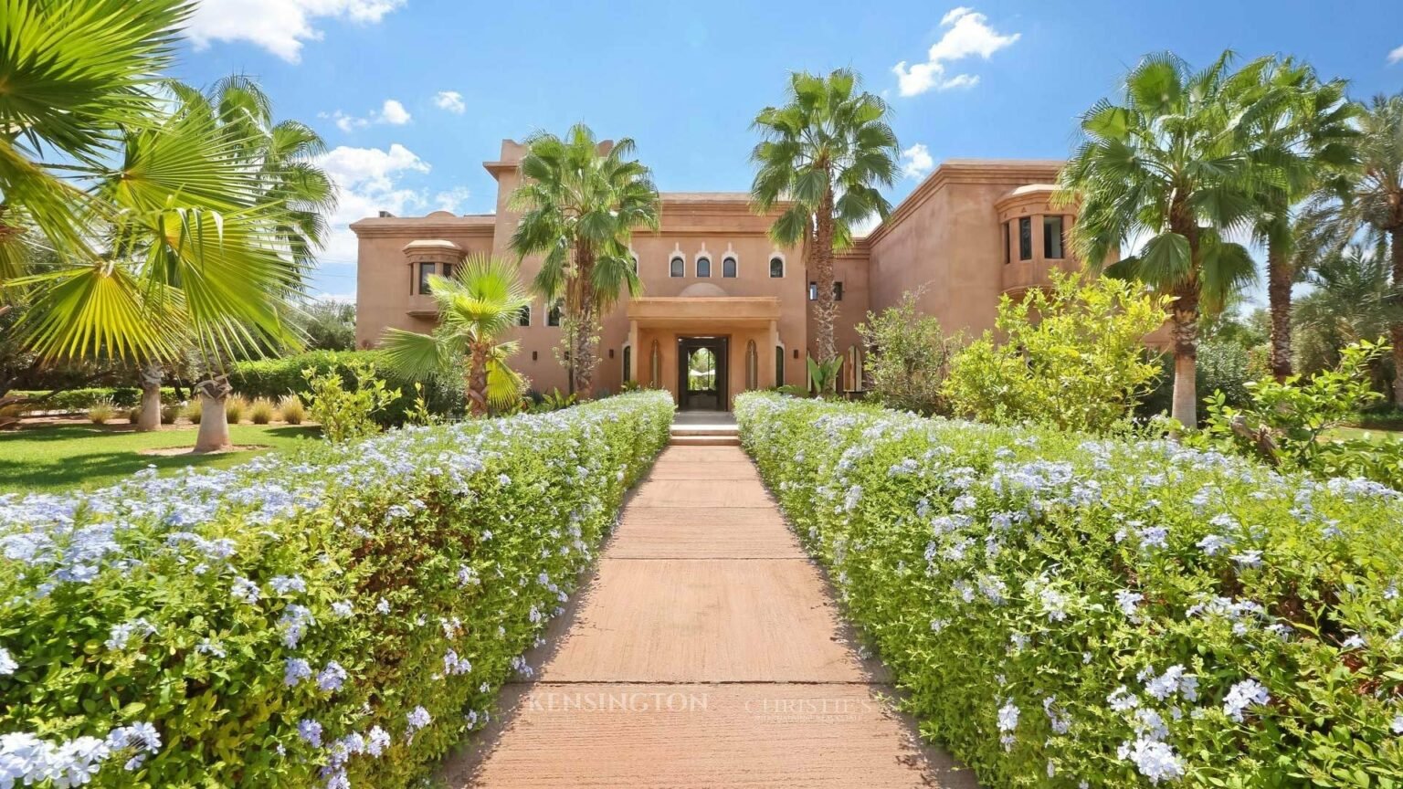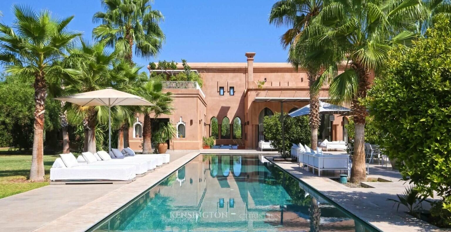 Villa Adib, crafted by architect Raymond Morel, is renowned for its expansive and uniquely shaped pool. Just 5 miles from Marrakech, this architect-designed villa feels seamlessly rooted in its landscape. Surrounded by pools, palm trees, citrus groves, and a small farm, it offers a serene and immersive retreat. Enjoy alfresco dining with produce harvested directly from the vegetable garden, then step through graceful archways into bright interiors featuring a gym, hammam, and soaring ceilings. Golf Amelkis and Ryads Al Maaden Medina & Golf Resort are both within 8 miles.