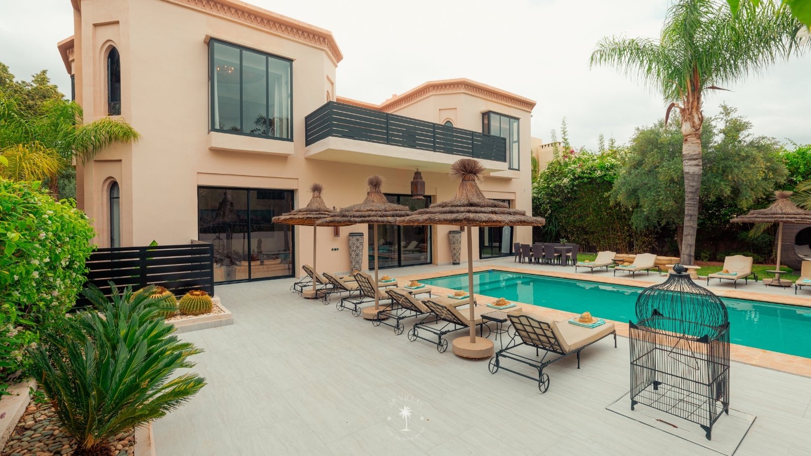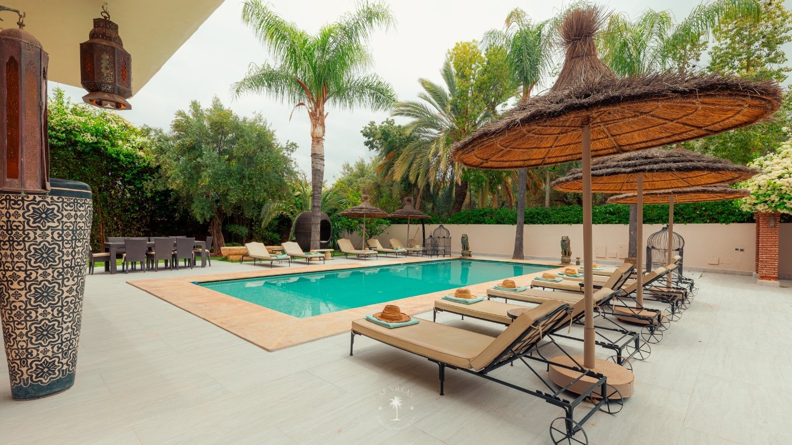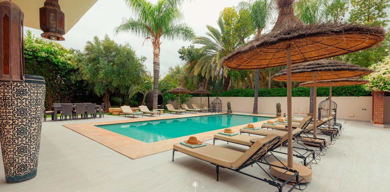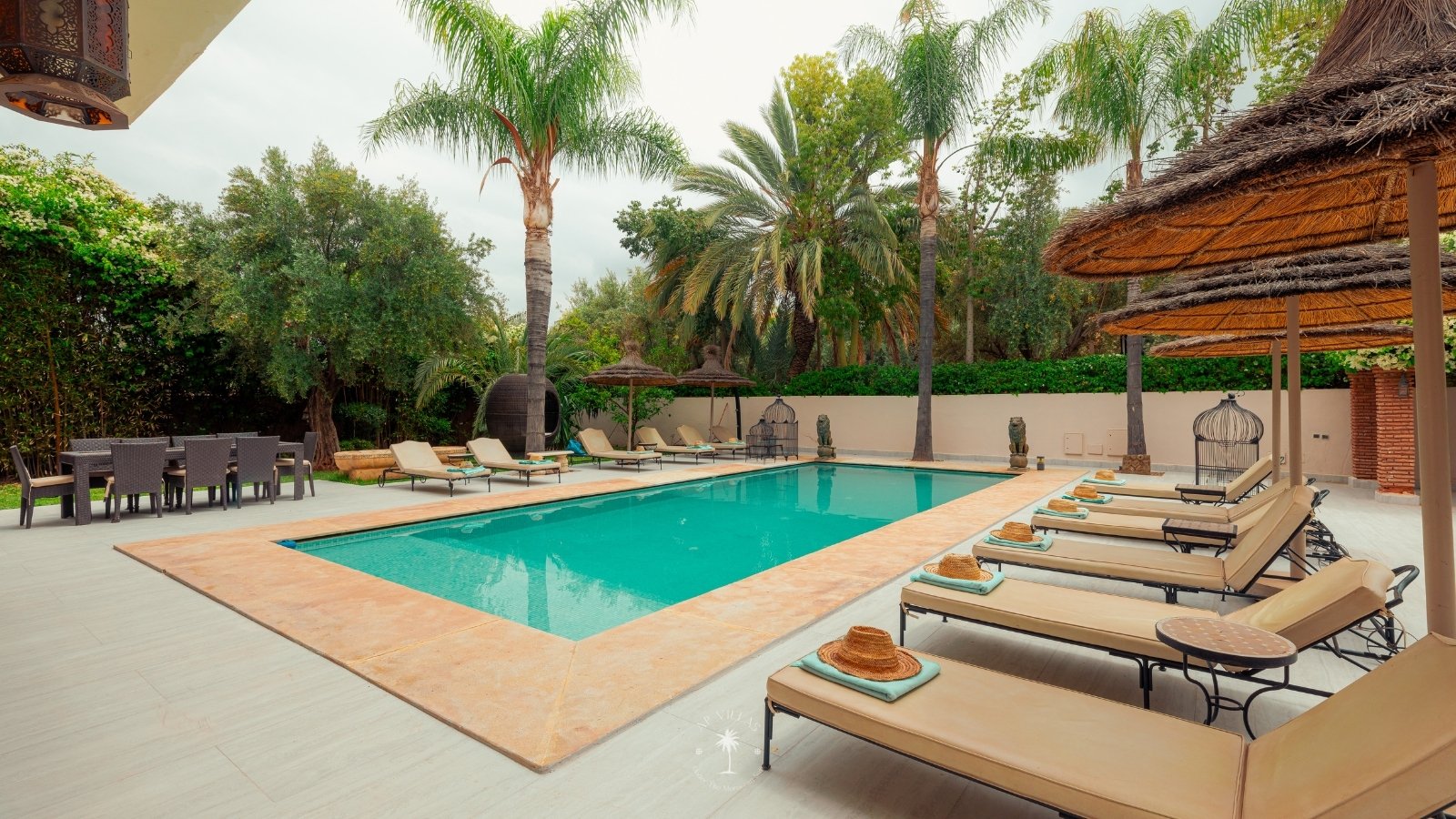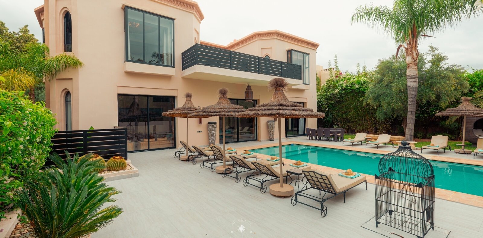 The villa features five luxurious suites plus an additional bedroom. Located just 7 minutes from the city center, exploring the vibrant ochre city is both effortless and convenient.