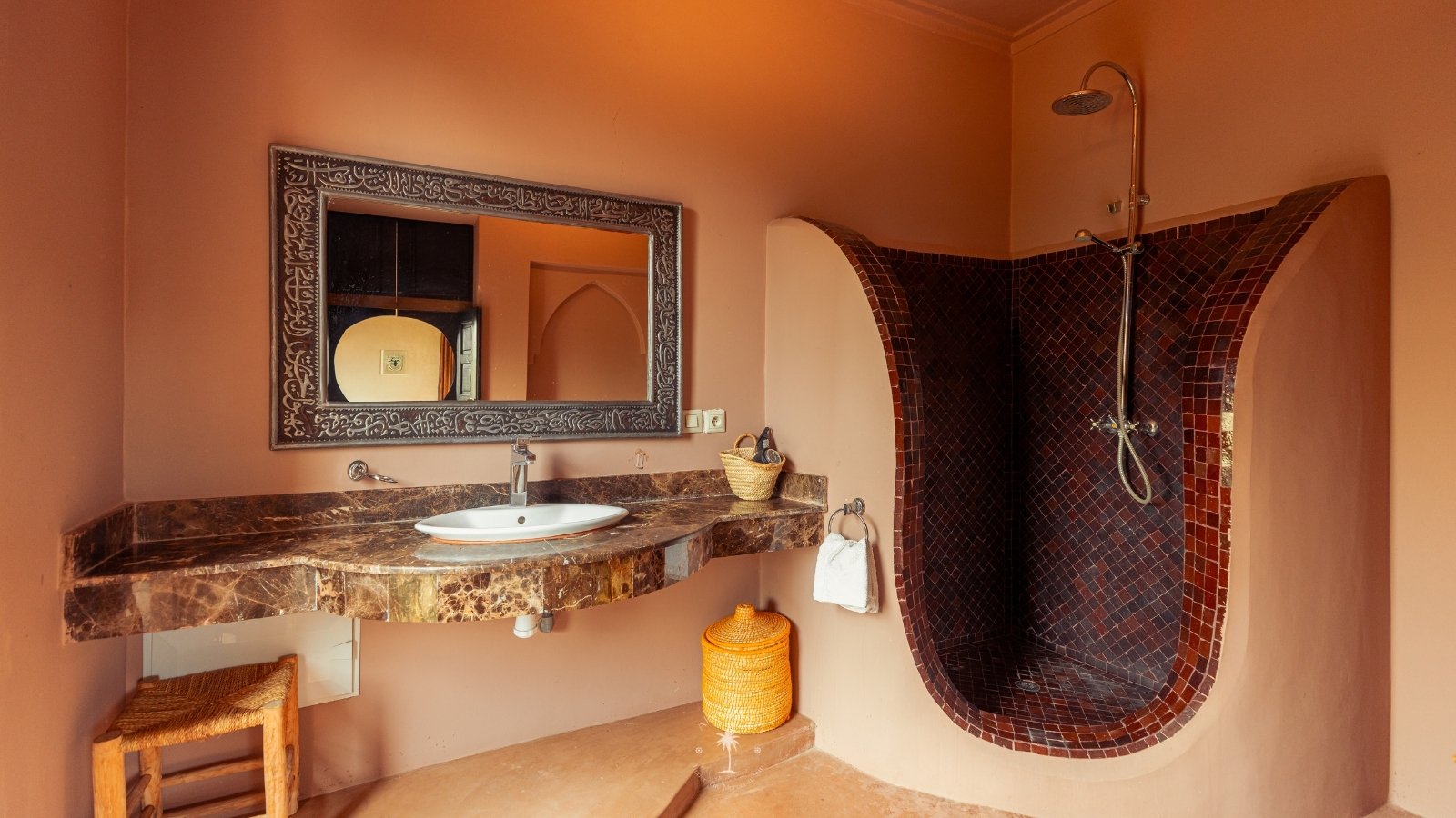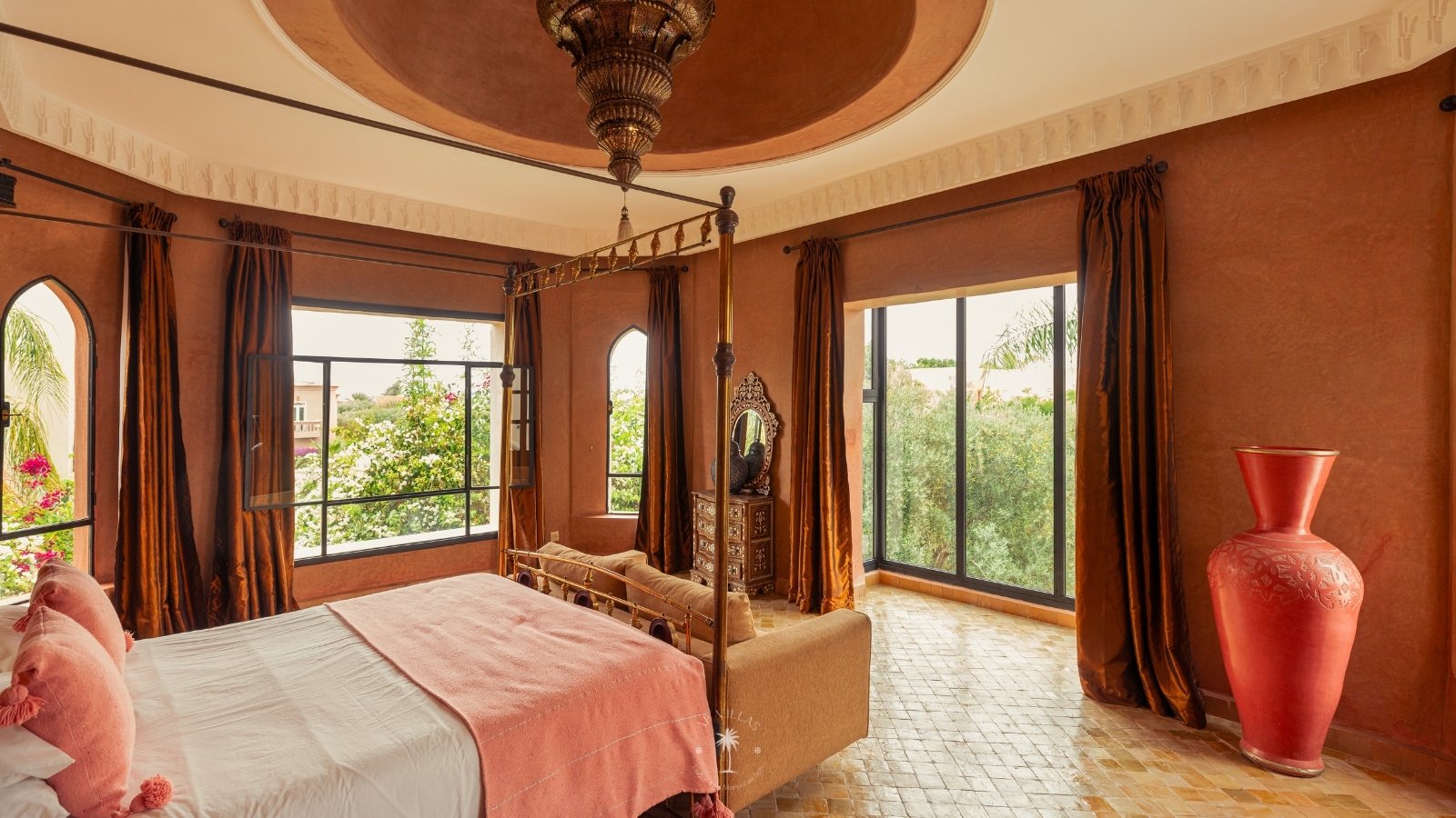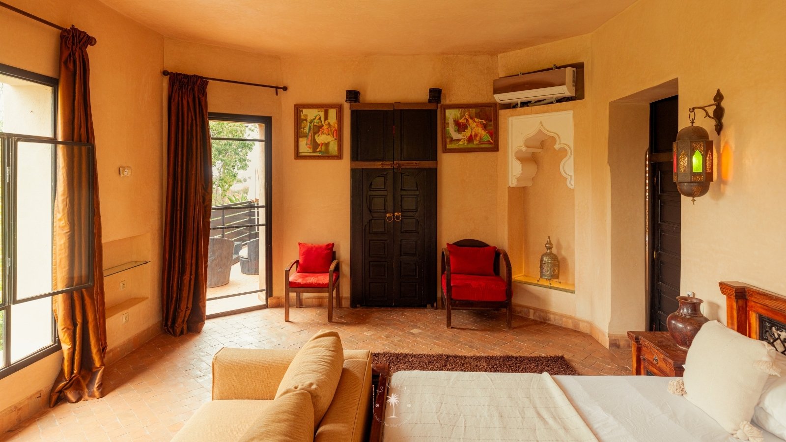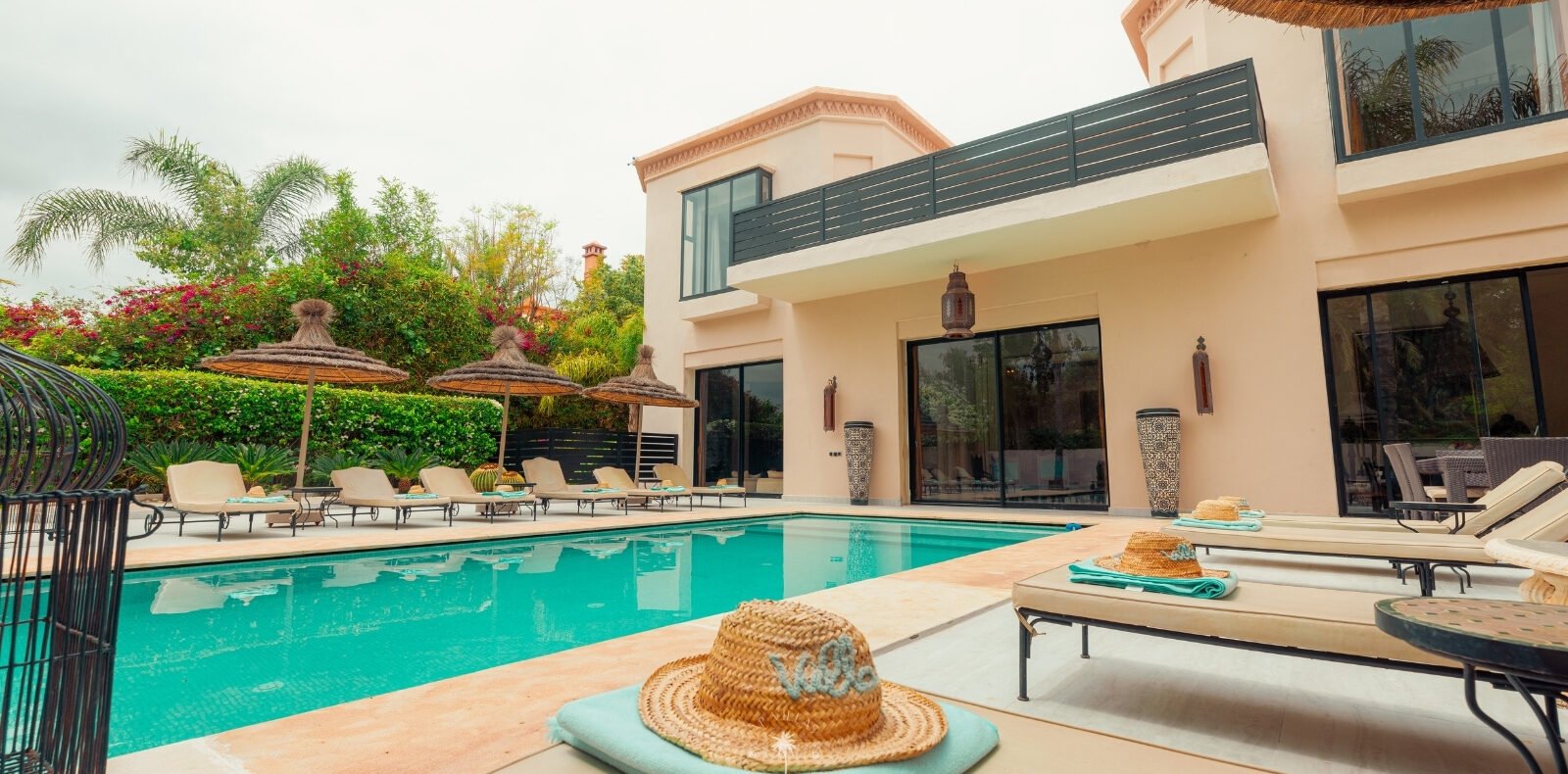 The villa features five luxurious suites plus an additional bedroom. Located just 7 minutes from the city center, exploring the vibrant ochre city is both effortless and convenient.