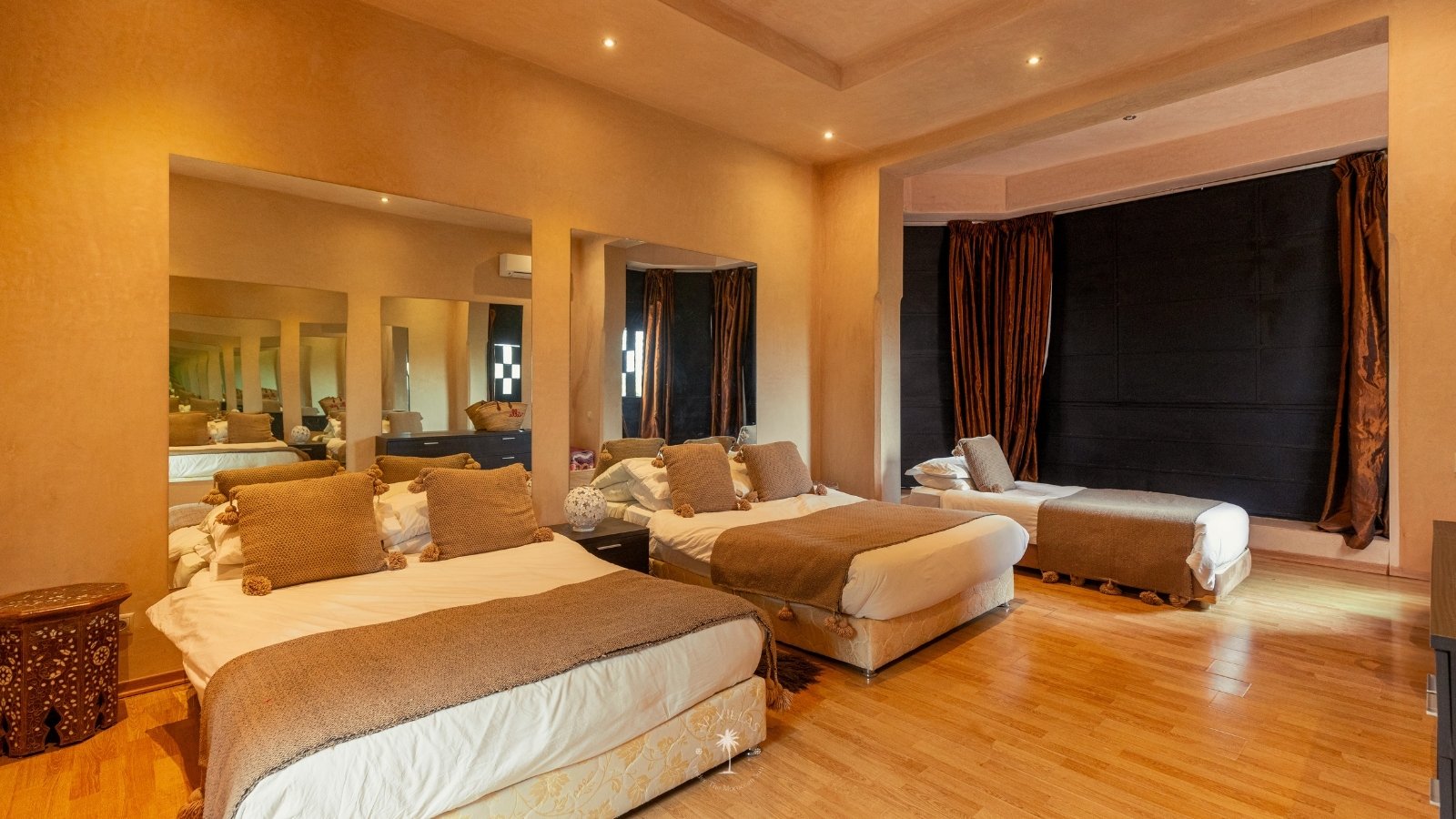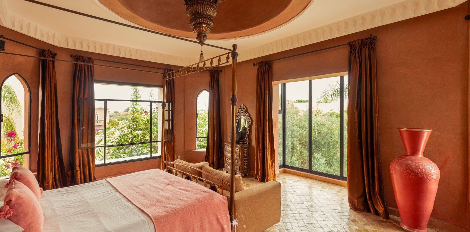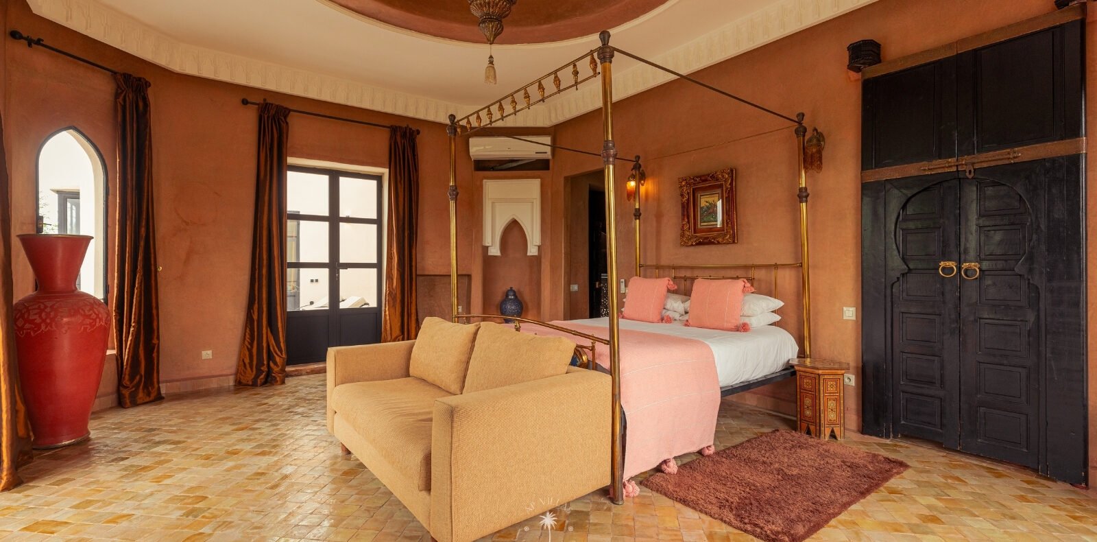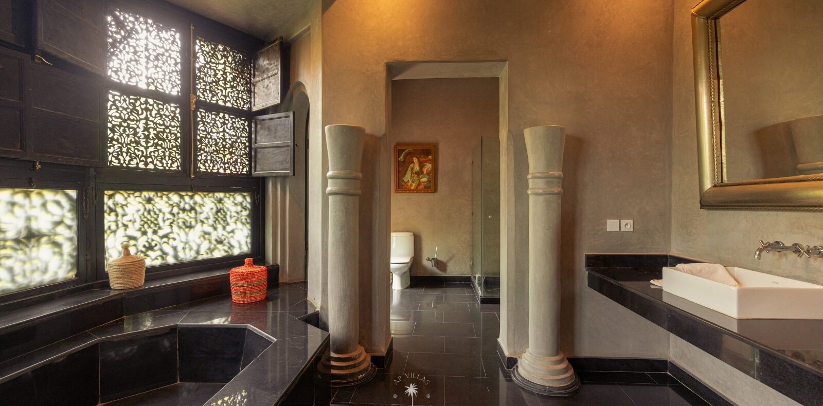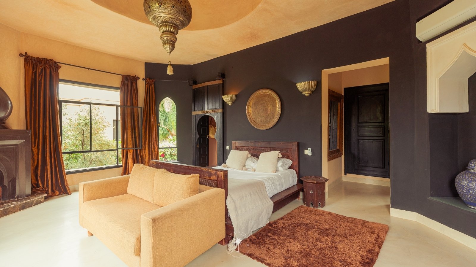 The villa features five luxurious suites plus an additional bedroom. Located just 7 minutes from the city center, exploring the vibrant ochre city is both effortless and convenient.