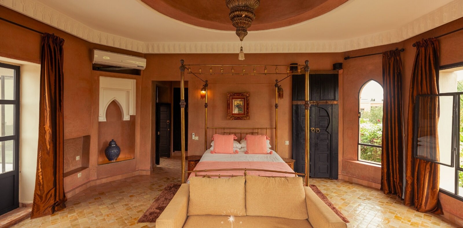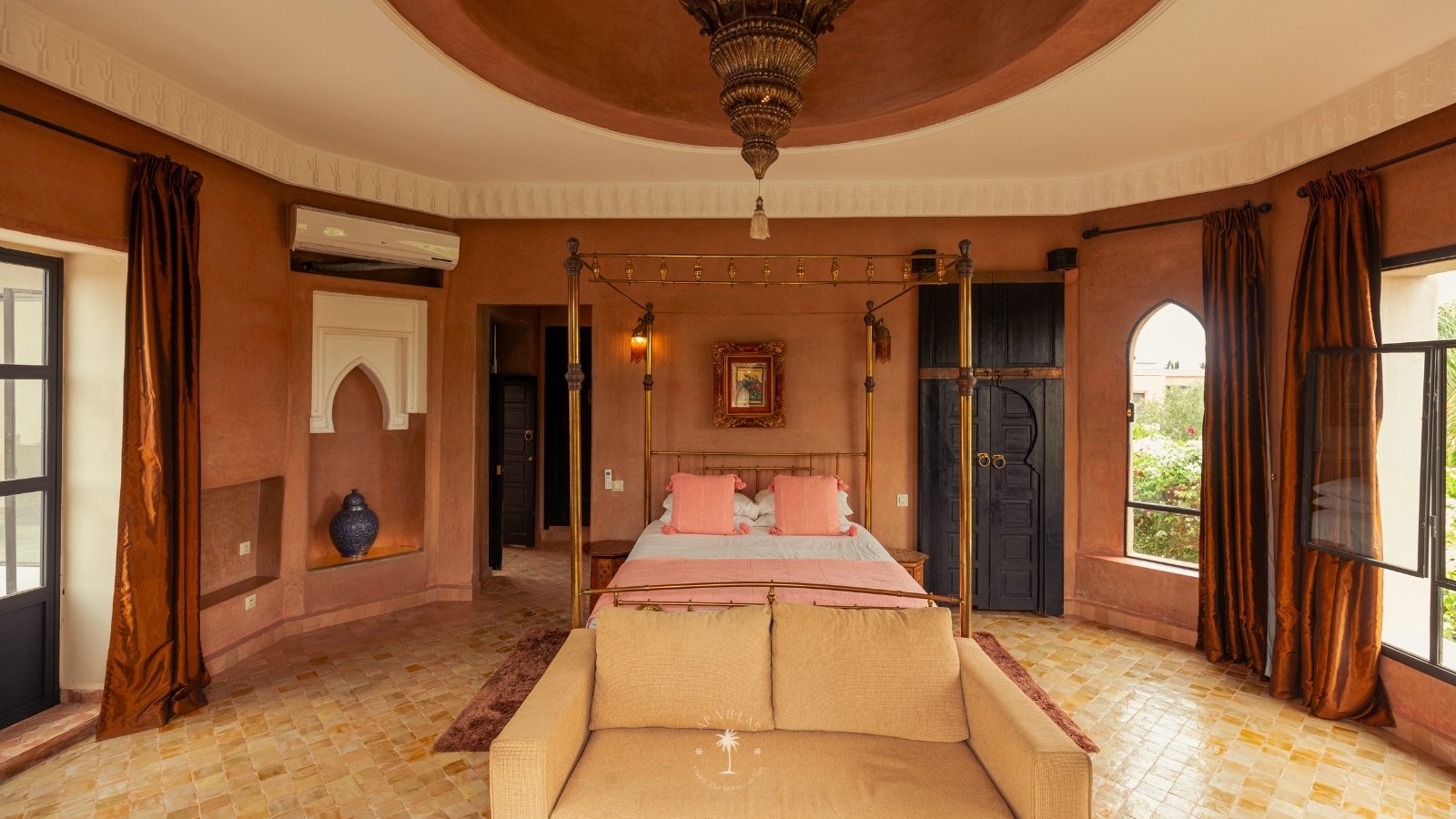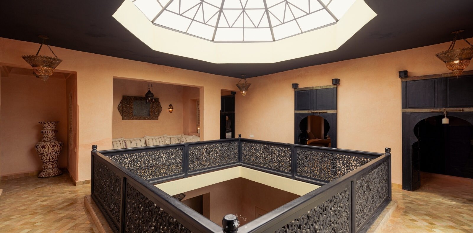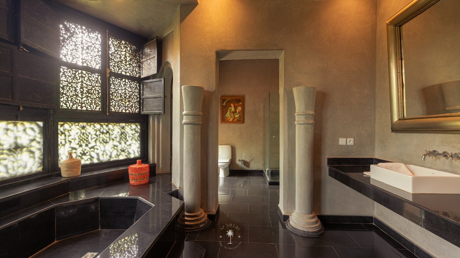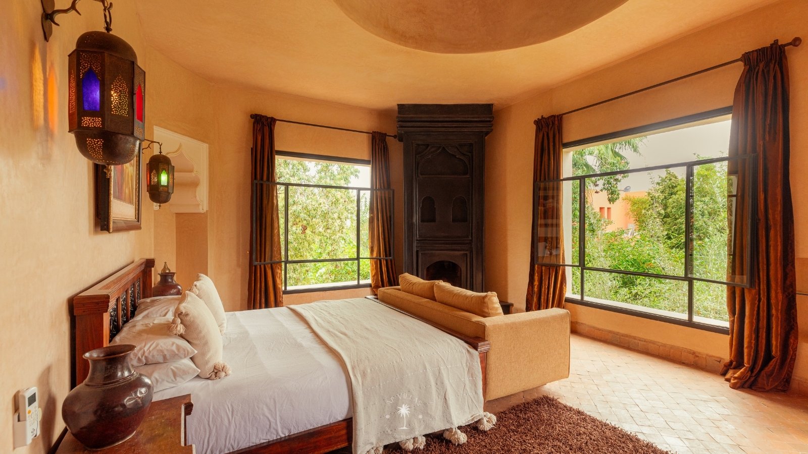 The villa features five luxurious suites plus an additional bedroom. Located just 7 minutes from the city center, exploring the vibrant ochre city is both effortless and convenient.