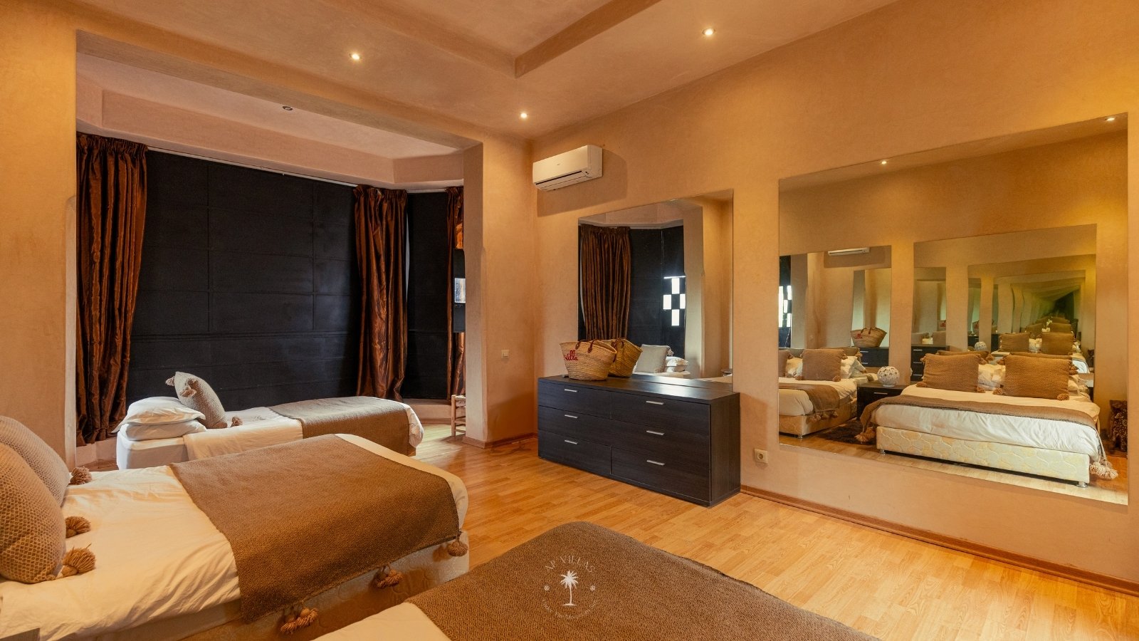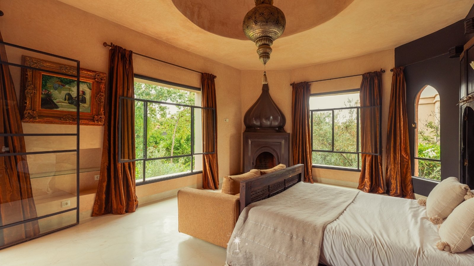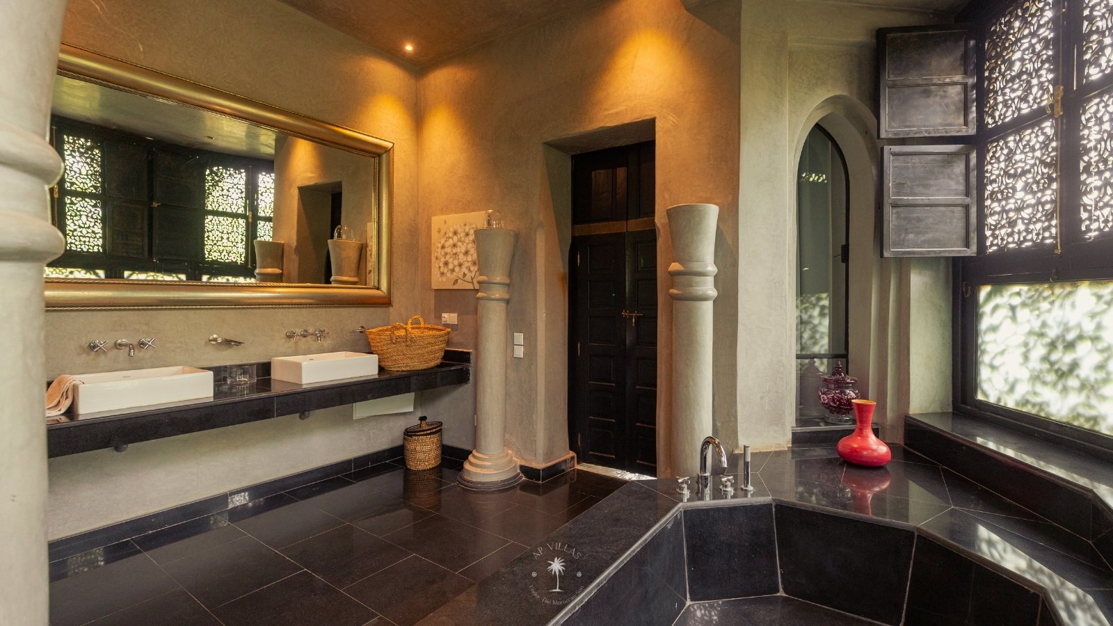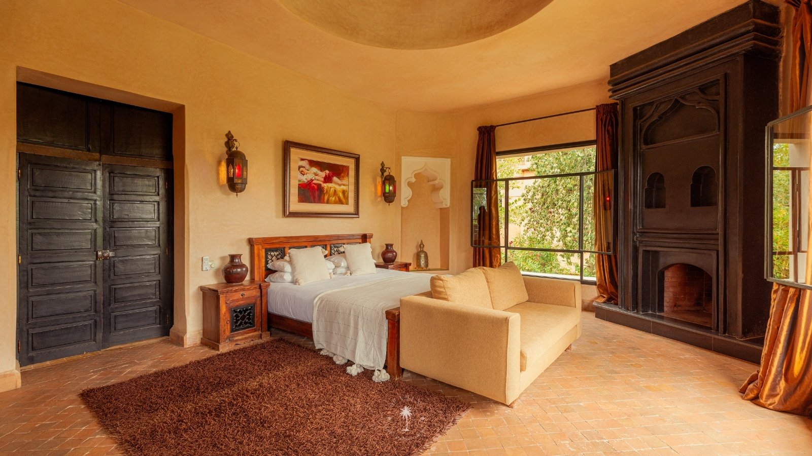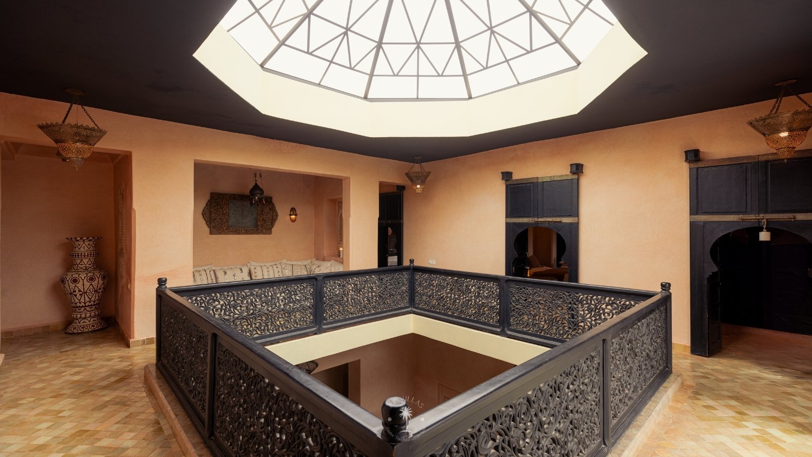 The villa features five luxurious suites plus an additional bedroom. Located just 7 minutes from the city center, exploring the vibrant ochre city is both effortless and convenient.