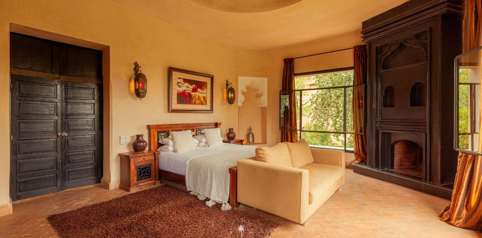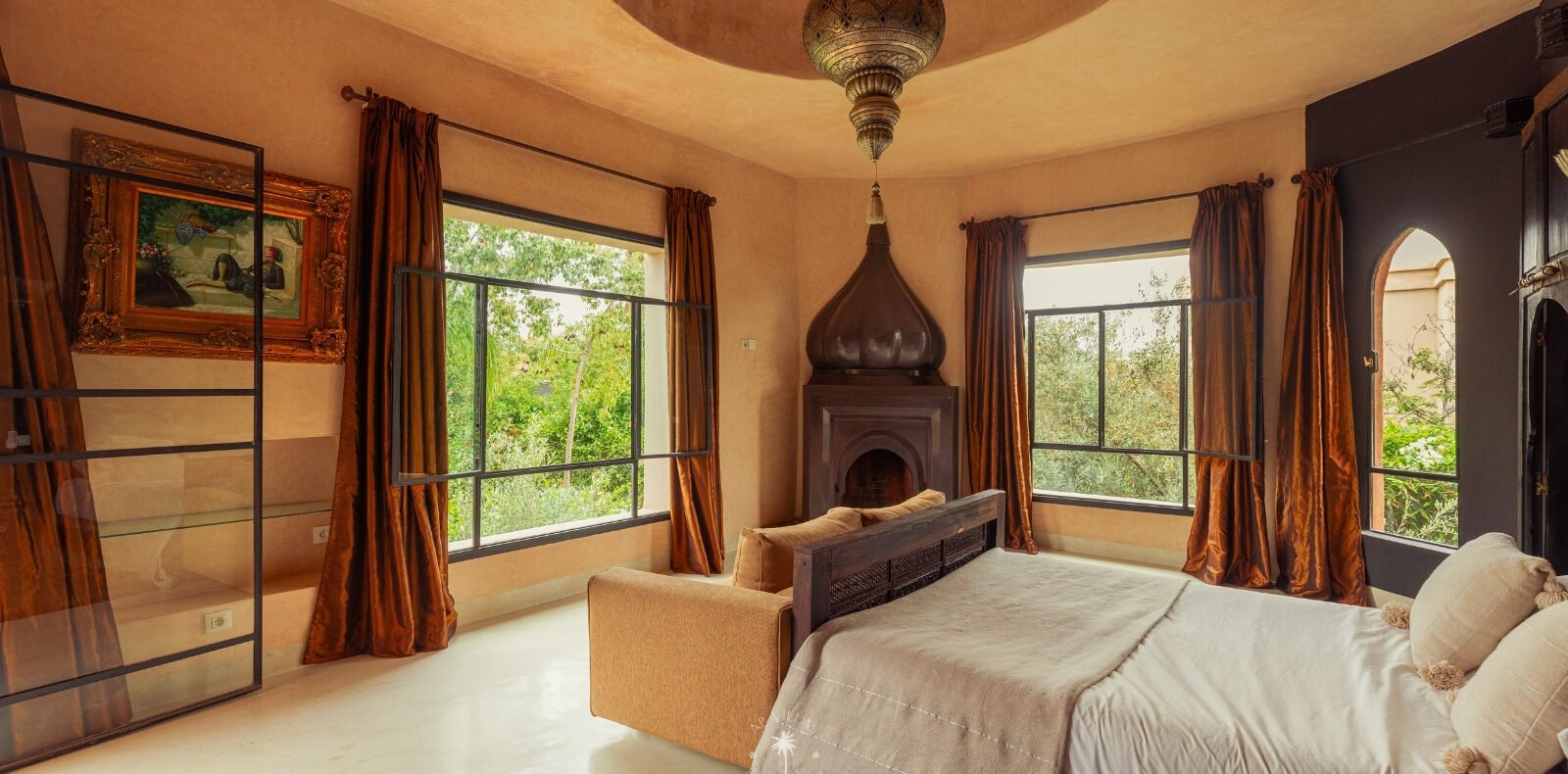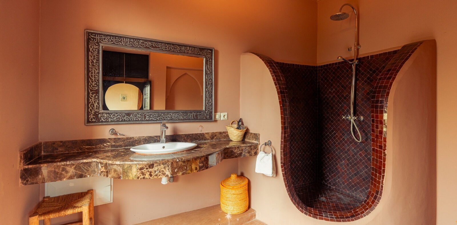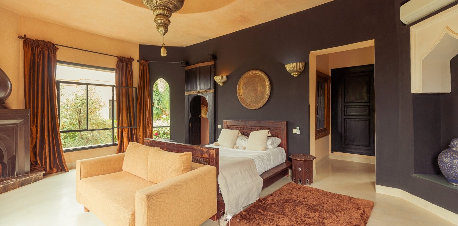 The villa features five luxurious suites plus an additional bedroom. Located just 7 minutes from the city center, exploring the vibrant ochre city is both effortless and convenient.