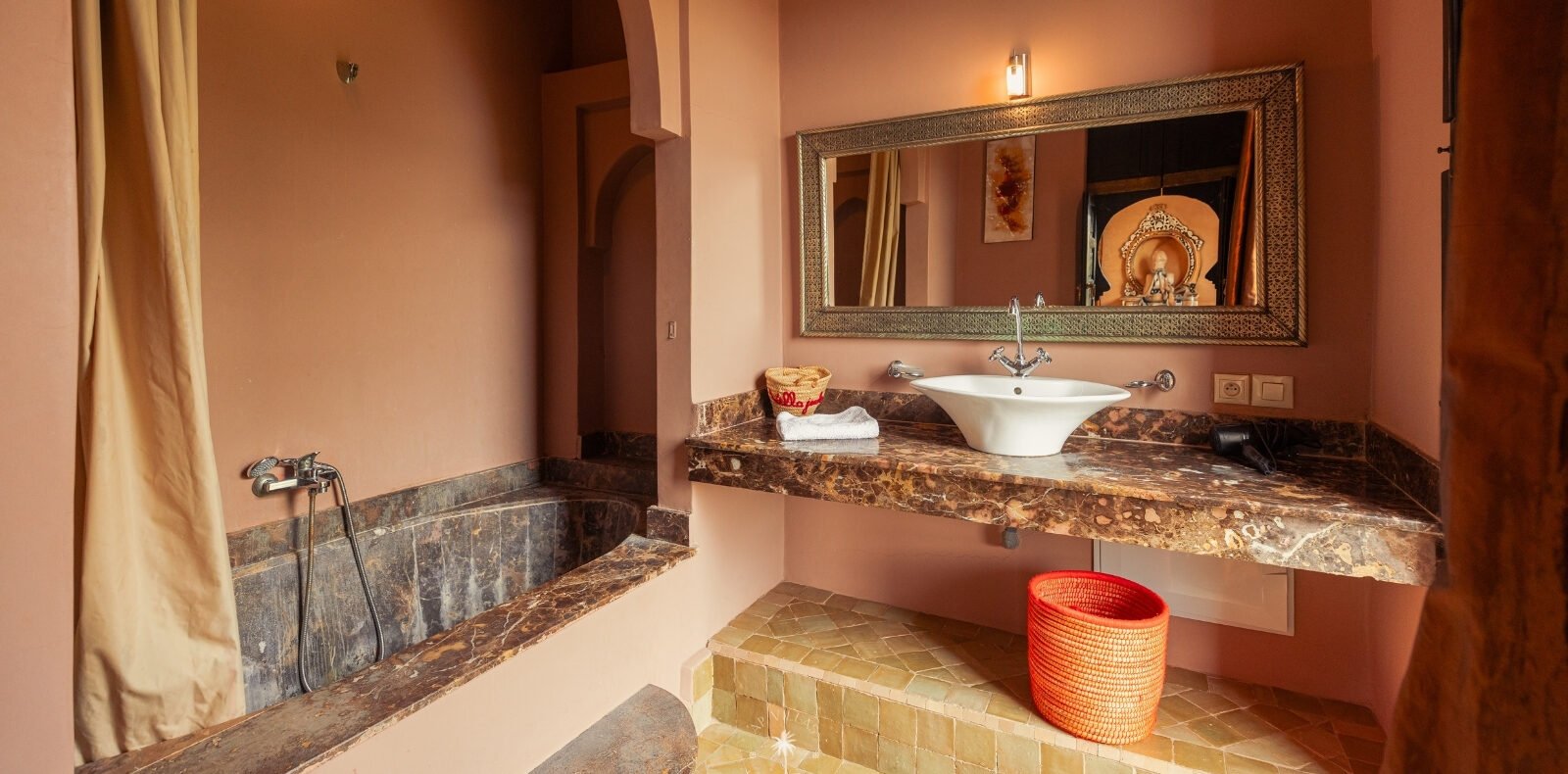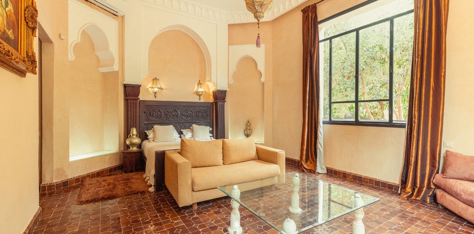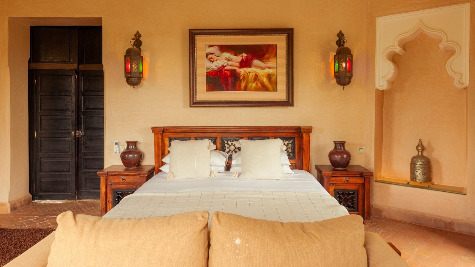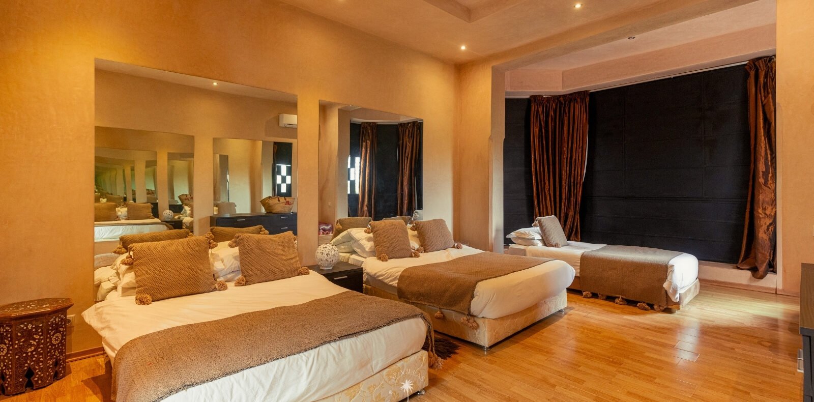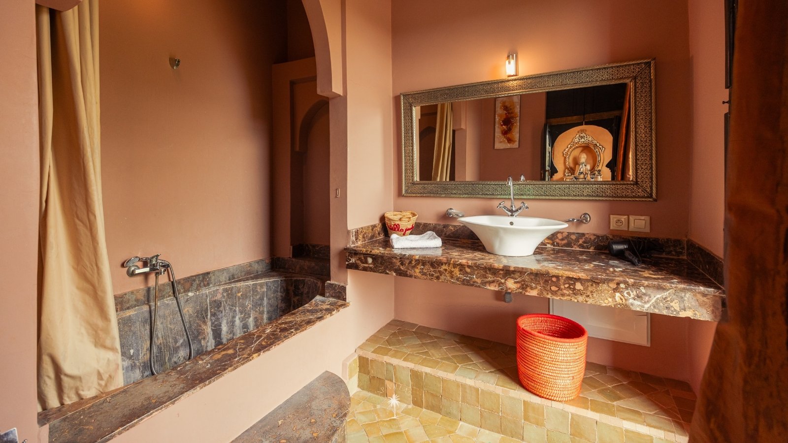 The villa features five luxurious suites plus an additional bedroom. Located just 7 minutes from the city center, exploring the vibrant ochre city is both effortless and convenient.