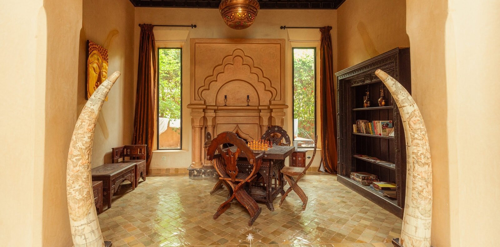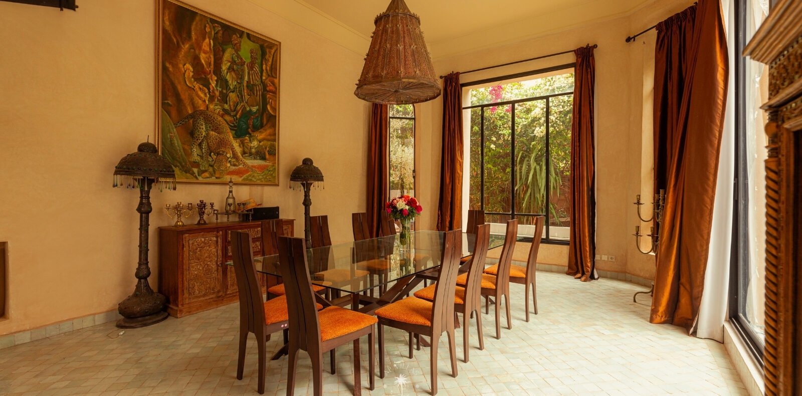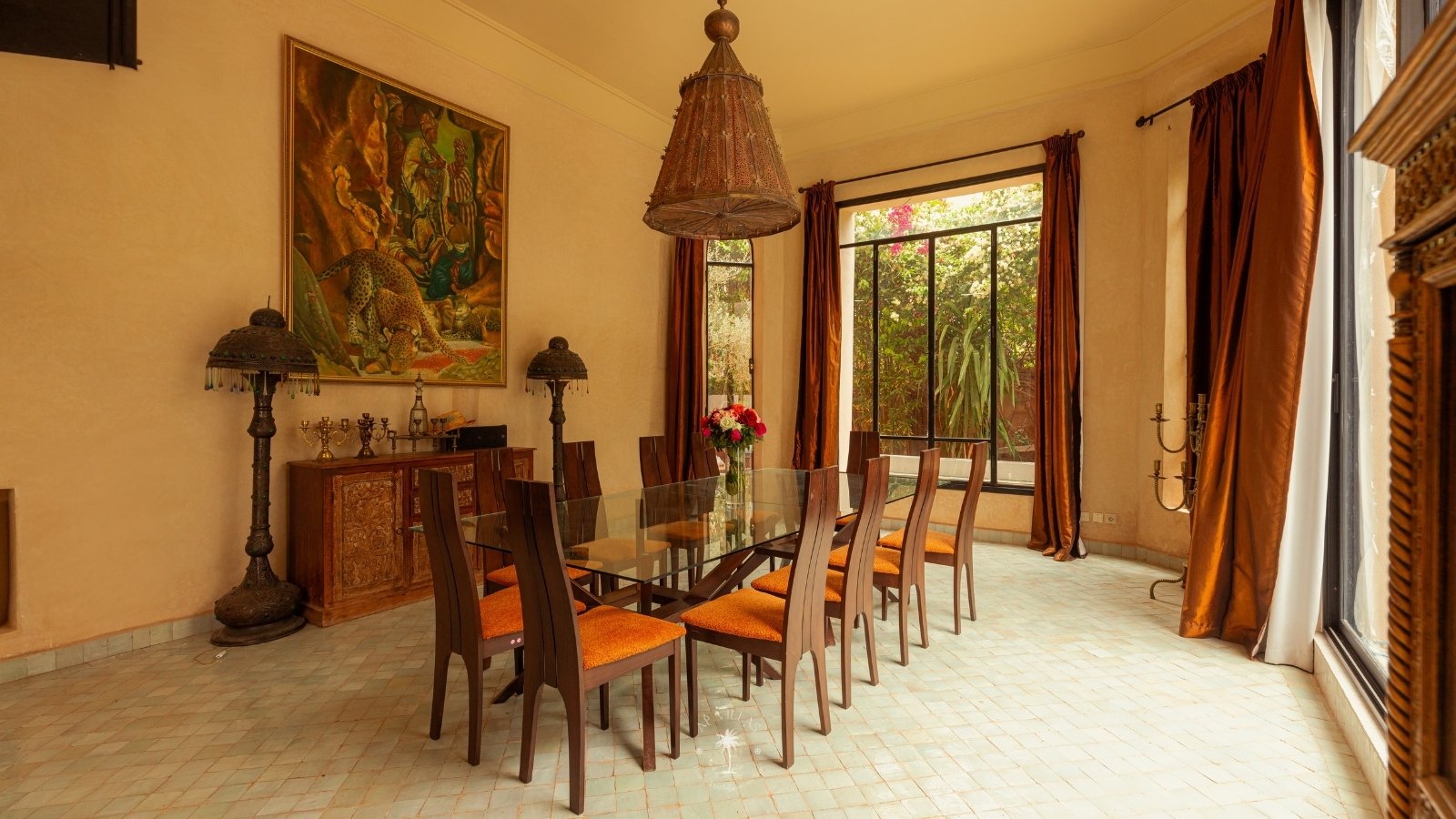 Discover this enchanting Oriental-style villa for rent in Marrakech, nestled in the exclusive Amelkis estate, one of the city’s most prestigious areas. Perfect for family getaways or golf enthusiasts, the property boasts a beautifully landscaped garden, a spacious pool, a sunlit terrace for leisurely al fresco lunches, and a 27-hole golf course.