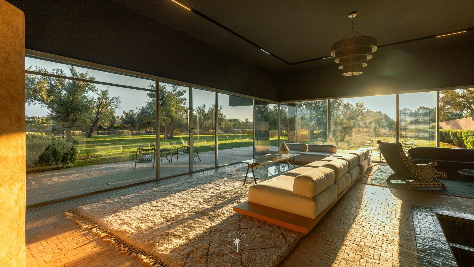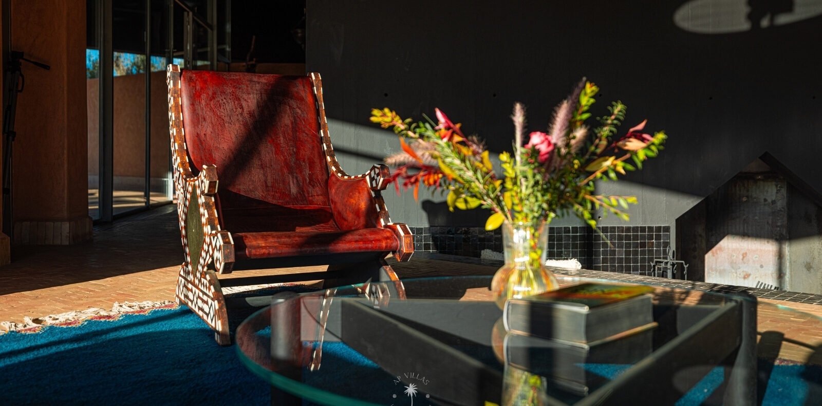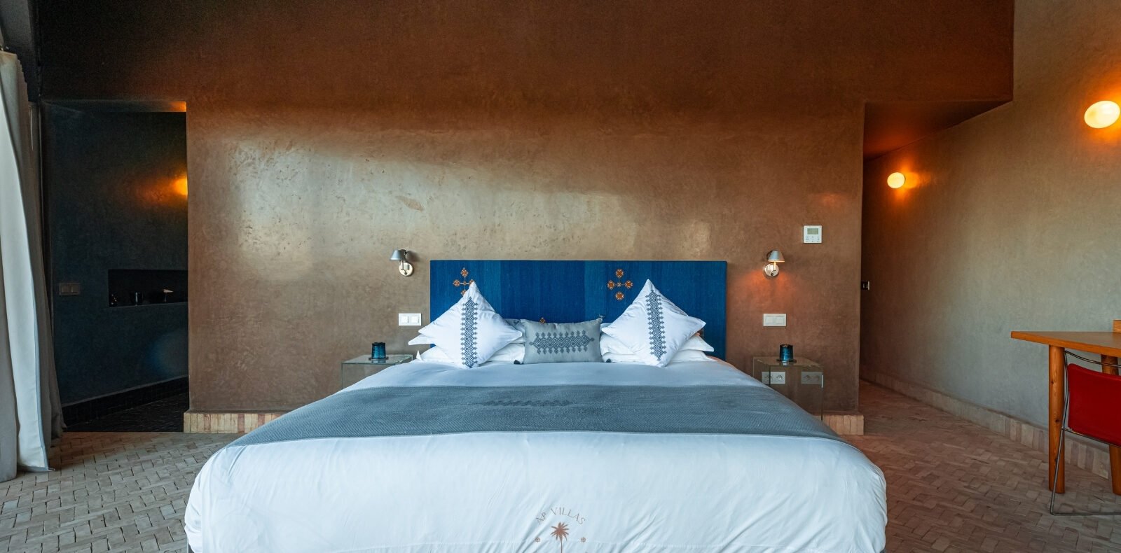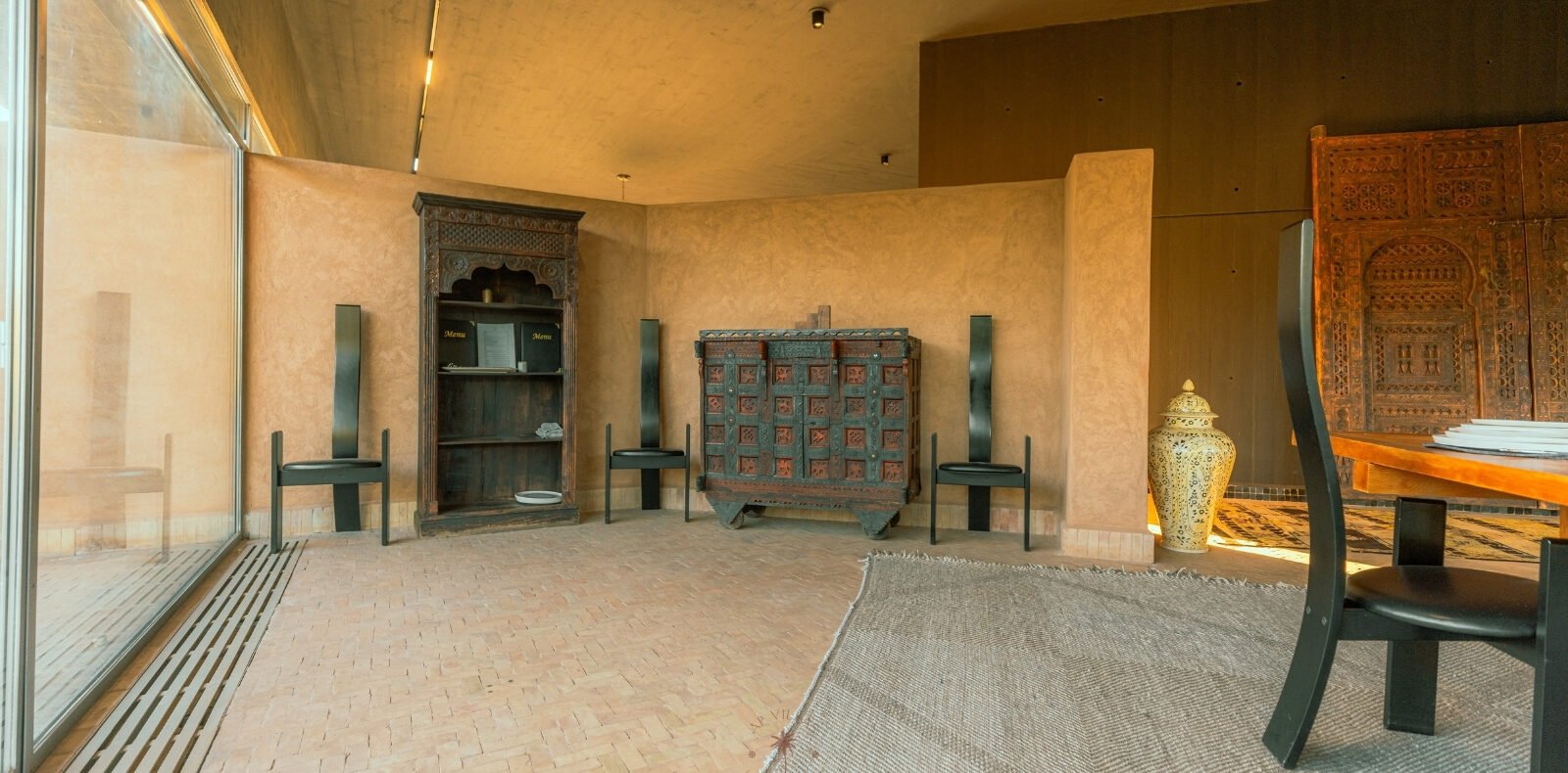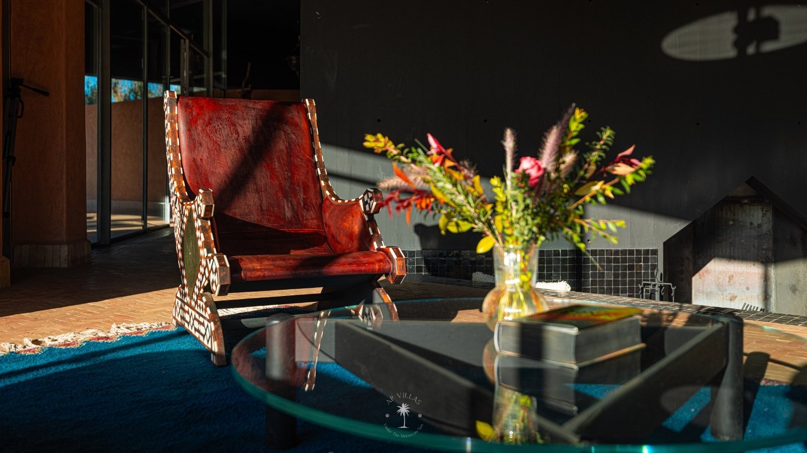 Designed with a north-facing orientation, the two-story Villa Quadin offers a thoughtfully curated sequence of living spaces. The first floor showcases a large, tent-like terrace, perfect for soaking in the stunning sunsets against the Atlas Mountains. It also houses the six airy, sunlit bedrooms, each master suite featuring circular bathtubs and en-suite bathrooms with walk-in showers. Each bedroom includes a dressing room and expansive terraces overlooking the four gardens, the majestic Atlas peaks, and the large swimming pool.