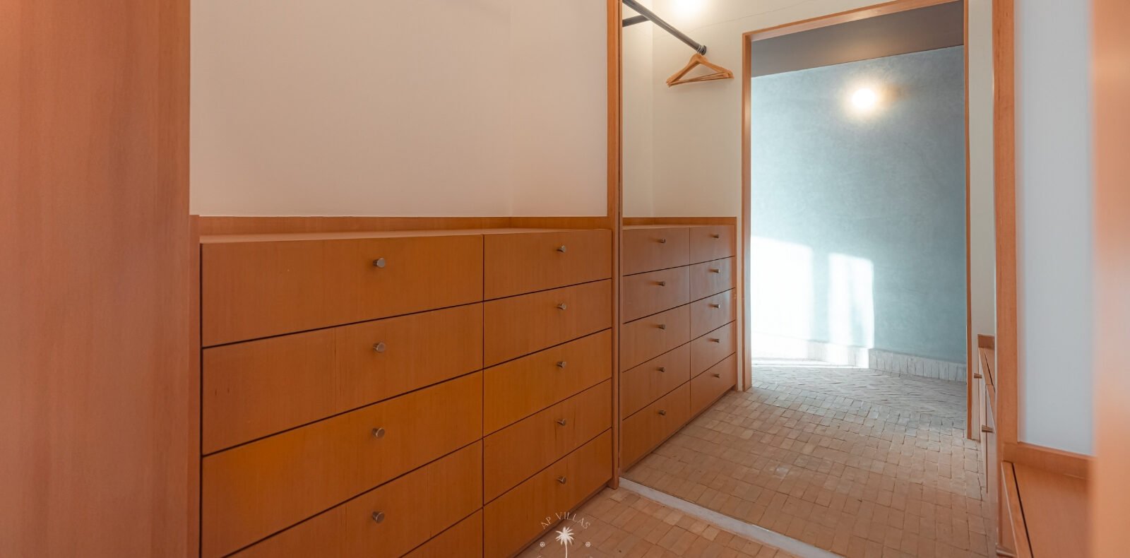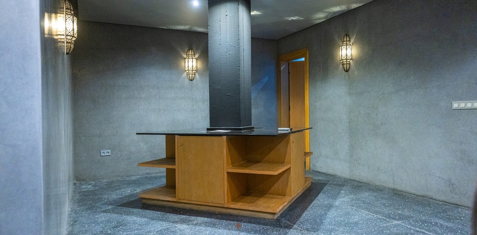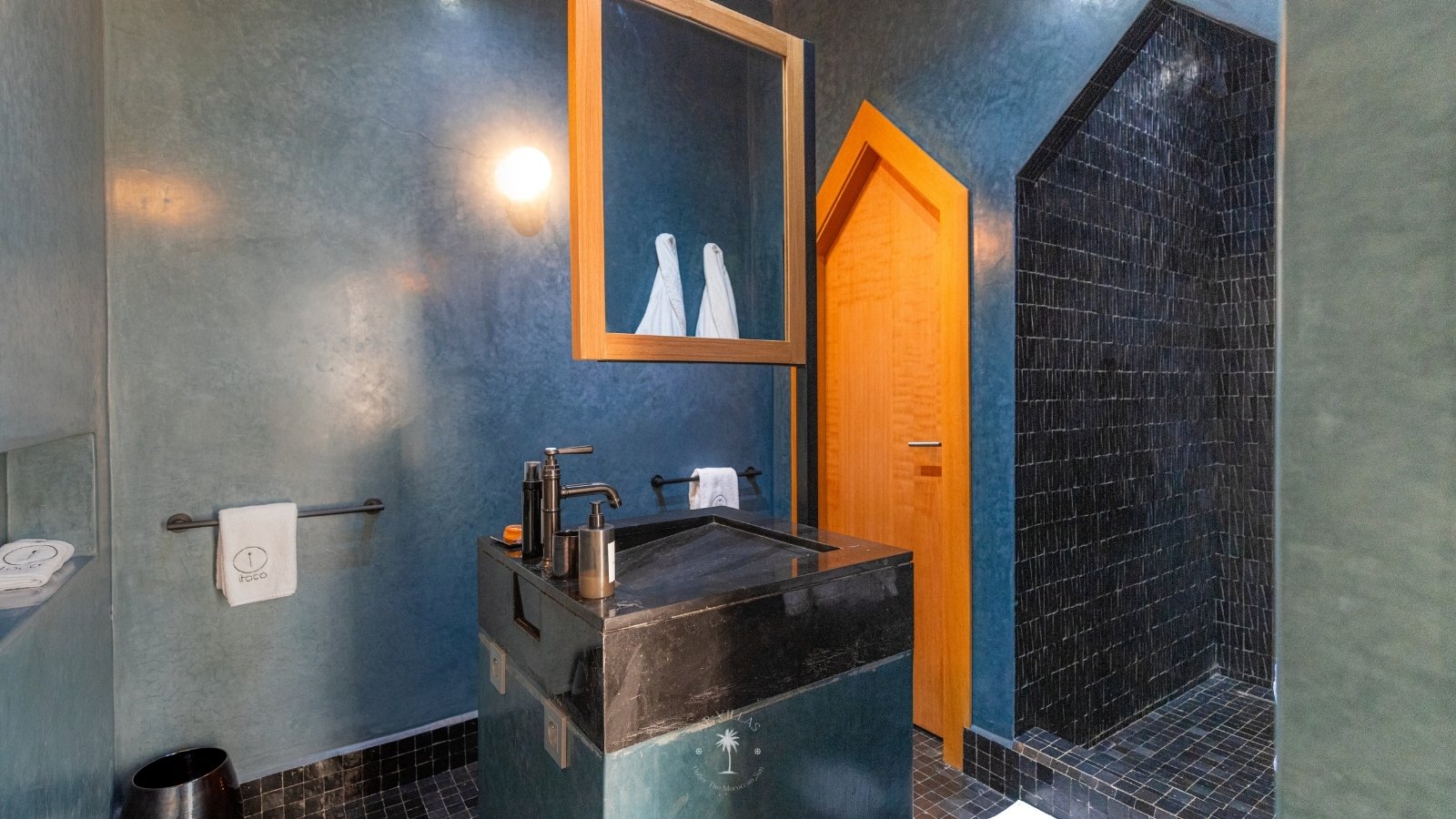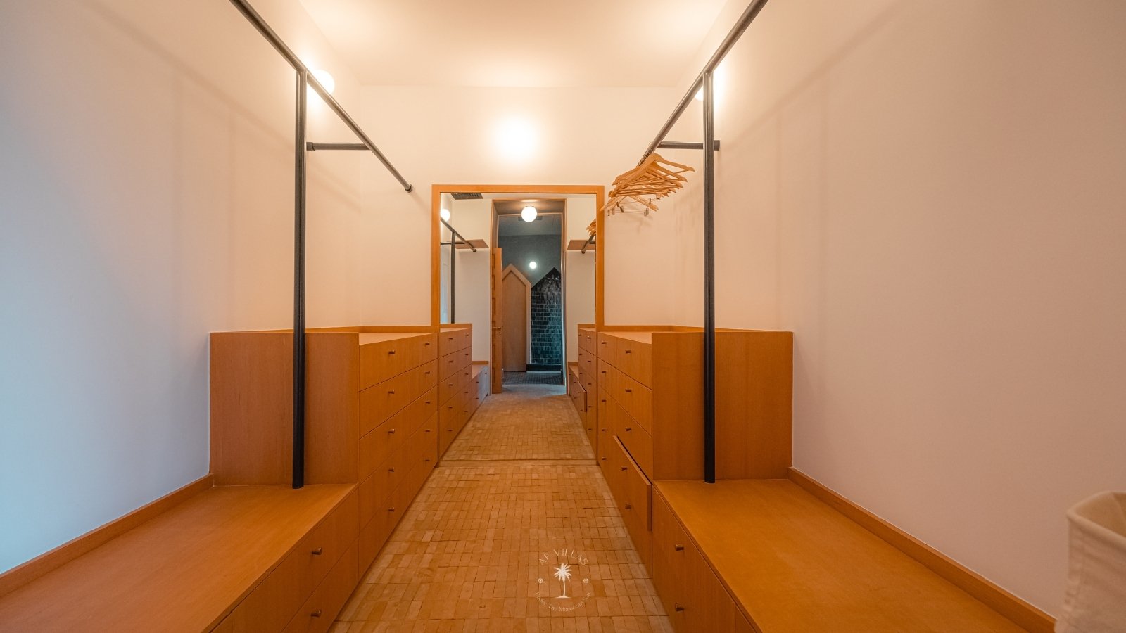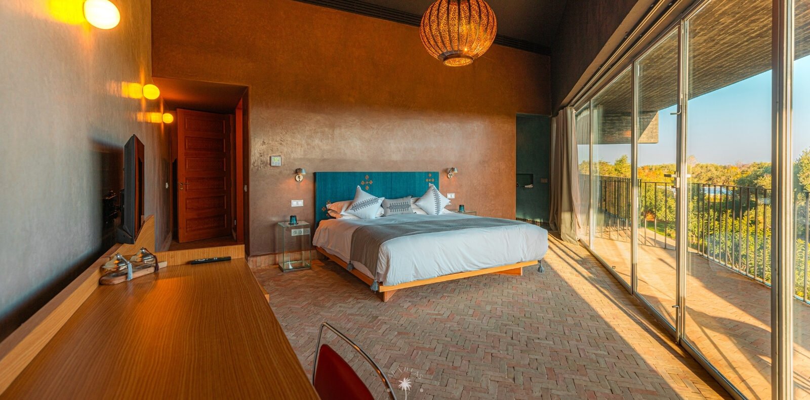 Designed with a north-facing orientation, the two-story Villa Quadin offers a thoughtfully curated sequence of living spaces. The first floor showcases a large, tent-like terrace, perfect for soaking in the stunning sunsets against the Atlas Mountains. It also houses the six airy, sunlit bedrooms, each master suite featuring circular bathtubs and en-suite bathrooms with walk-in showers. Each bedroom includes a dressing room and expansive terraces overlooking the four gardens, the majestic Atlas peaks, and the large swimming pool.