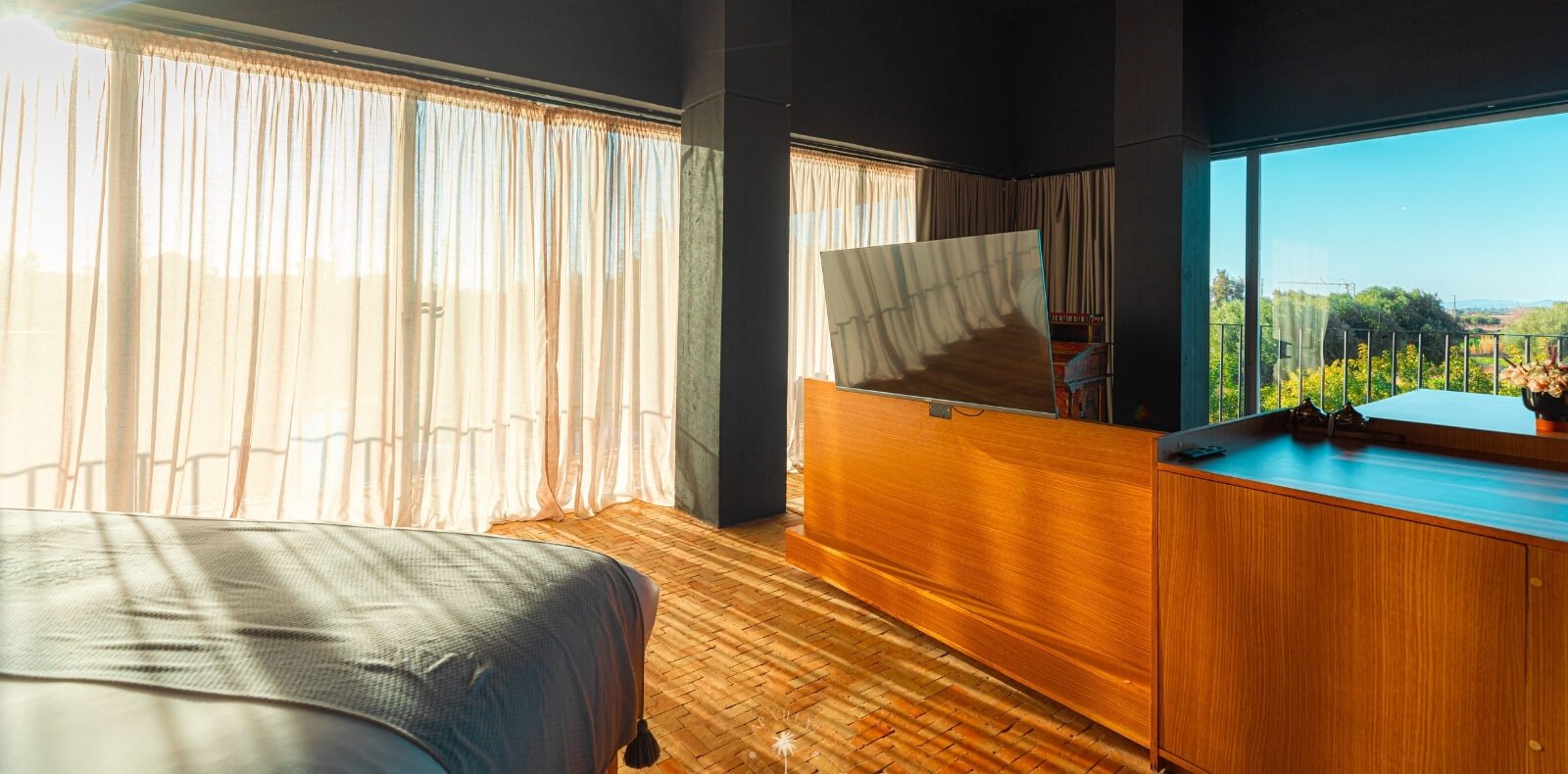 Tucked away in a captivating natural landscape, Villa Quadin is a luxurious residence boasting an eclectic design that harmoniously blends comfort and elegance. The villa is surrounded by four flourishing gardens, each representing a different aspect of nature: the forest symbolizes untamed wilderness, the olive grove embodies the essence of nature, the orchard signifies cultivated, controlled landscapes, and the Andalusian garden presents a geometrically arranged aesthetic. This distinctive residence thrives in the interplay of these four environments.
