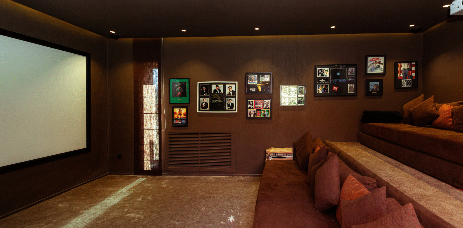 The expansive, inviting living room is perfect for unwinding with family or friends, while the vibrant dining room sets the stage for memorable gatherings. A well-appointed library with a pool table caters to book and game enthusiasts, and a private cinema room lets you enjoy your favorite movies and series in comfort.