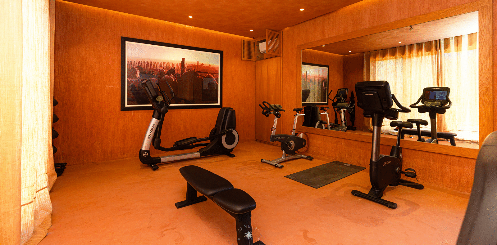 - A pool house with a gym, hammam, fireplace, and a large screen to enjoy sports and wellness facilities.